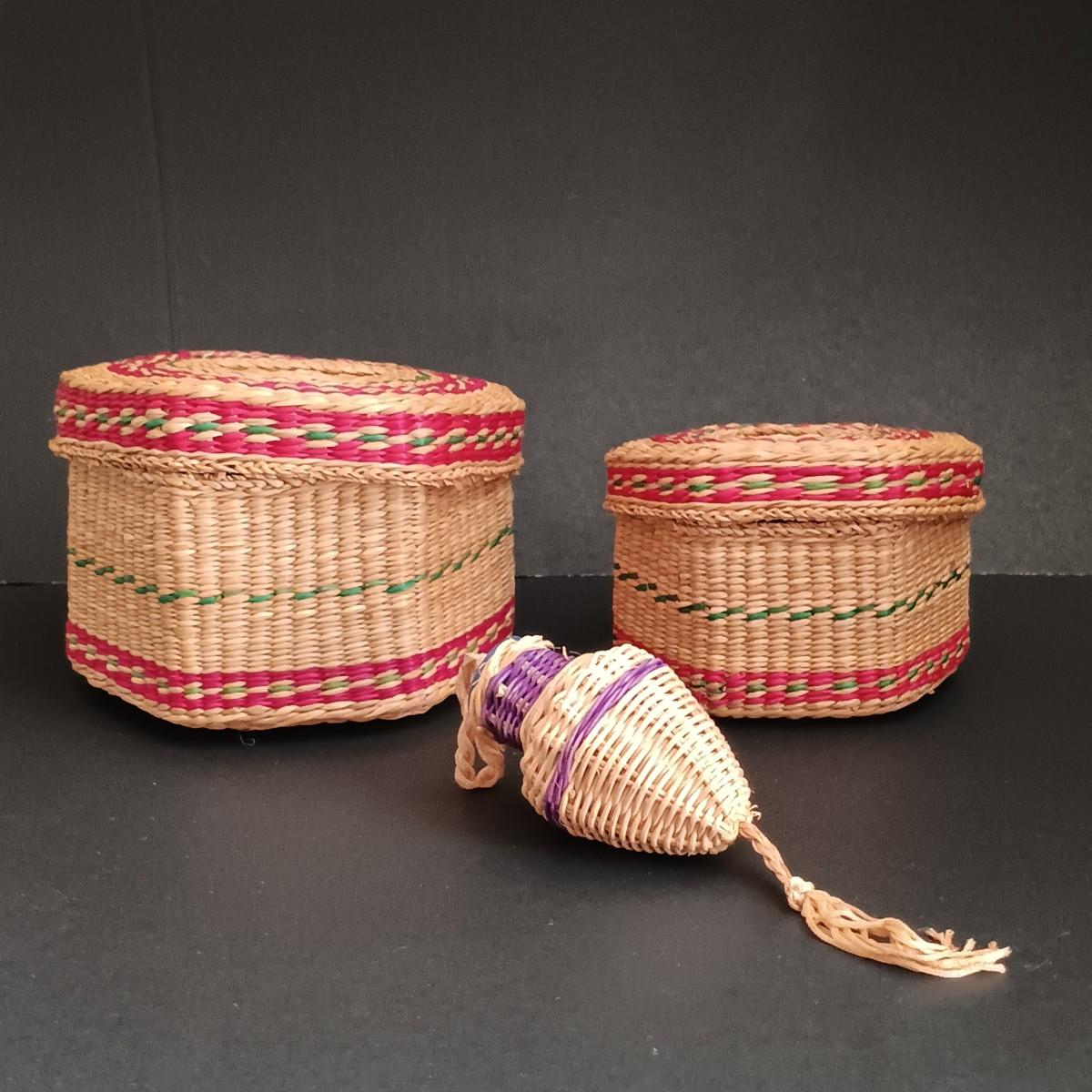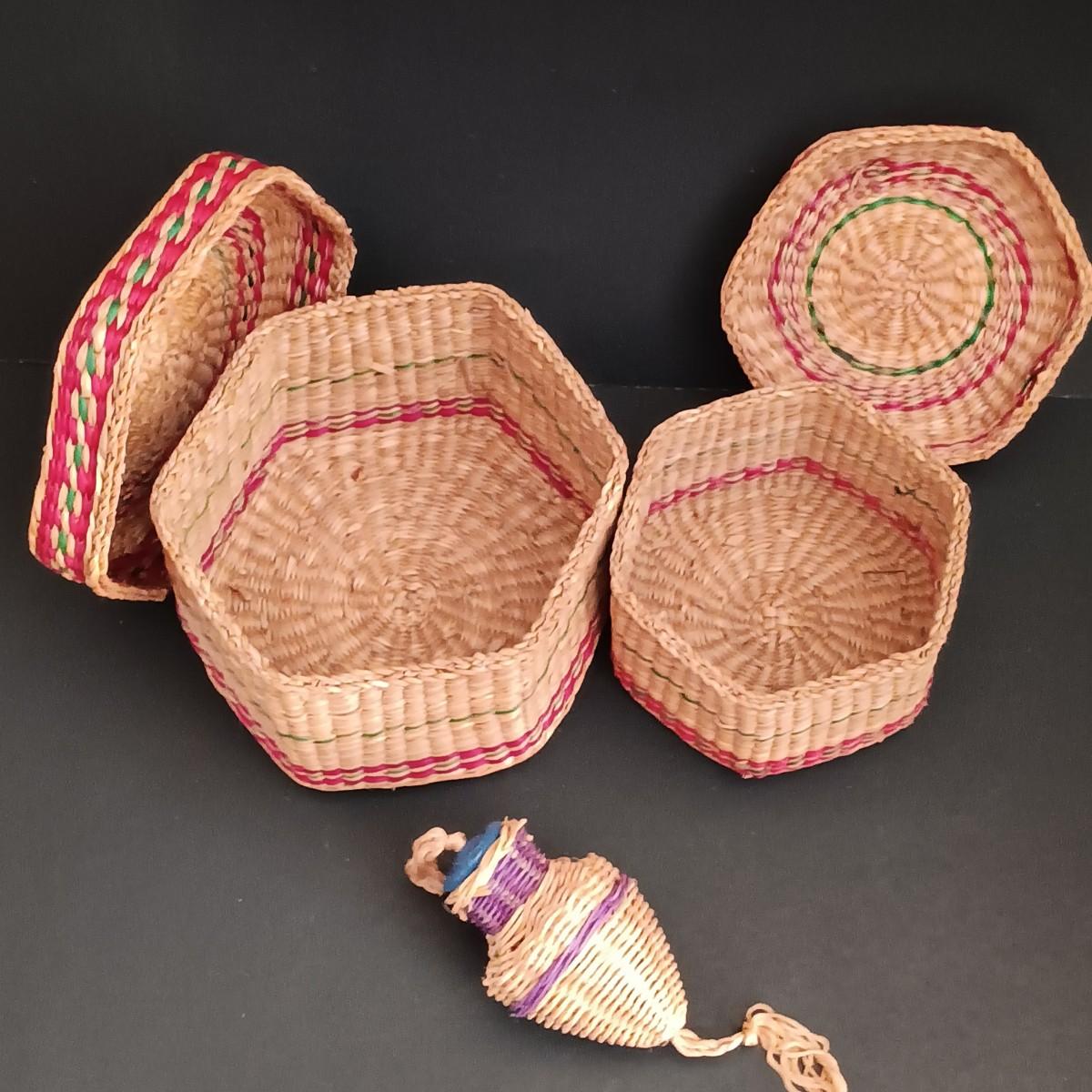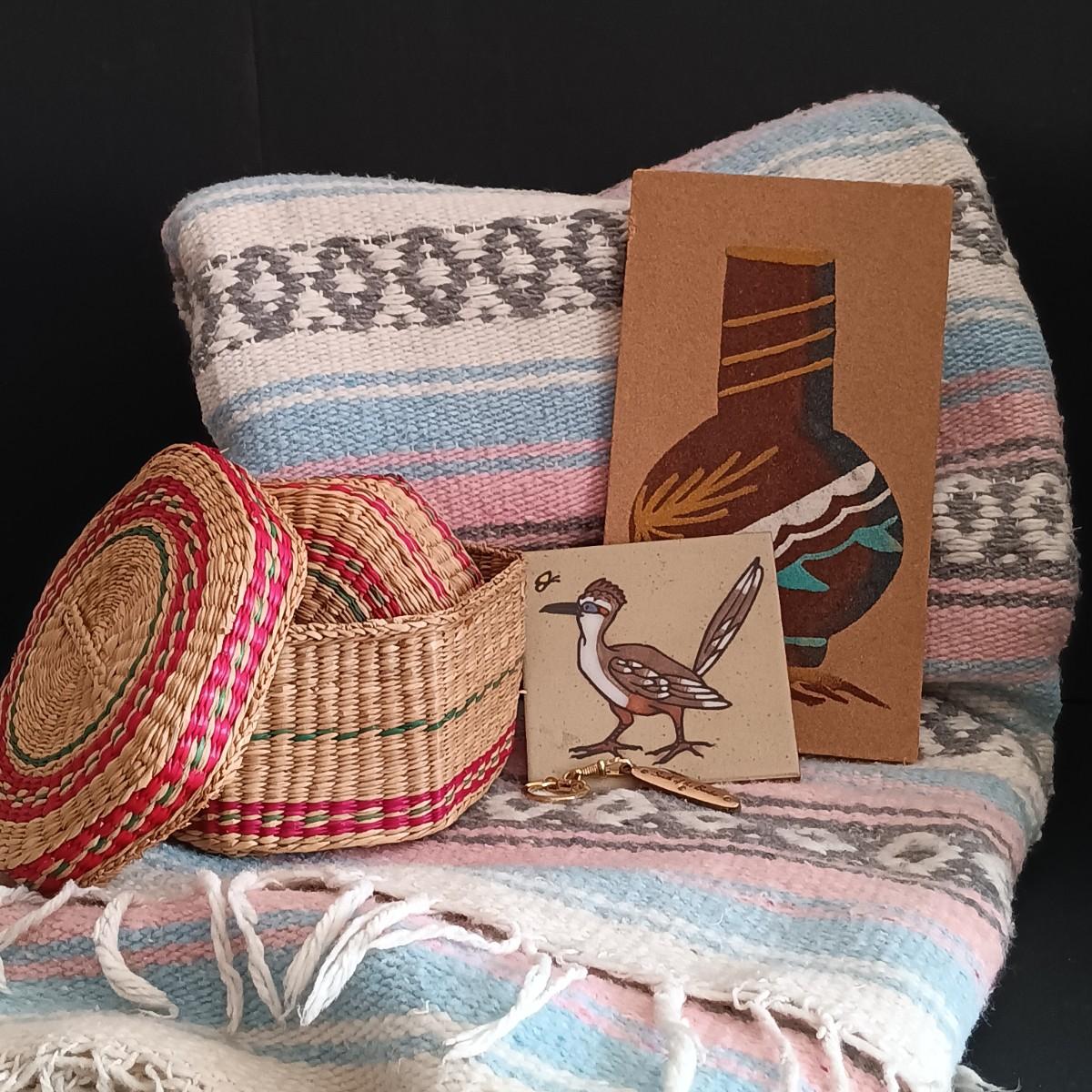 LOT 224: Southwest Collection- Teissedre Designs Tile, Sand Art Painting, Woven Grass Baskets & More