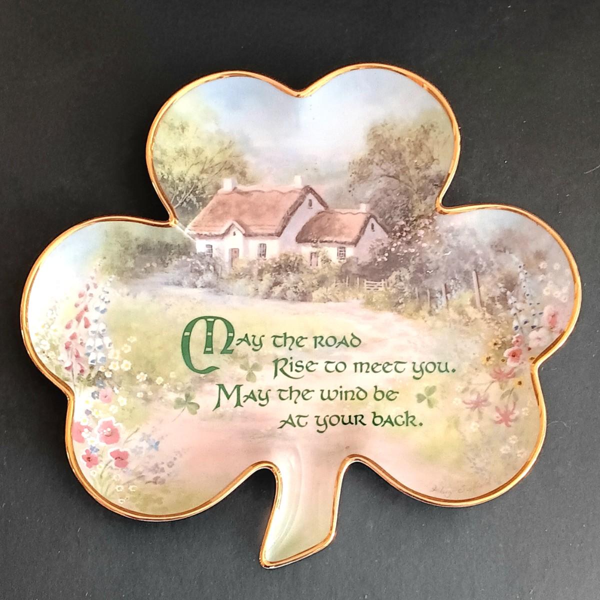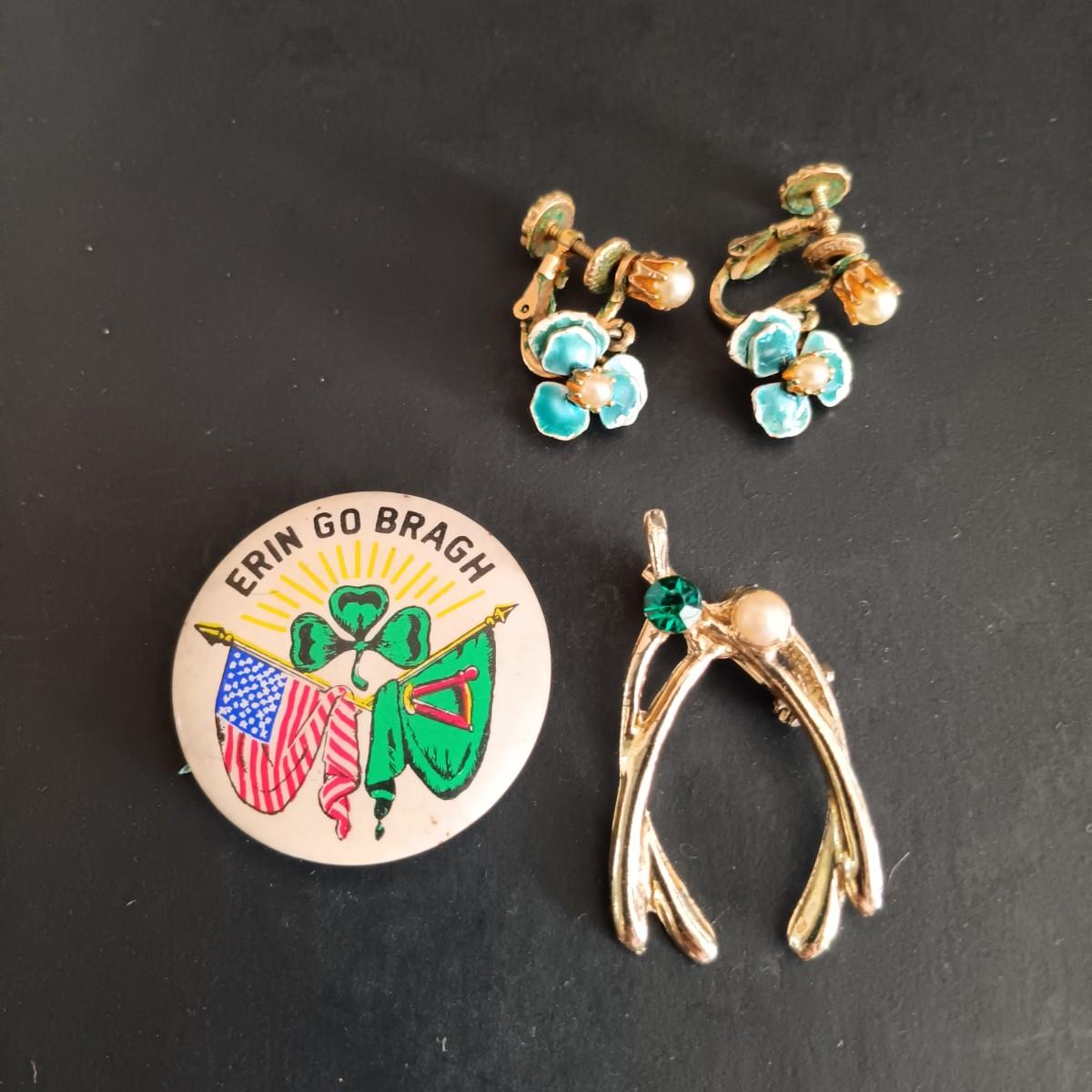 LOT 229: St Patrick's Day Collection- Franklin Mint 'Irish Blessing' Plate, Costume Jewelry & Erin Go Bragh Pin