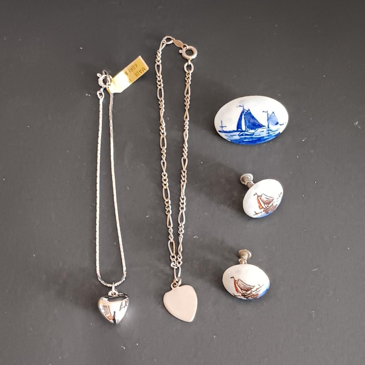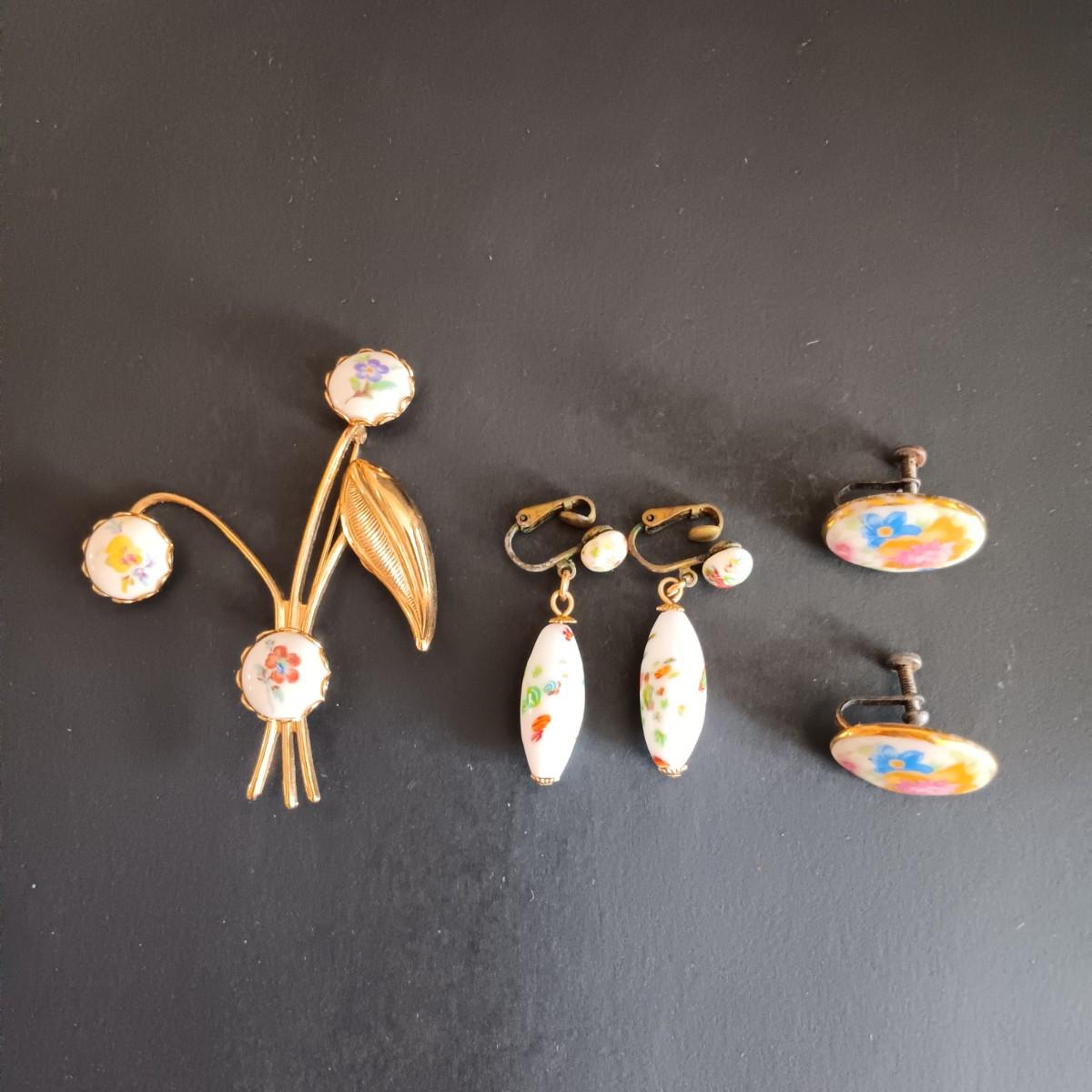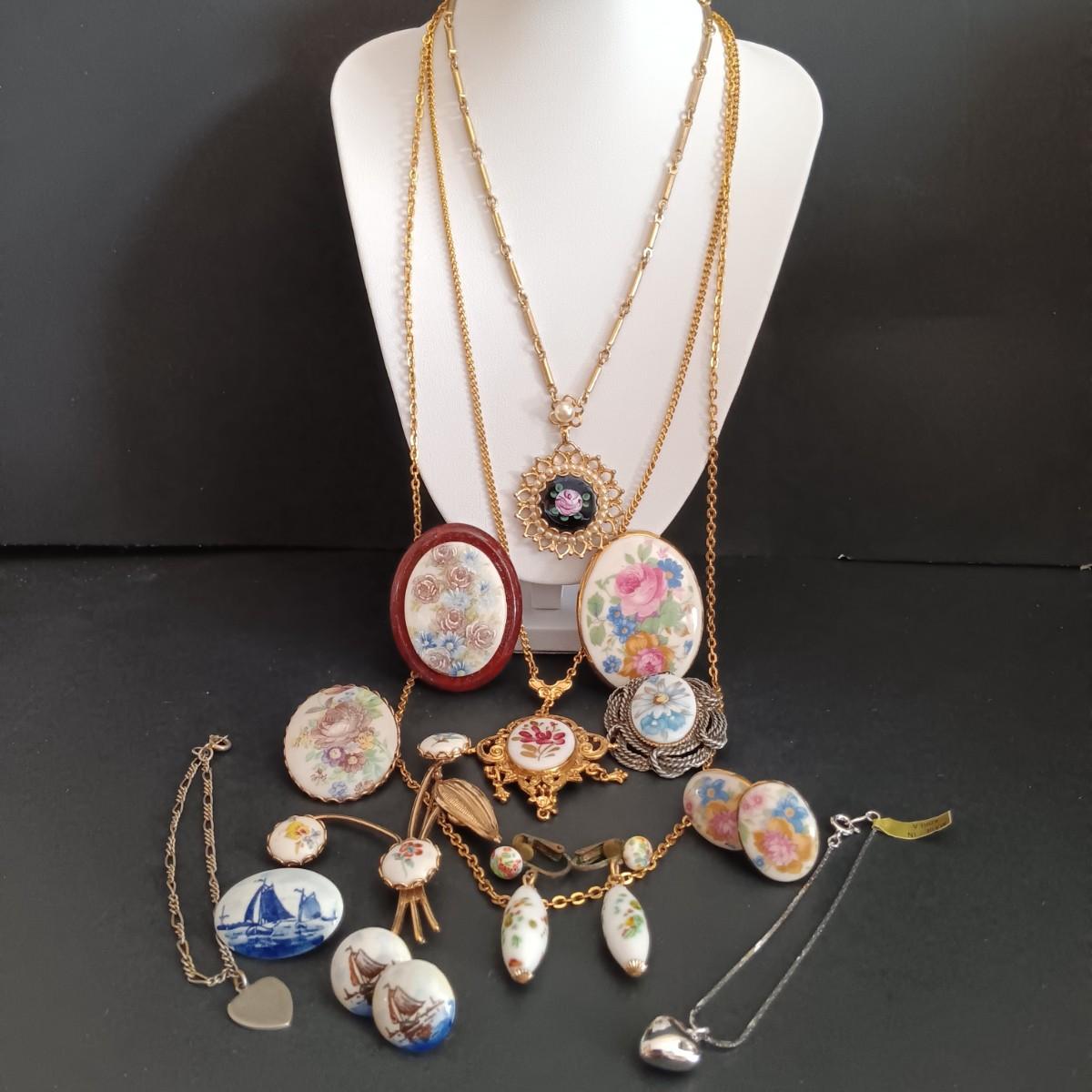 LOT 233: A Collection of Painted Ceramic Jewelry w/ 2 Heart Bracelets
