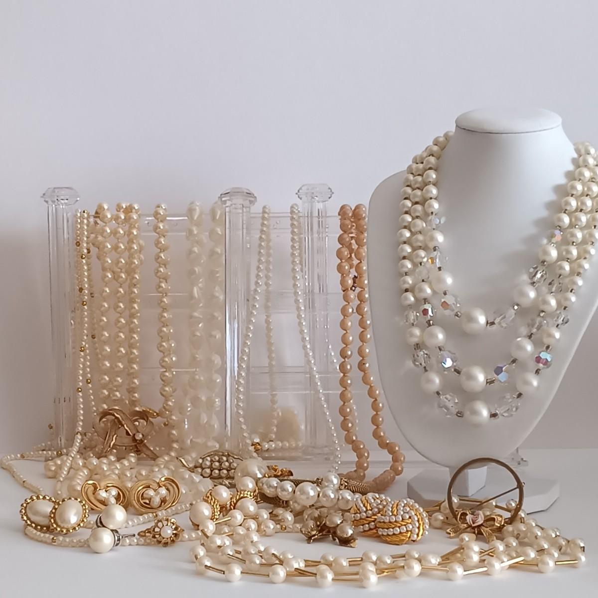 LOT 235: A Large Collection of Faux Pearl Costume Jewelry