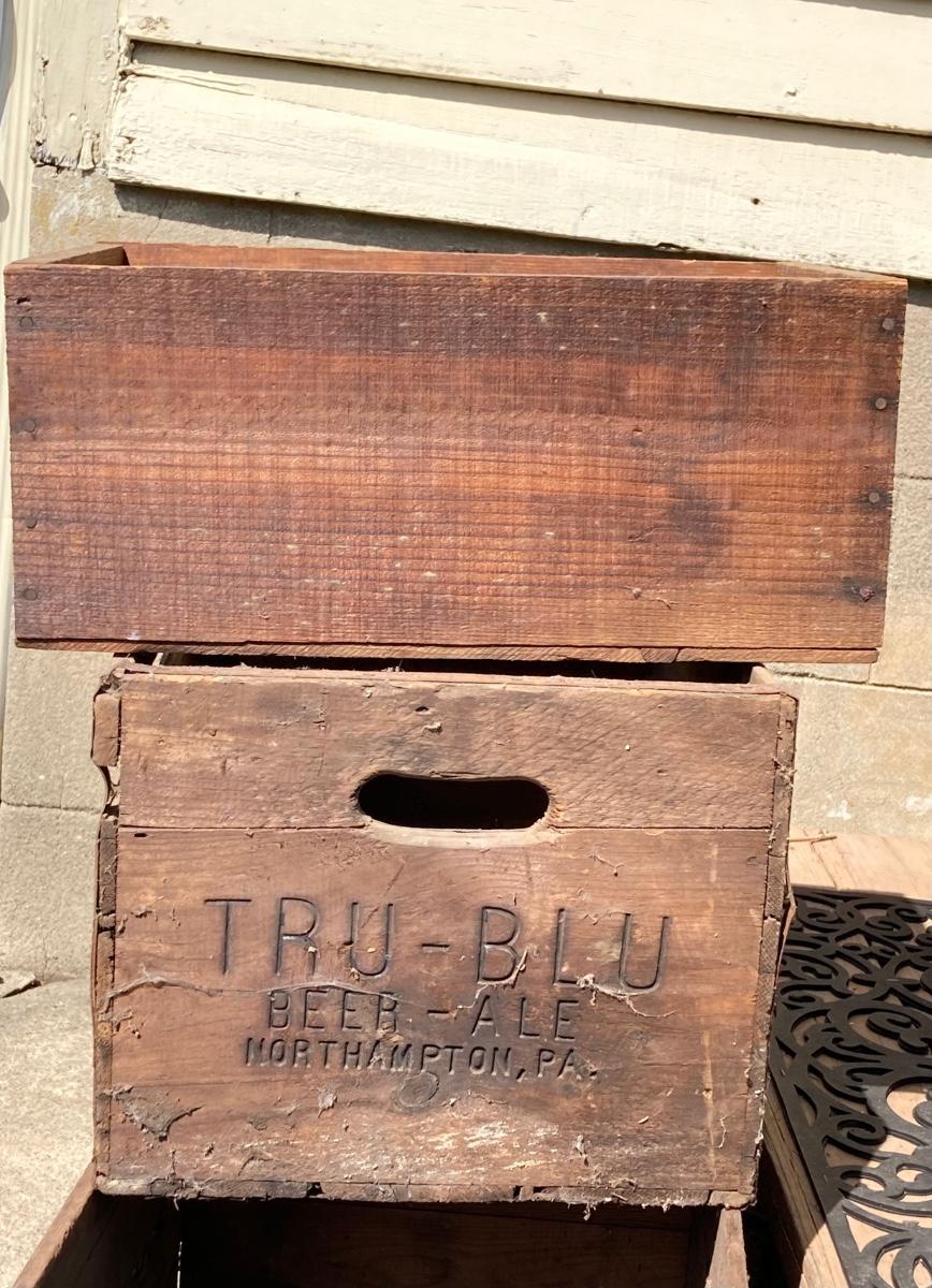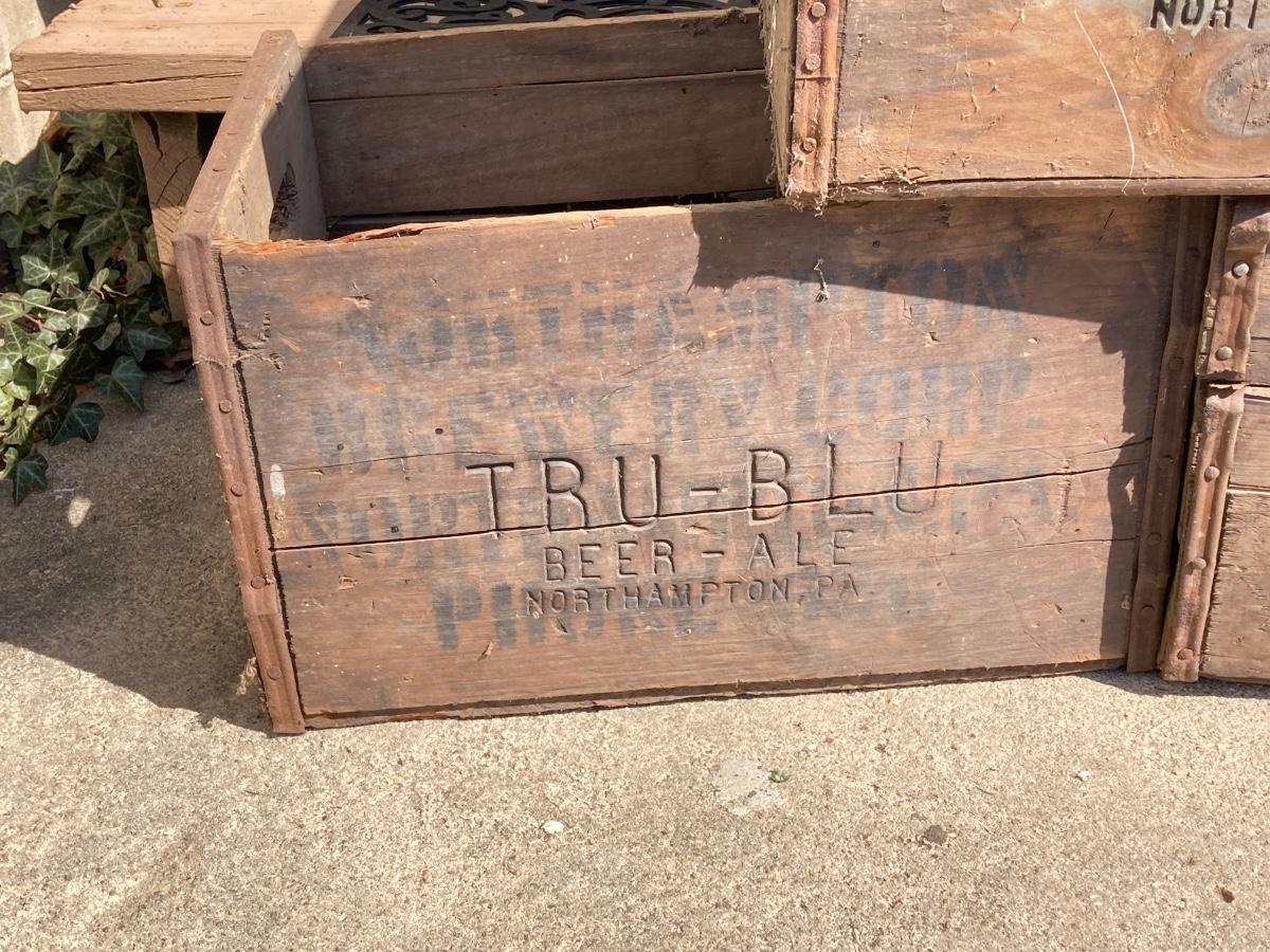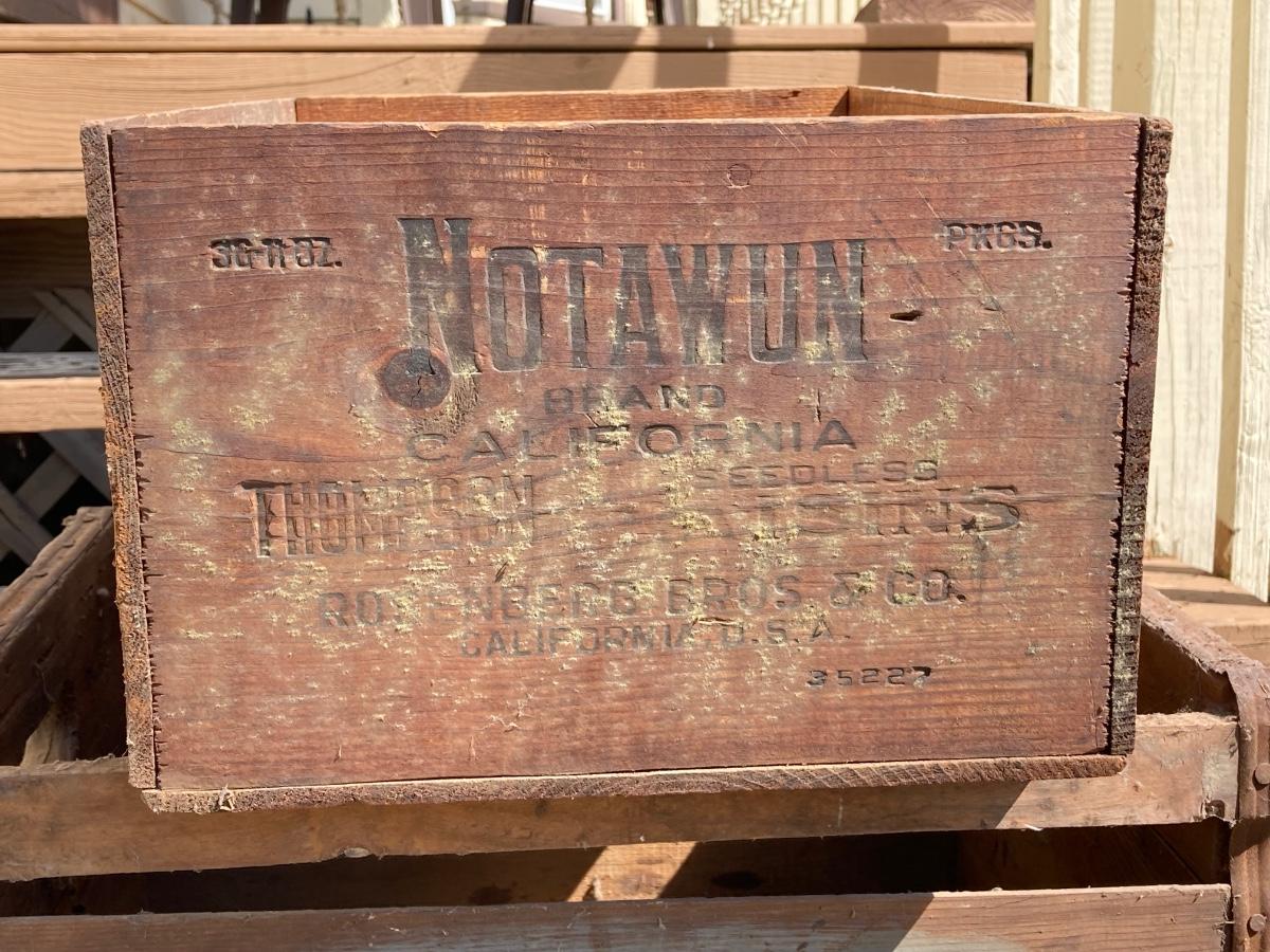 LOT 245: Vintage Wooden Storage Boxes - Tru-Blu Beer-Ale and Notawun Thompson Raisins Rosenberg Bros & Co.