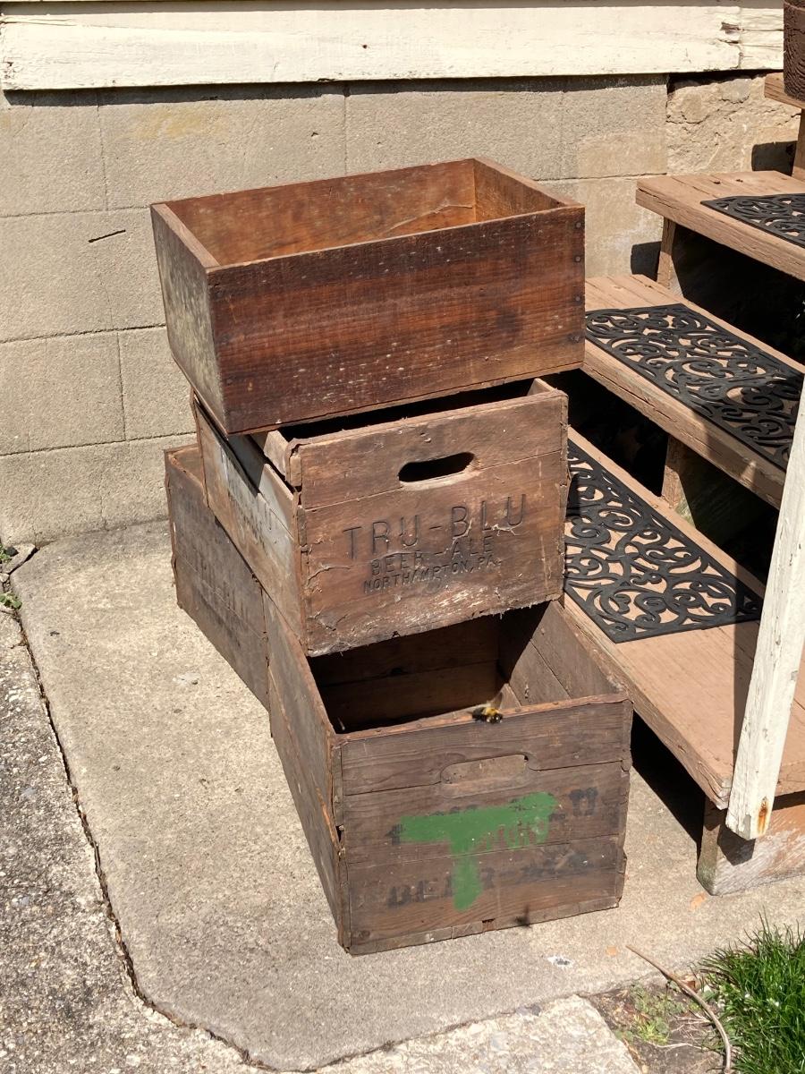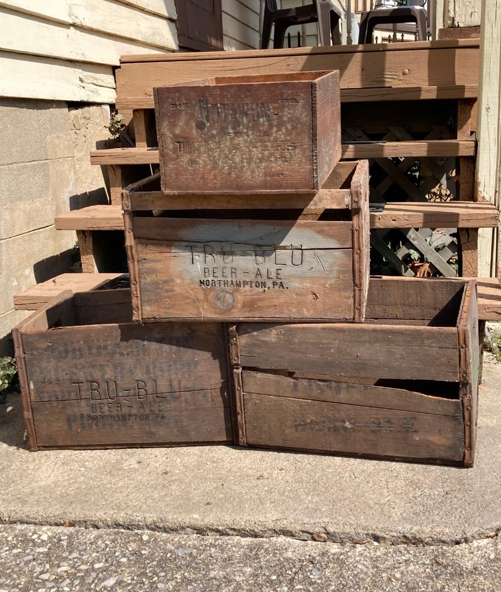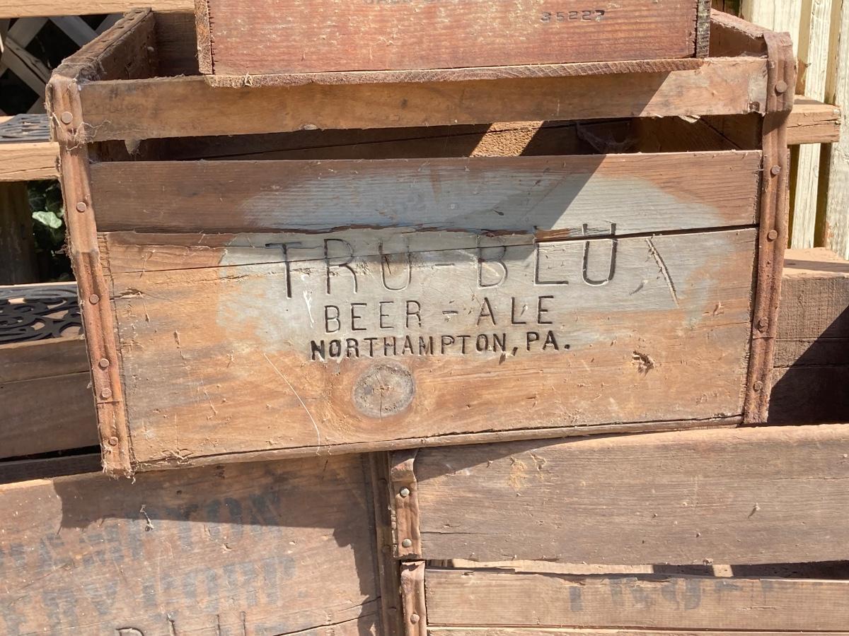LOT 245: Vintage Wooden Storage Boxes - Tru-Blu Beer-Ale and Notawun Thompson Raisins Rosenberg Bros & Co.