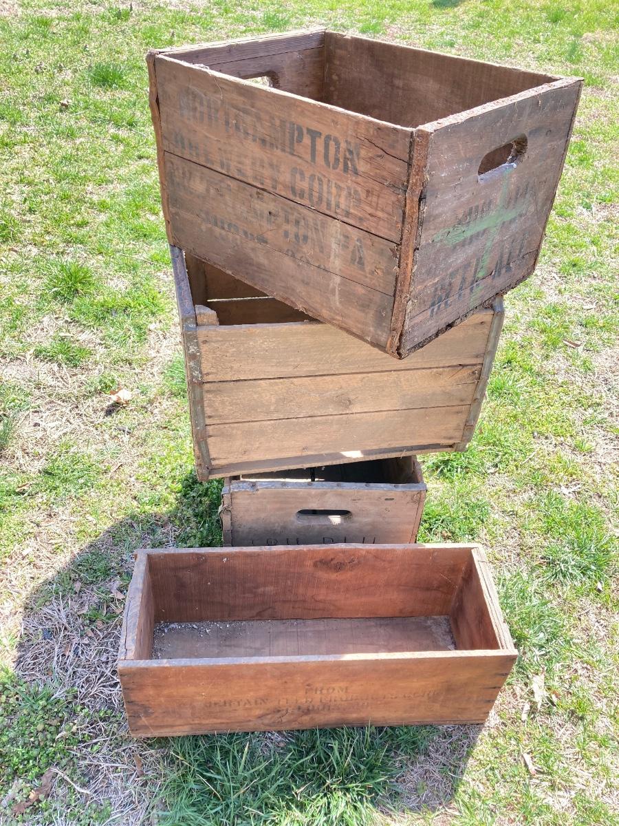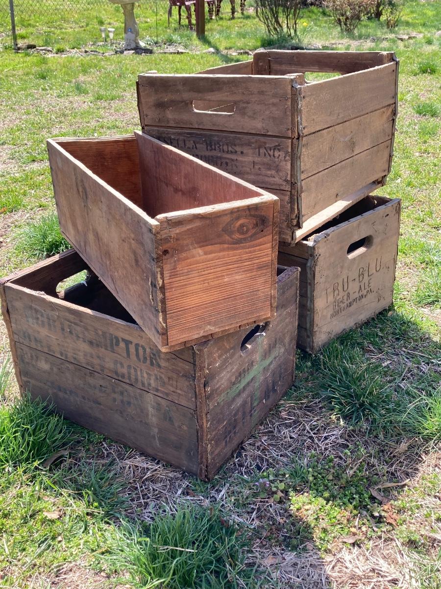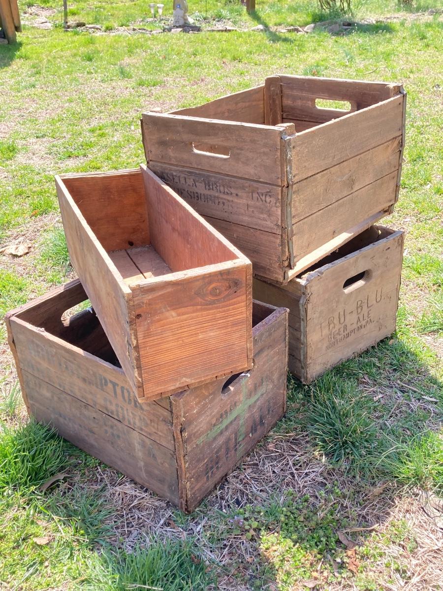 LOT 246: Five Vintage Wooden Storage Boxes