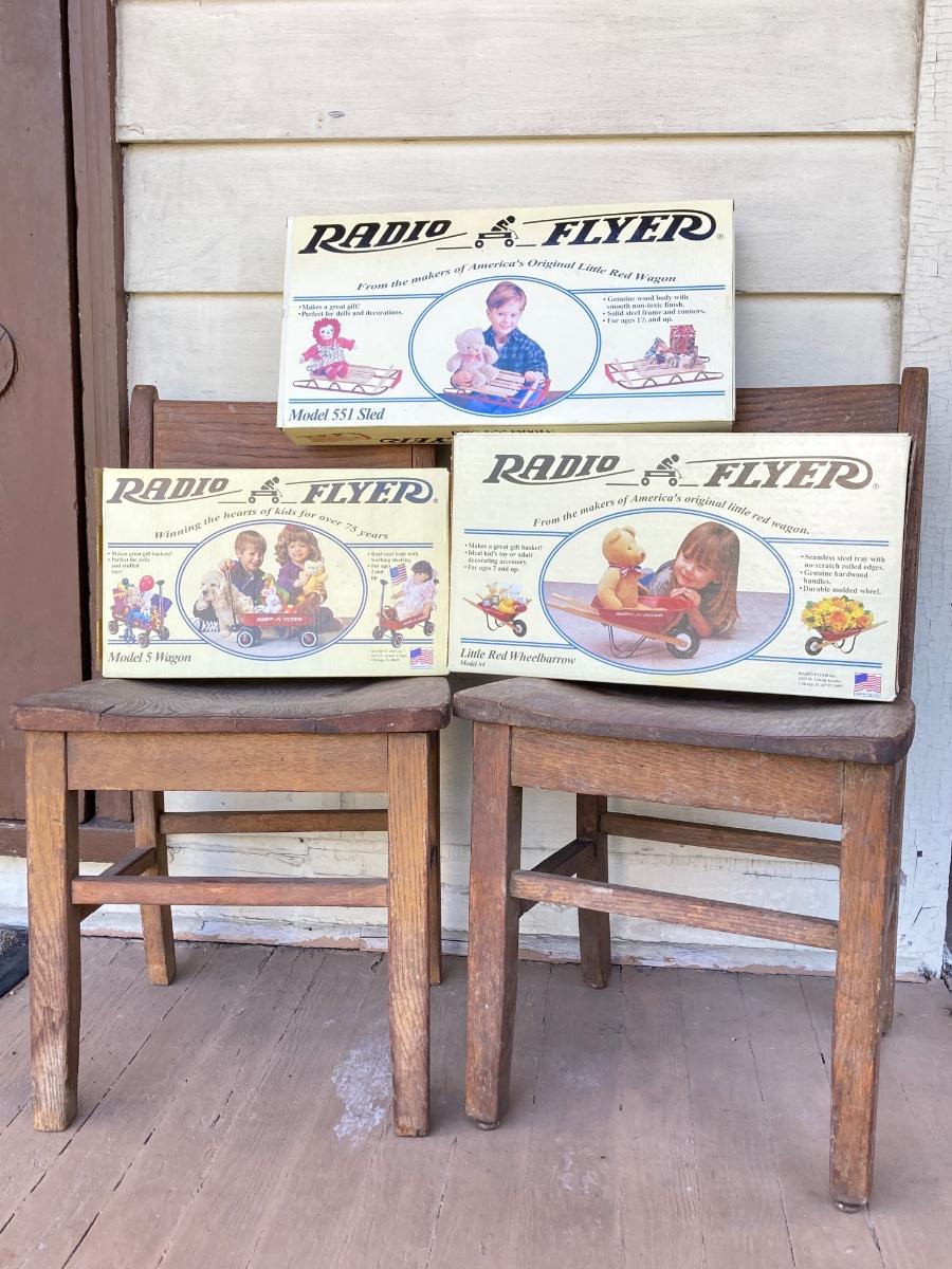 LOT 253: Two Wooden Children's Chairs and Radio Flyer Models