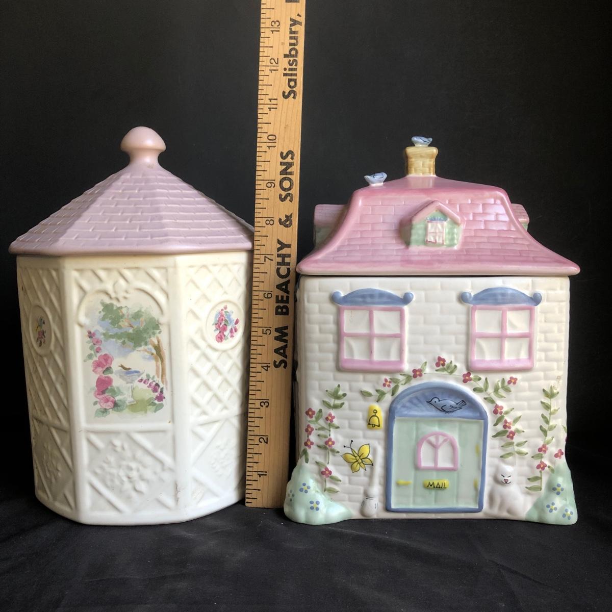 LOT 4K: Pfaltzgraff House Cookie Jar / Kitchen Canister & Cape May Cookie Jar