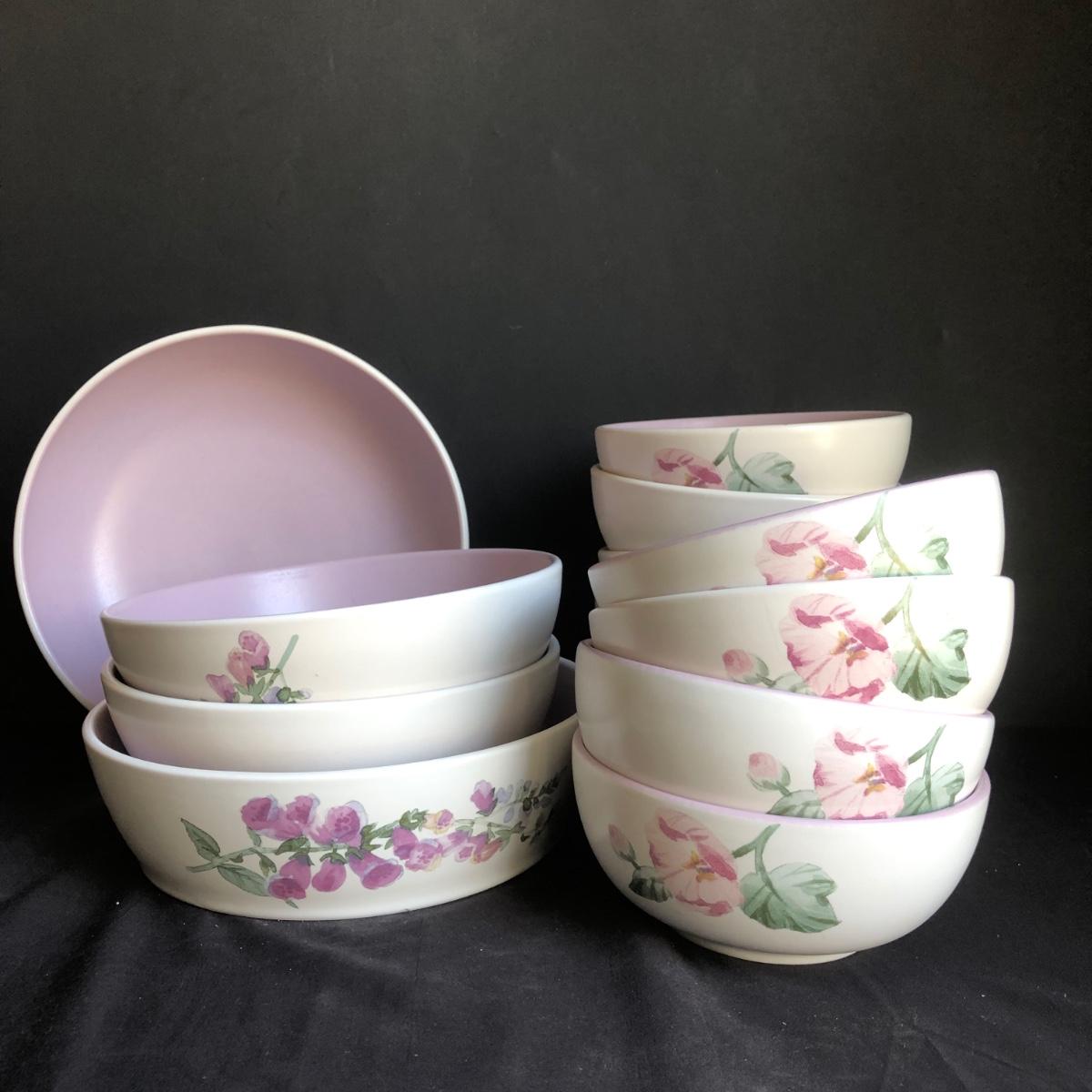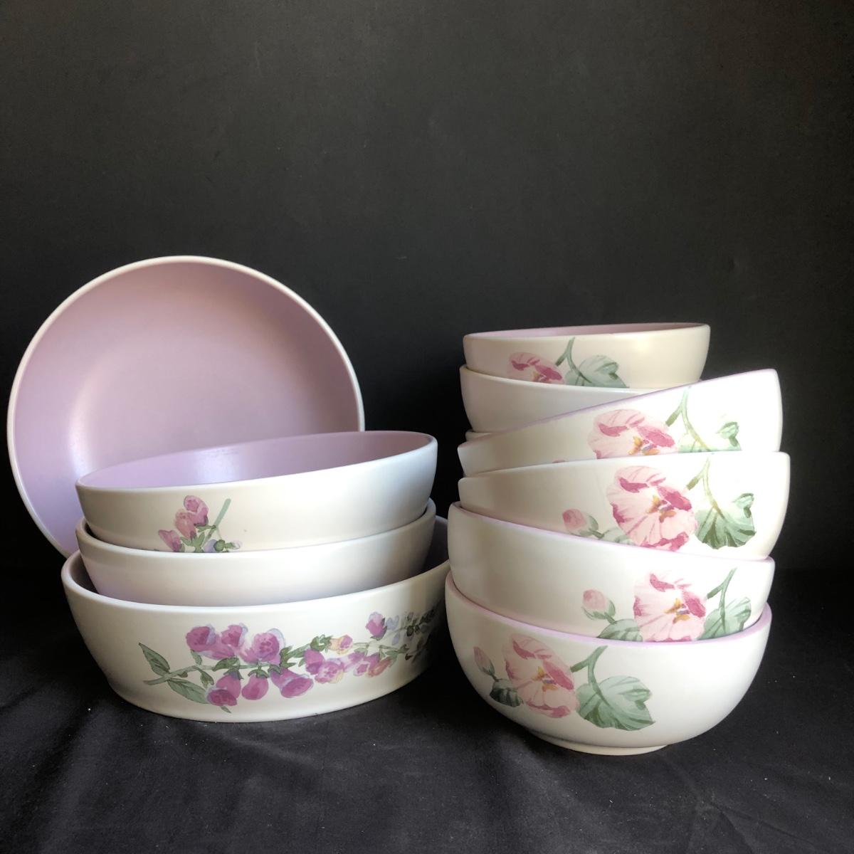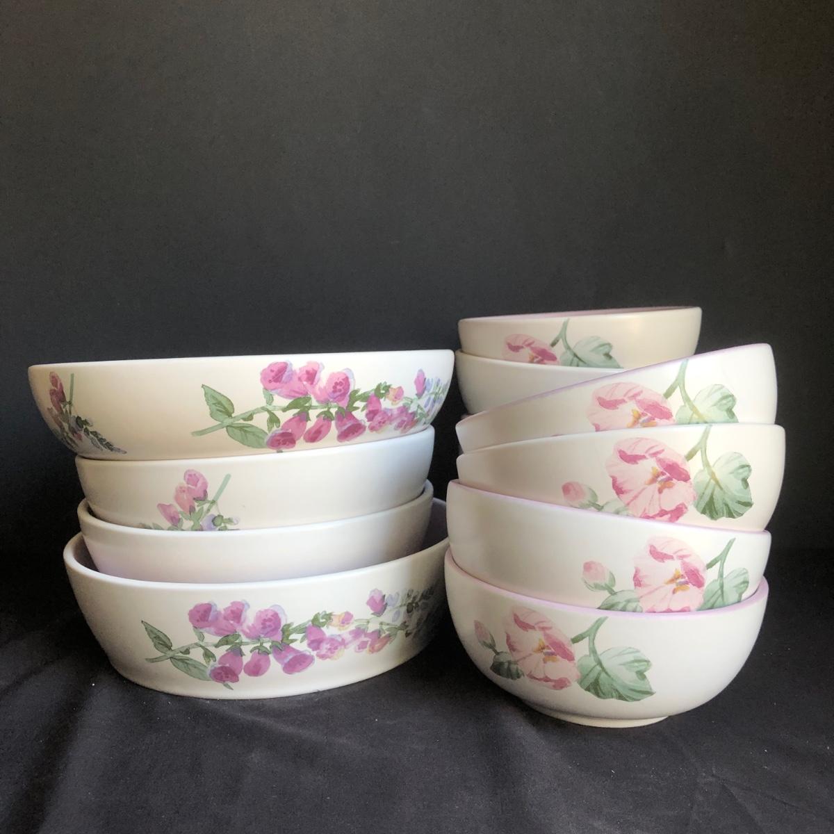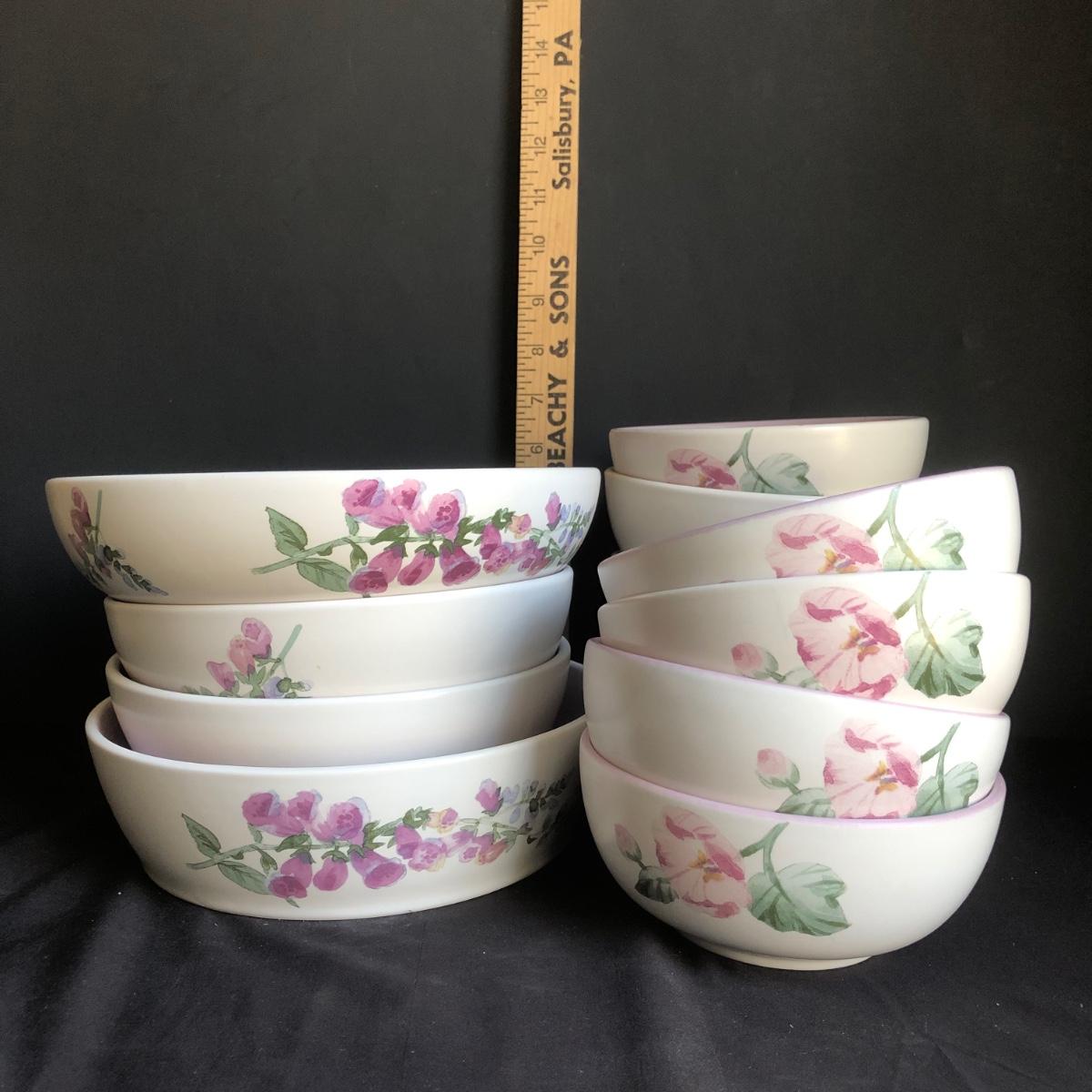 LOT 6K: Pfaltzgraff Cape May Soup / Cereal Bowls & Foxglove Lavender Serving Bowls