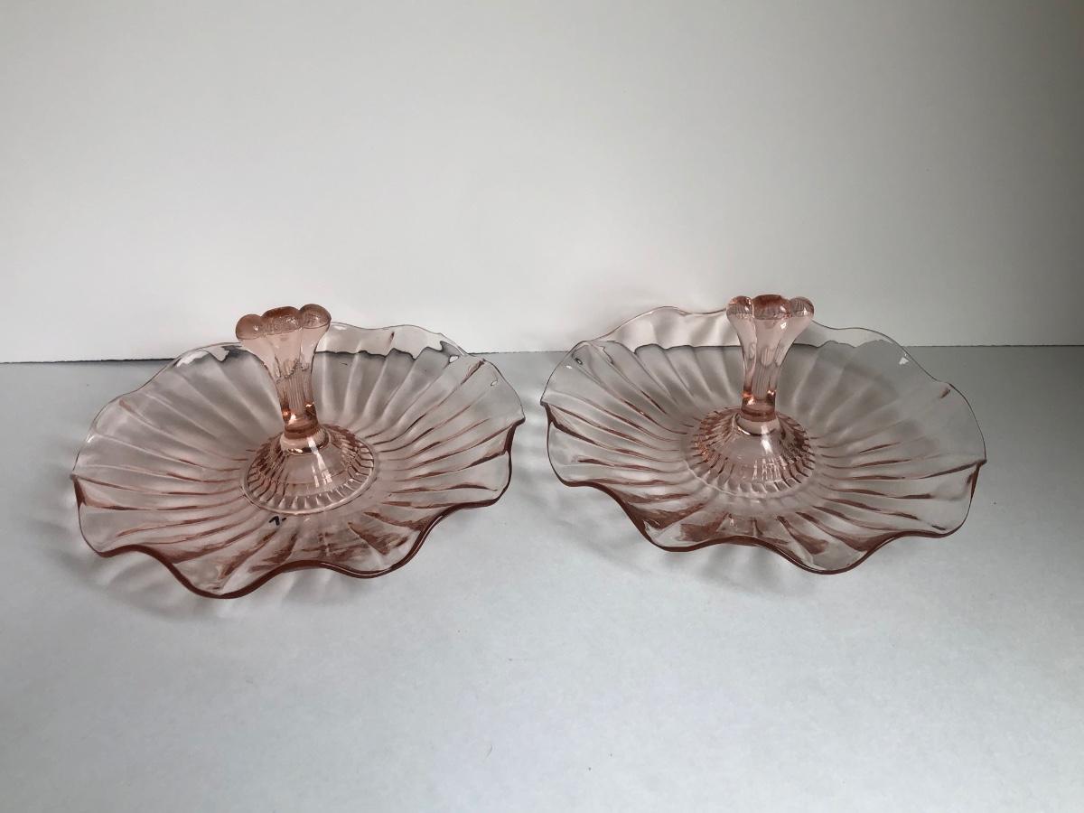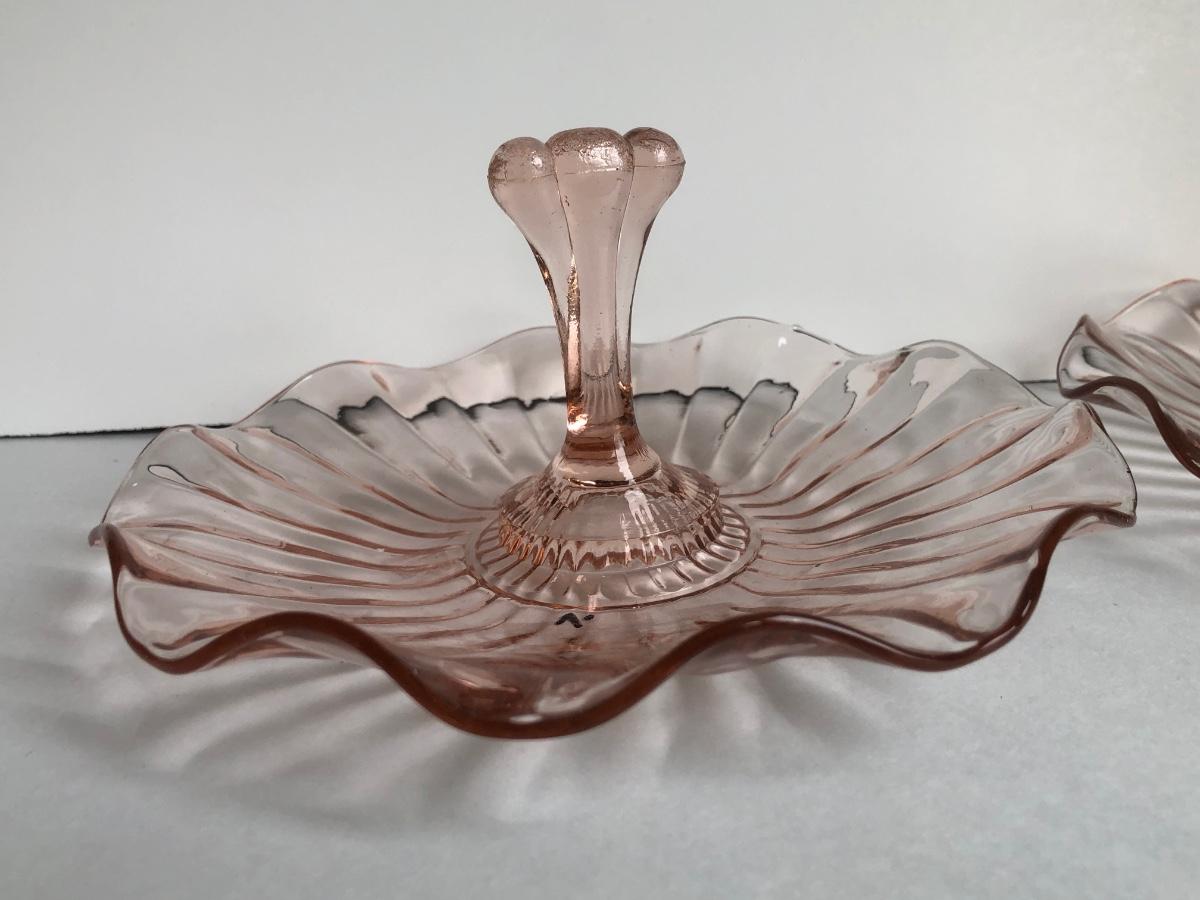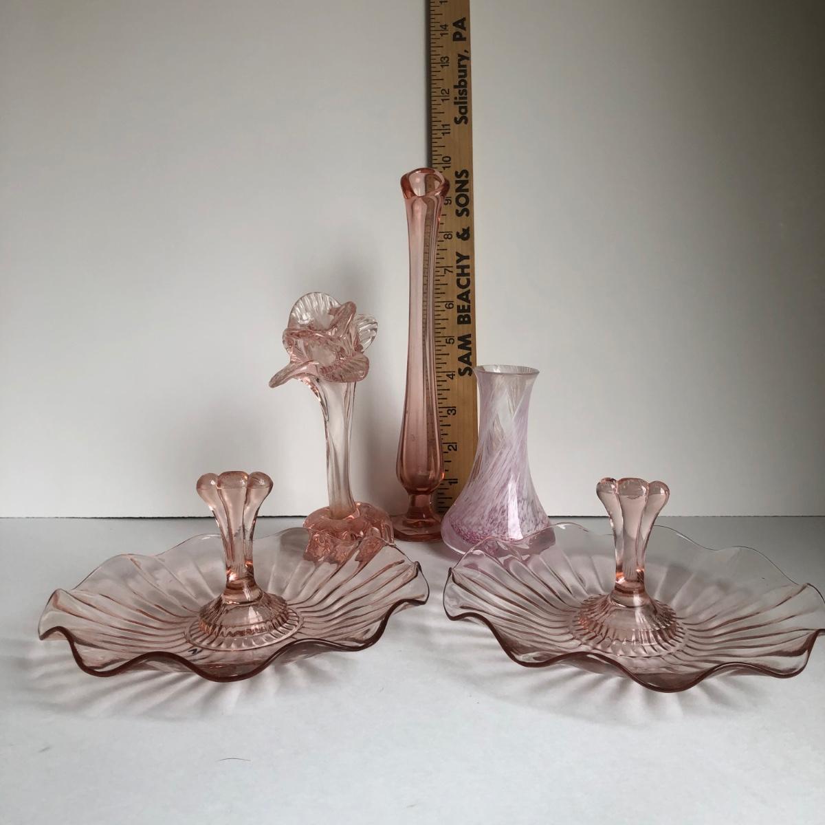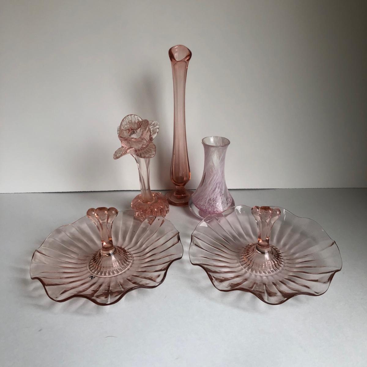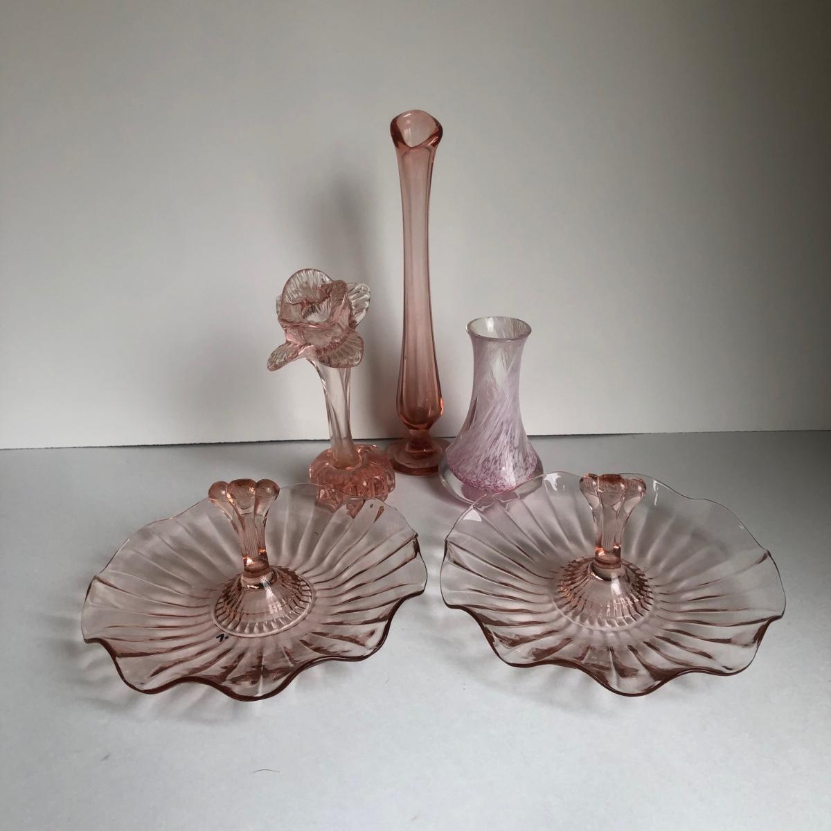 LOT 15K: Vintage Pink Depression Glass Trays, Art Glass Vase & More