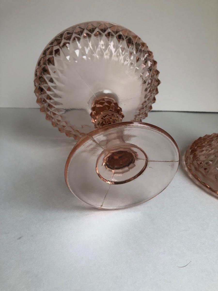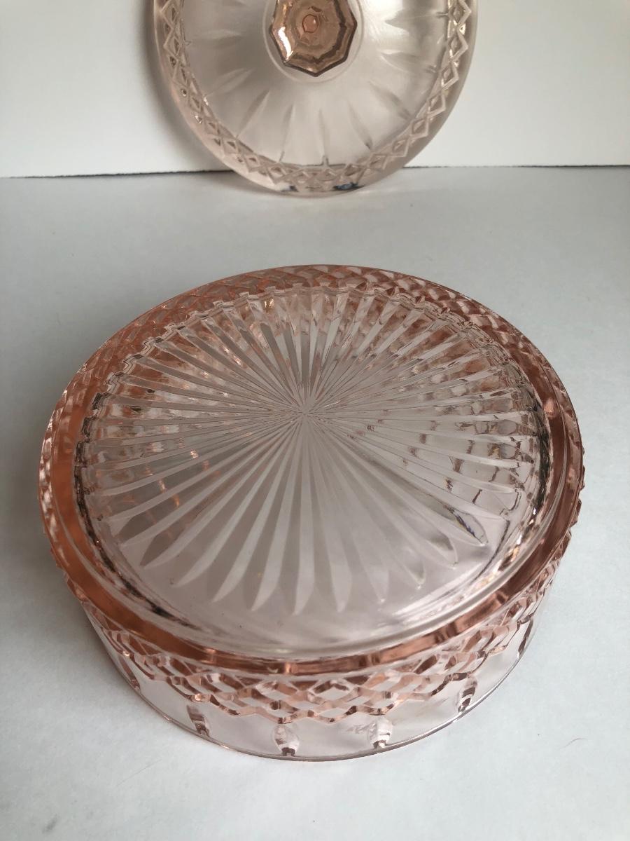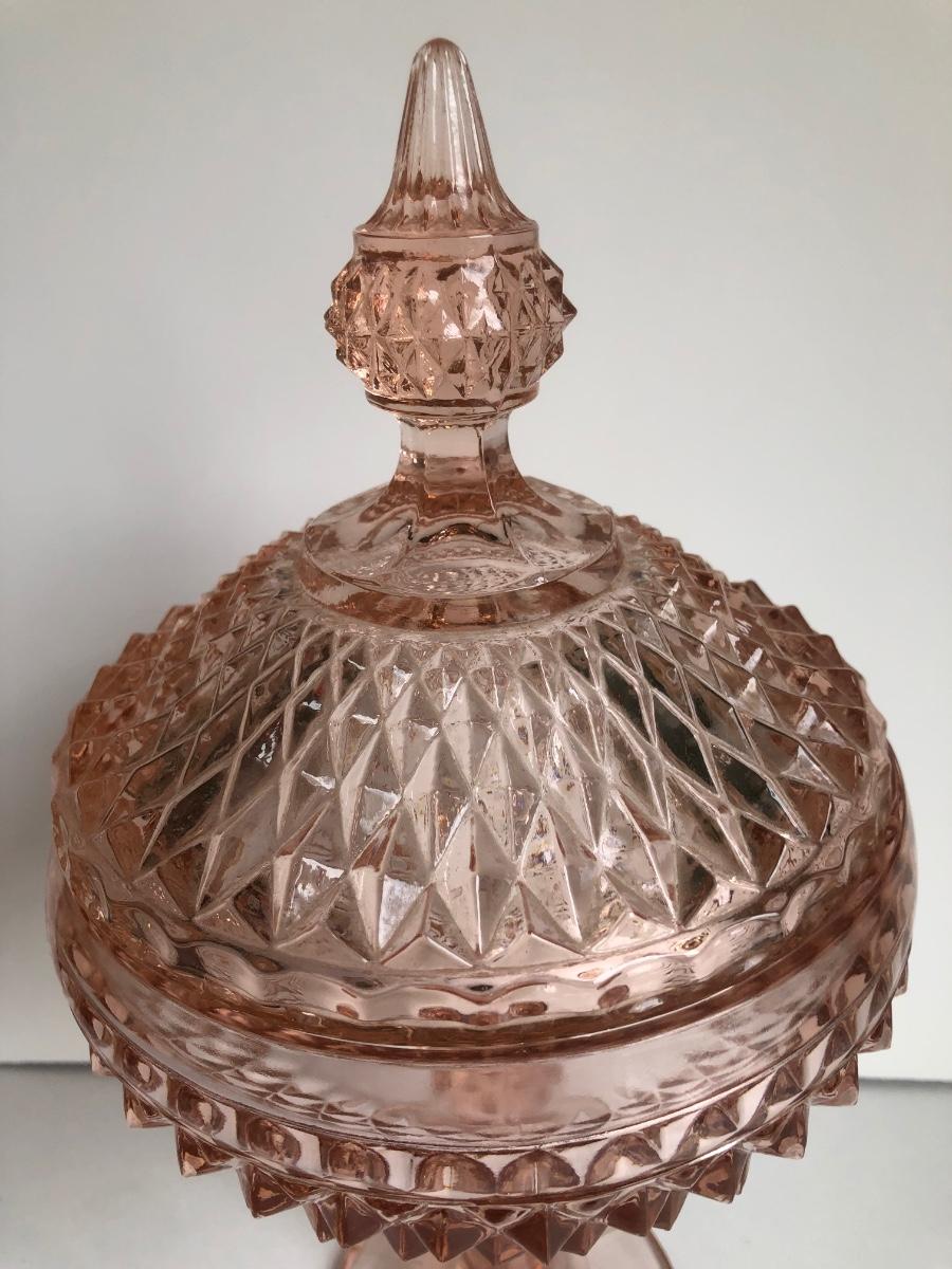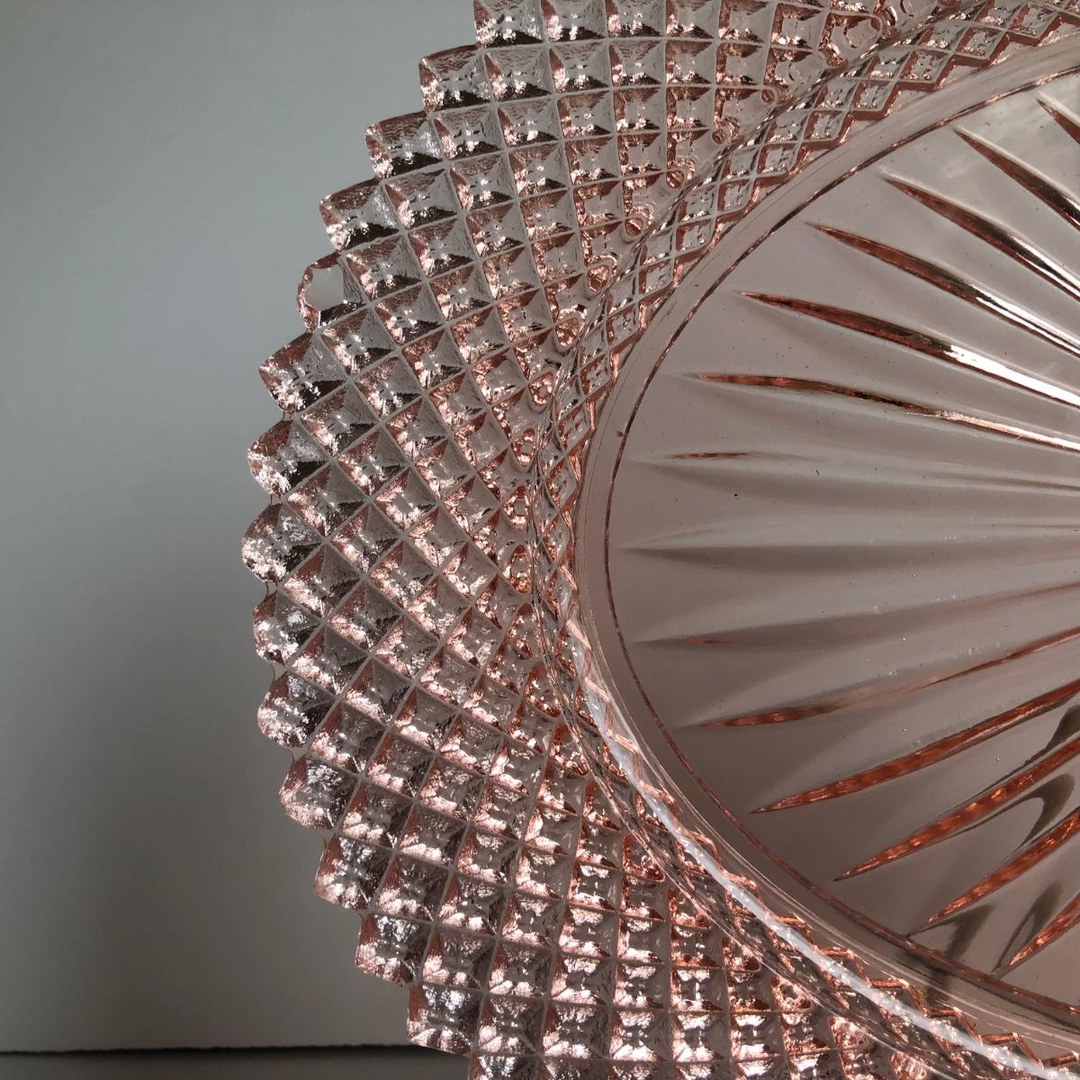 LOT 16K: Vintage Diamond Cut Pink Glass - Anchor Hocking Miss America Platter, Pedestal Jewelry Dish & Indiana Depression Candy Dish
