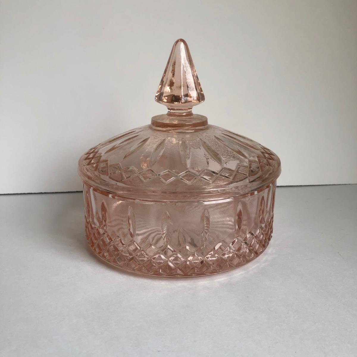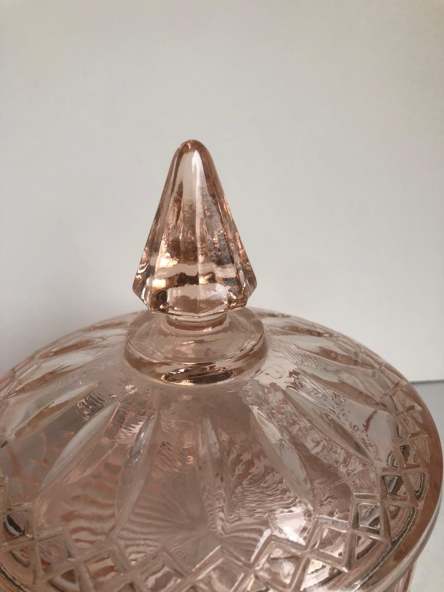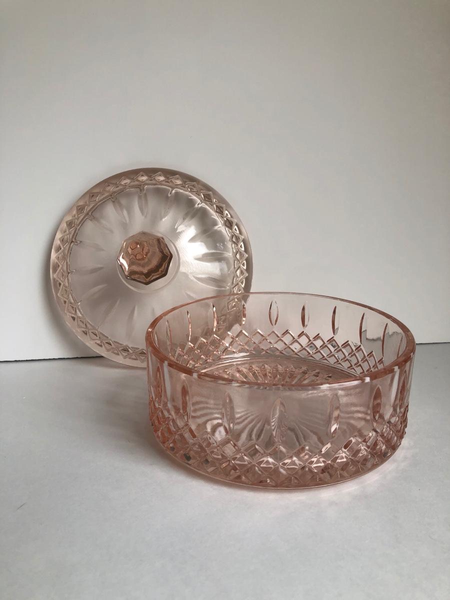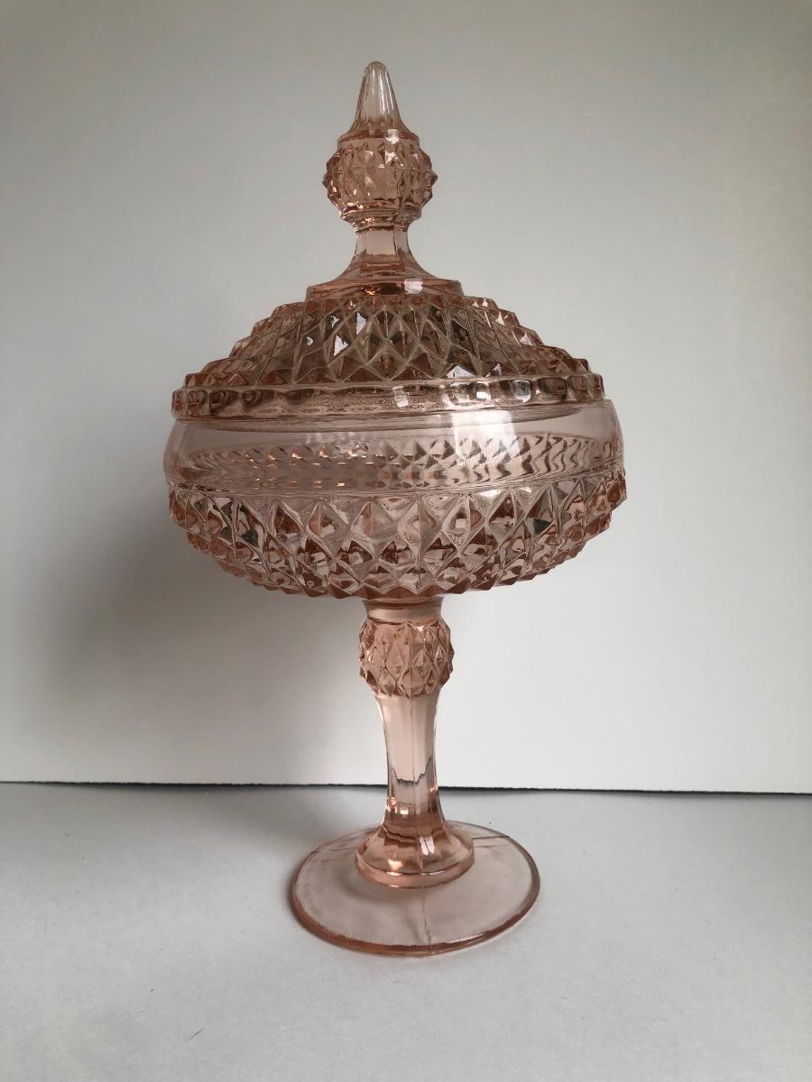 LOT 16K: Vintage Diamond Cut Pink Glass - Anchor Hocking Miss America Platter, Pedestal Jewelry Dish & Indiana Depression Candy Dish