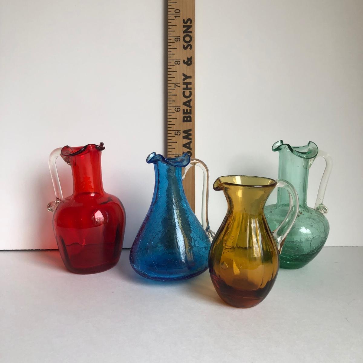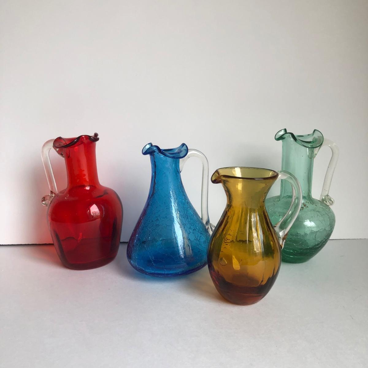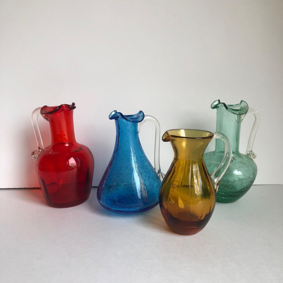 LOT 17K: Vintage Colorful Art Glass Pitchers - Two w/ Crackle Pattern