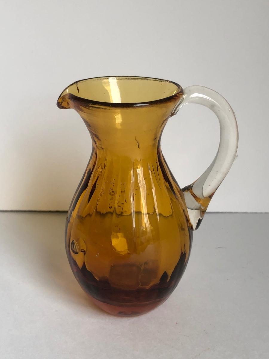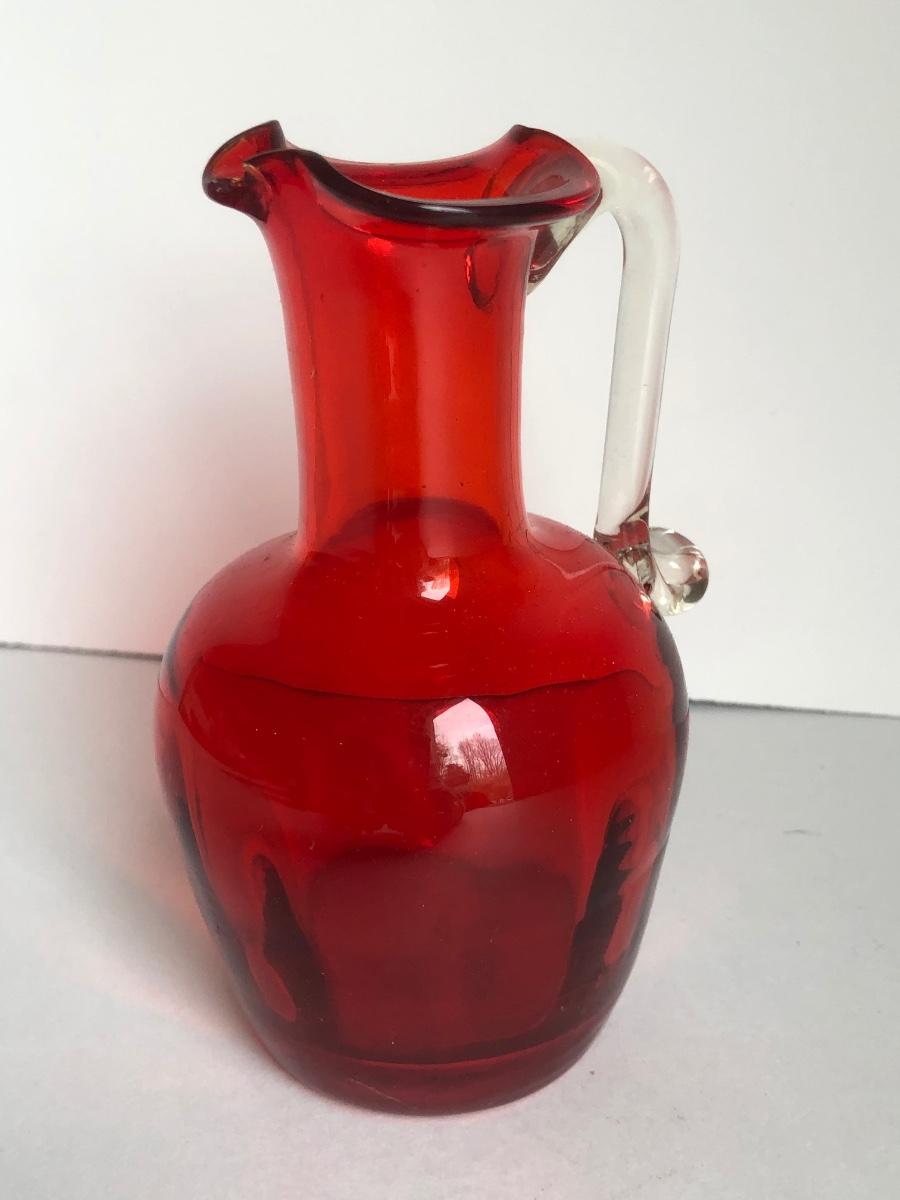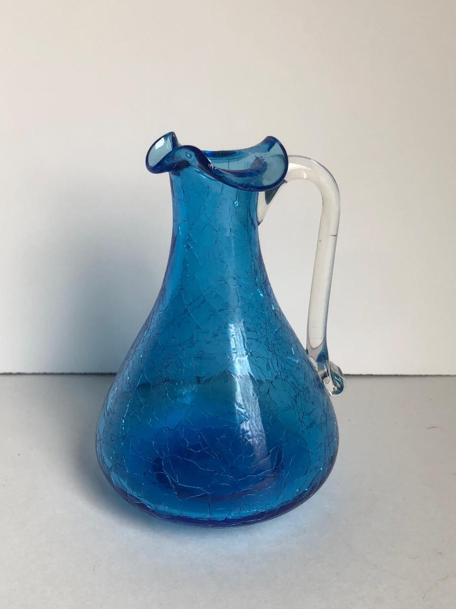 LOT 17K: Vintage Colorful Art Glass Pitchers - Two w/ Crackle Pattern