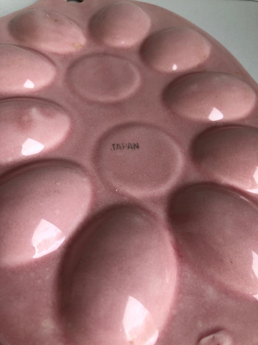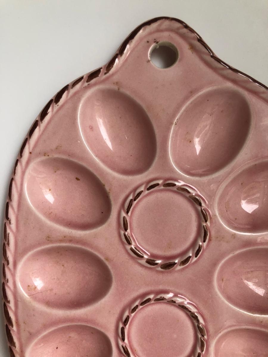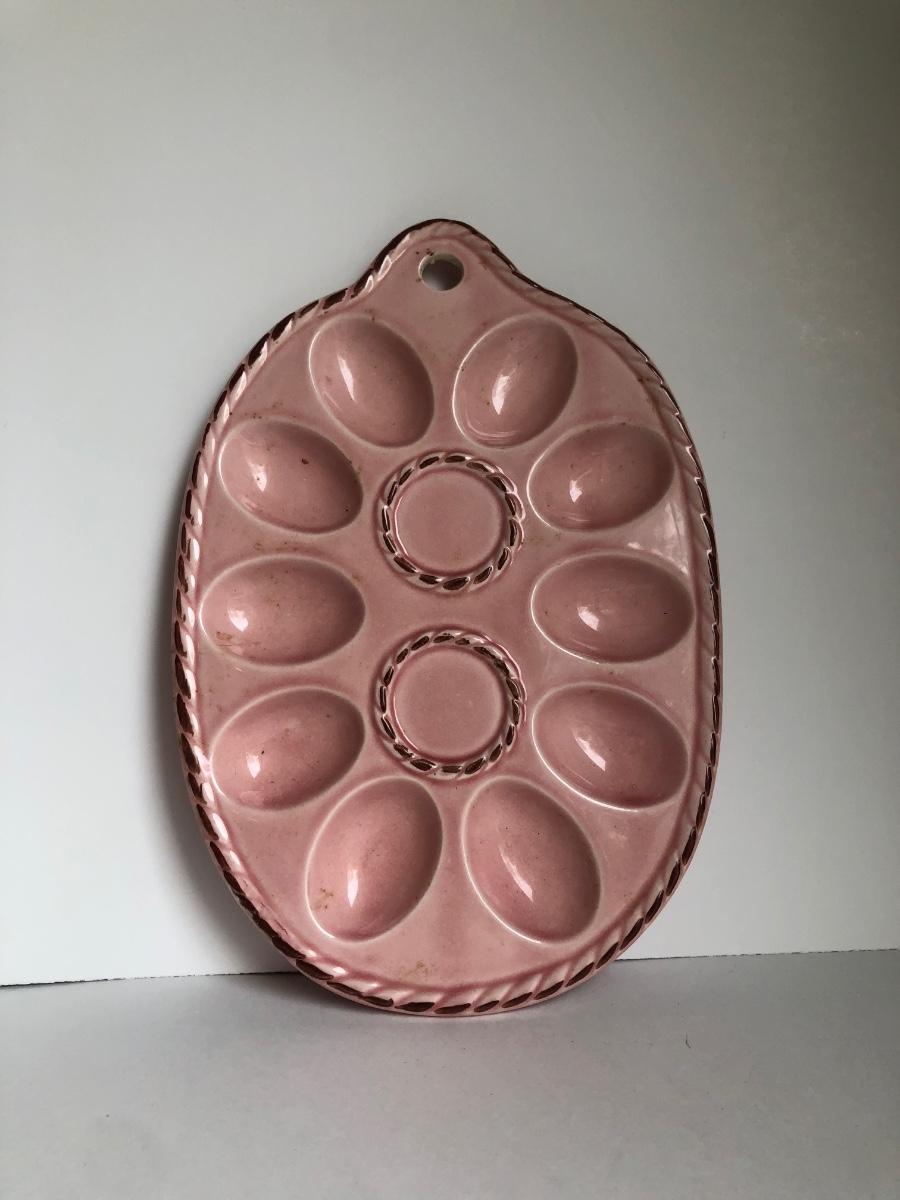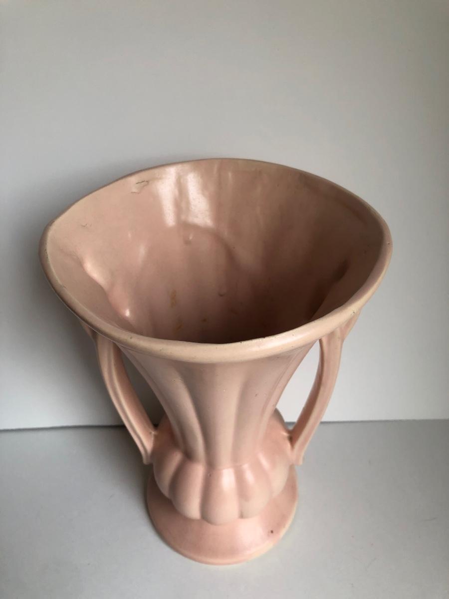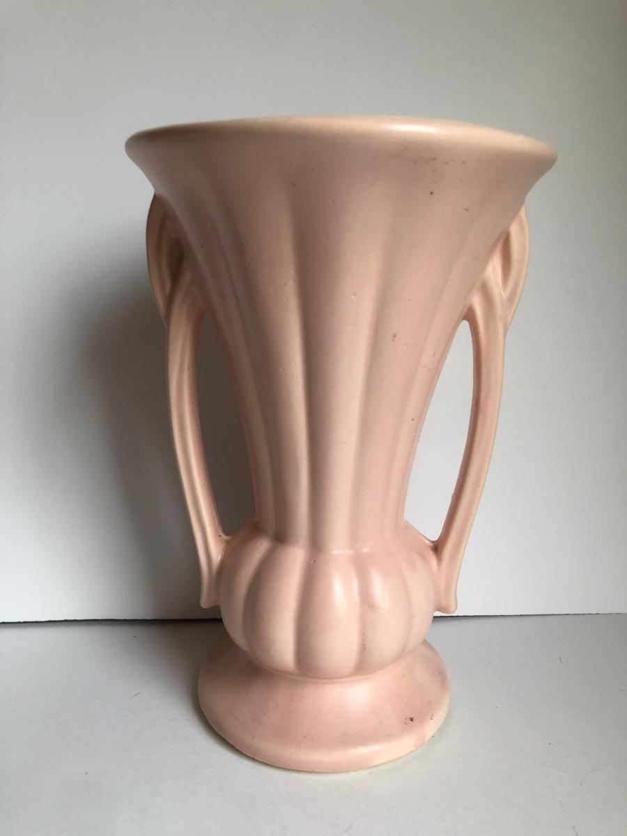 LOT 18K: Vintage Pink Pottery - McCoy Double Handled Art Deco Vase, Hall Cream Pitcher, Egg Dish made in Japan & Light Switch Cover