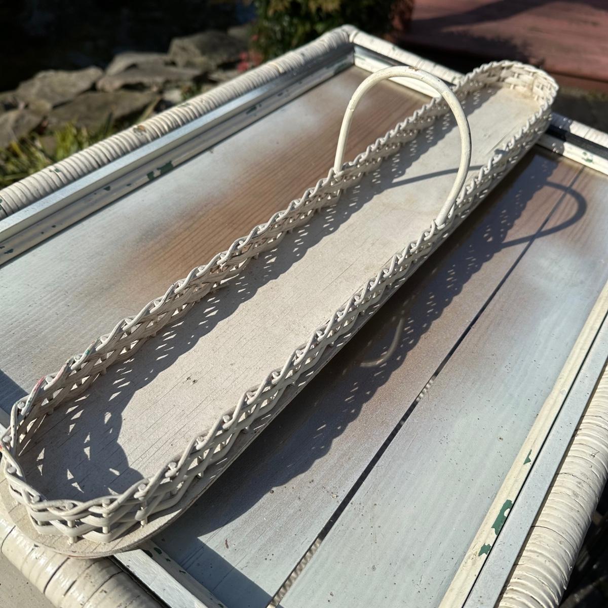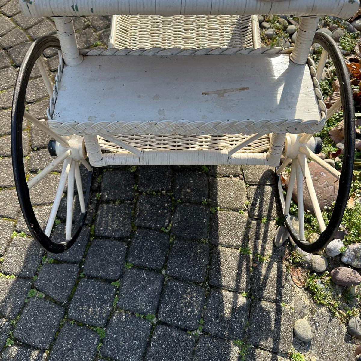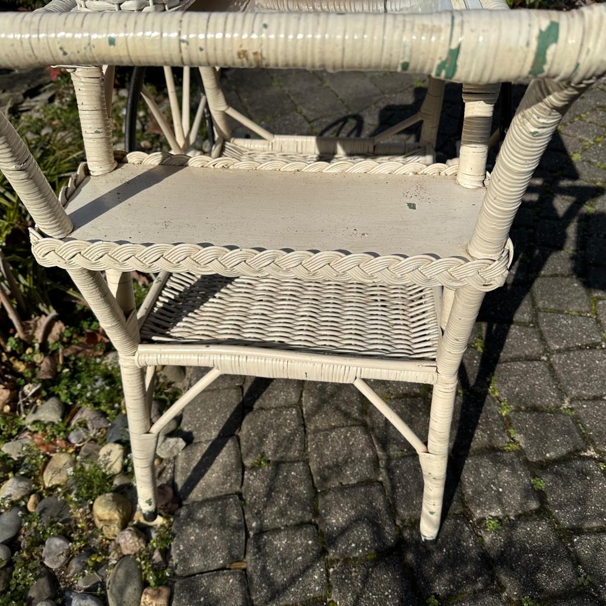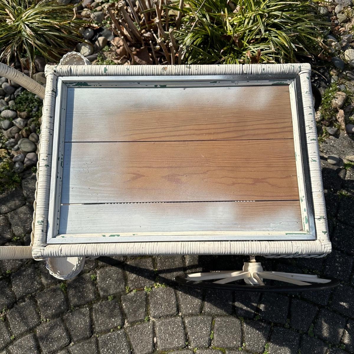 LOT 43L: Vintage White Wicker Glass Top Tea Cart w/ Wicker Serving Baskets