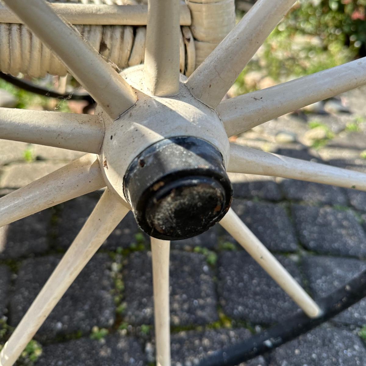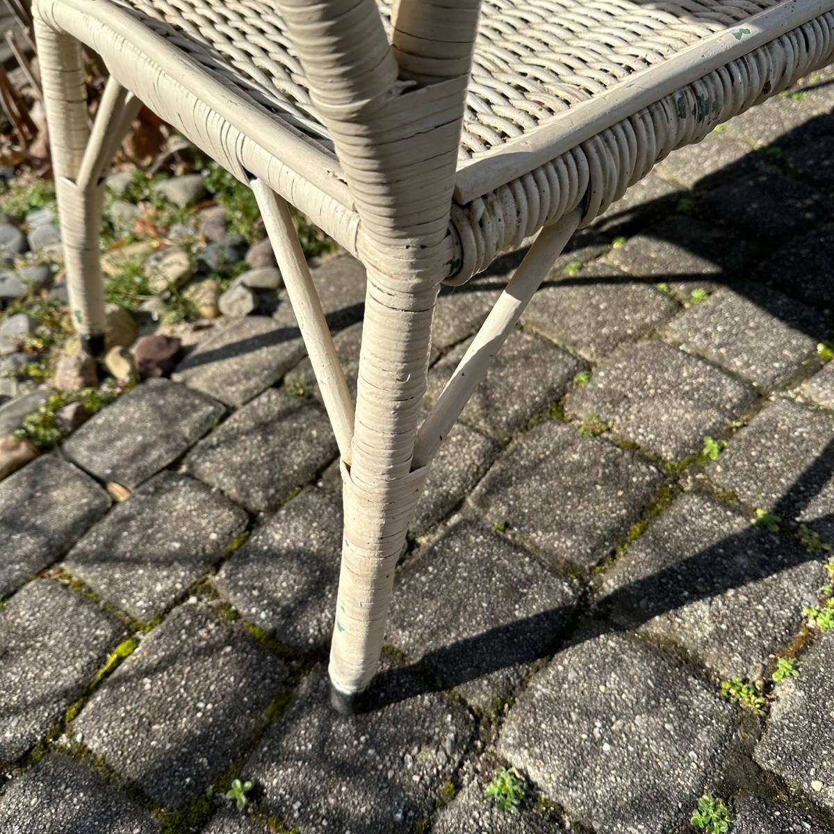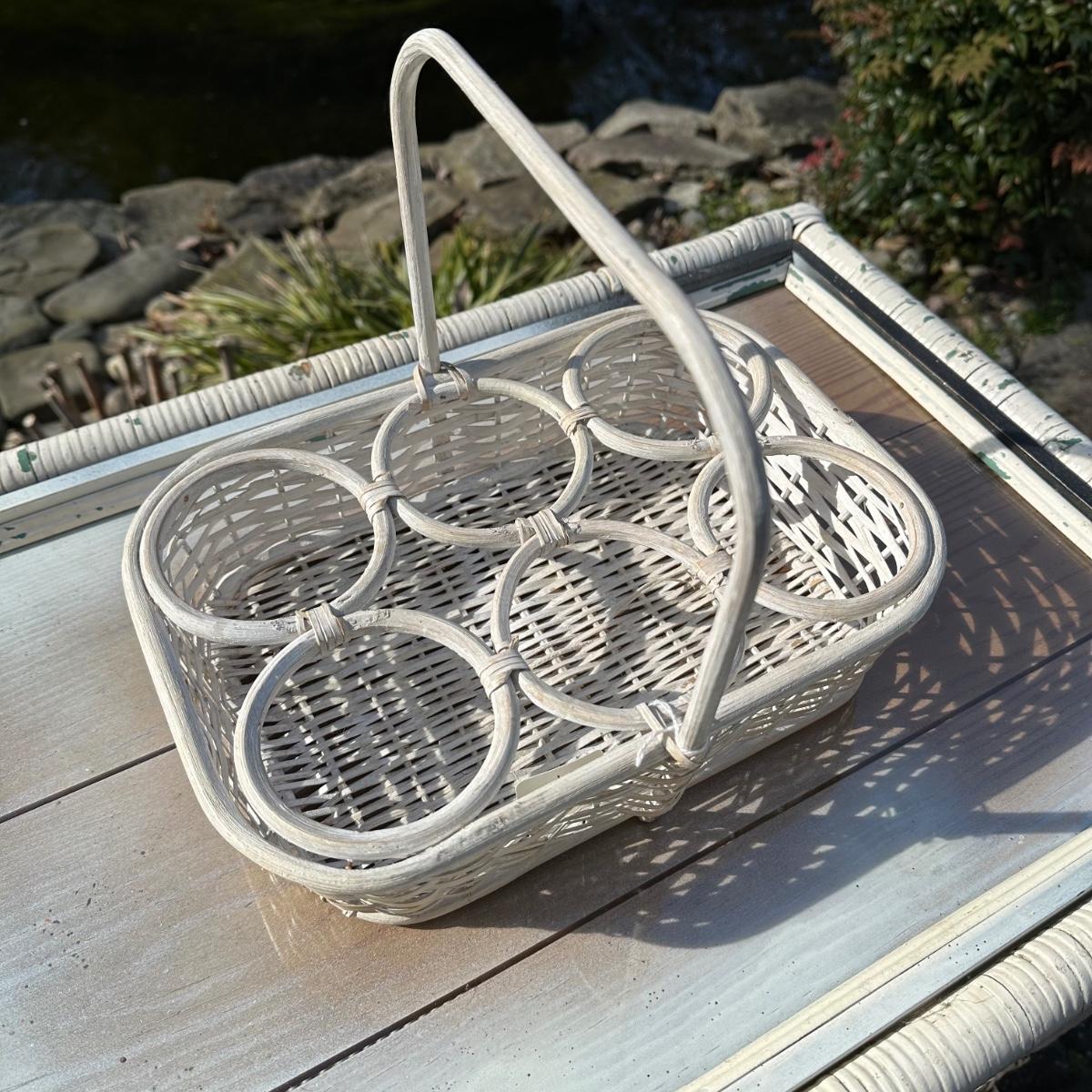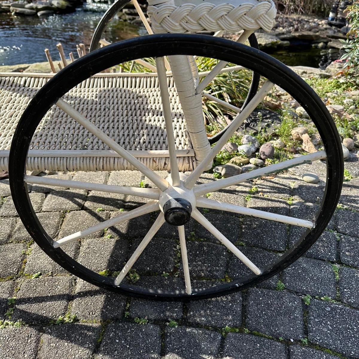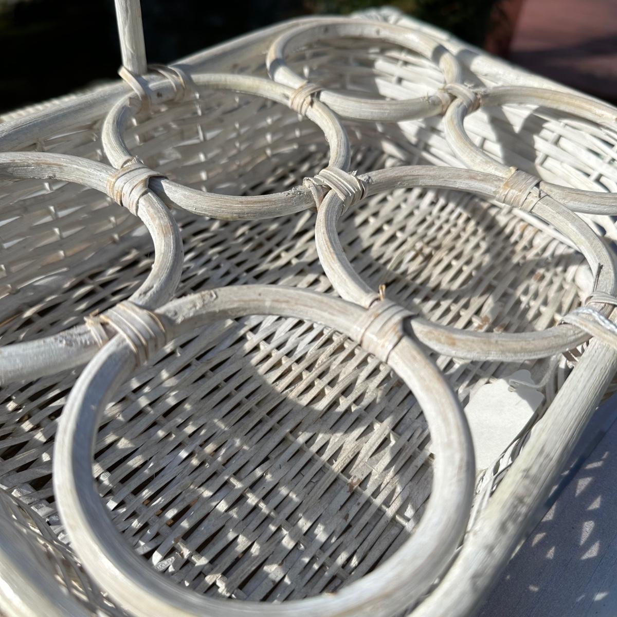 LOT 43L: Vintage White Wicker Glass Top Tea Cart w/ Wicker Serving Baskets
