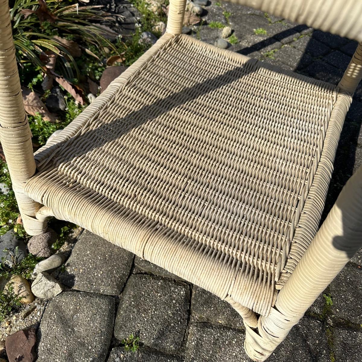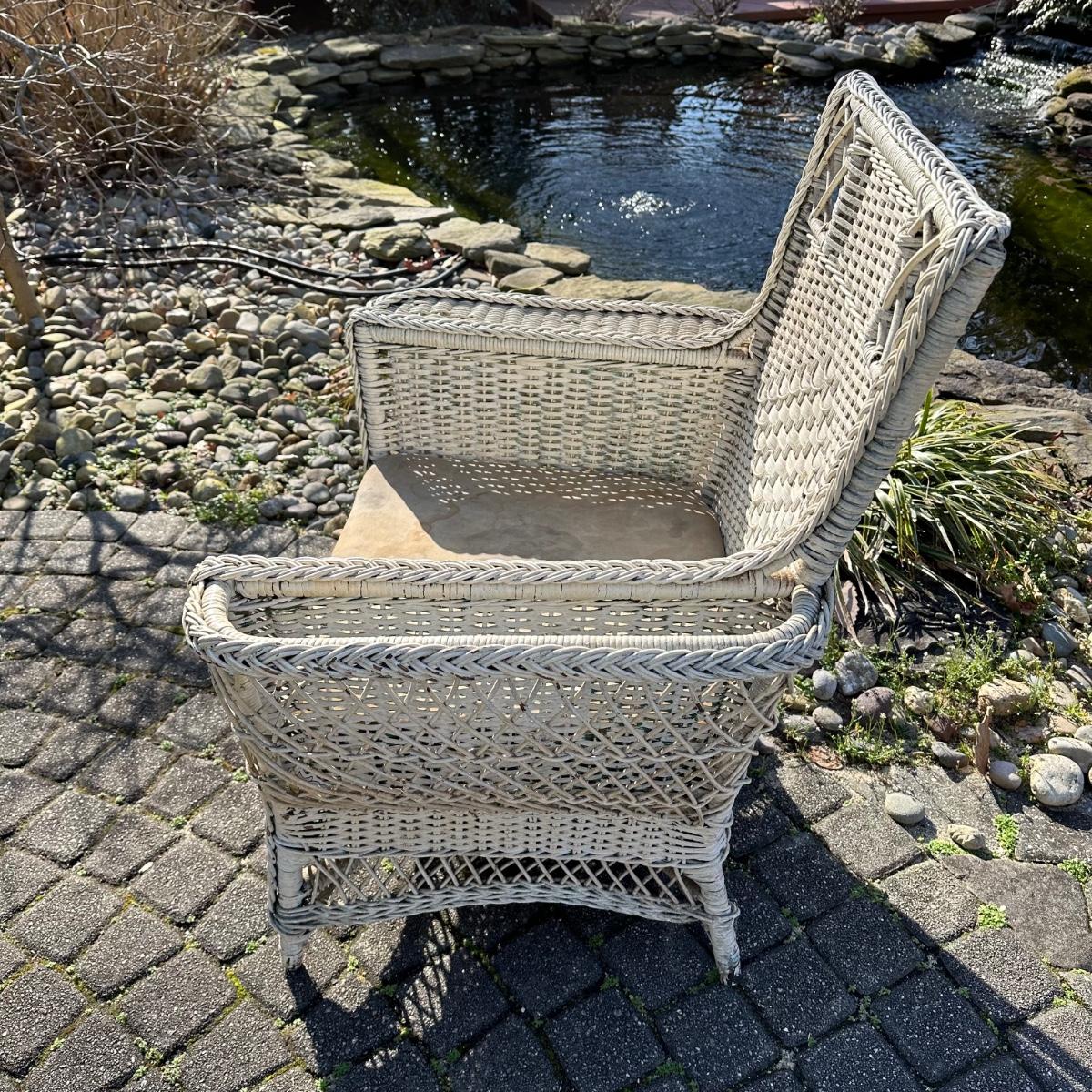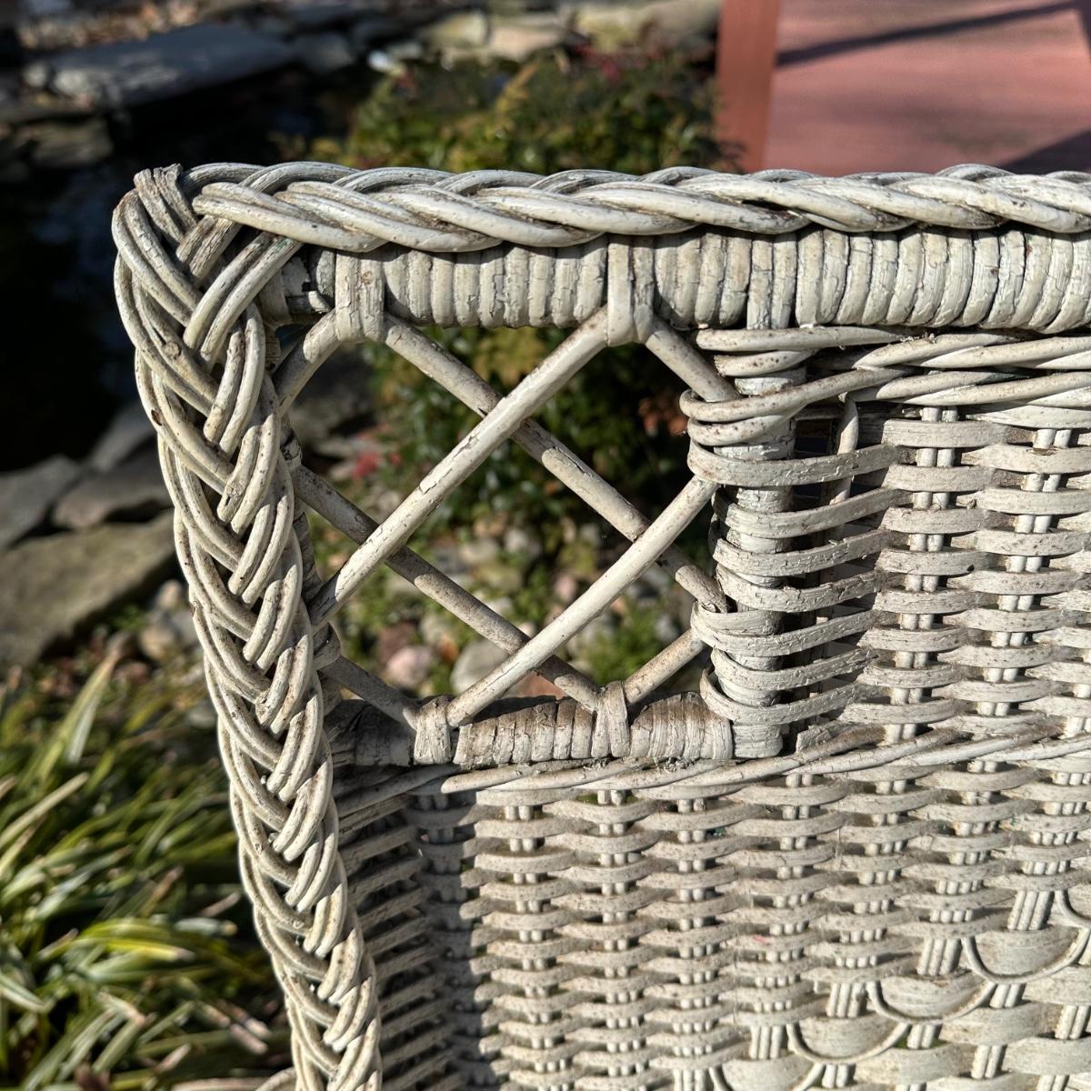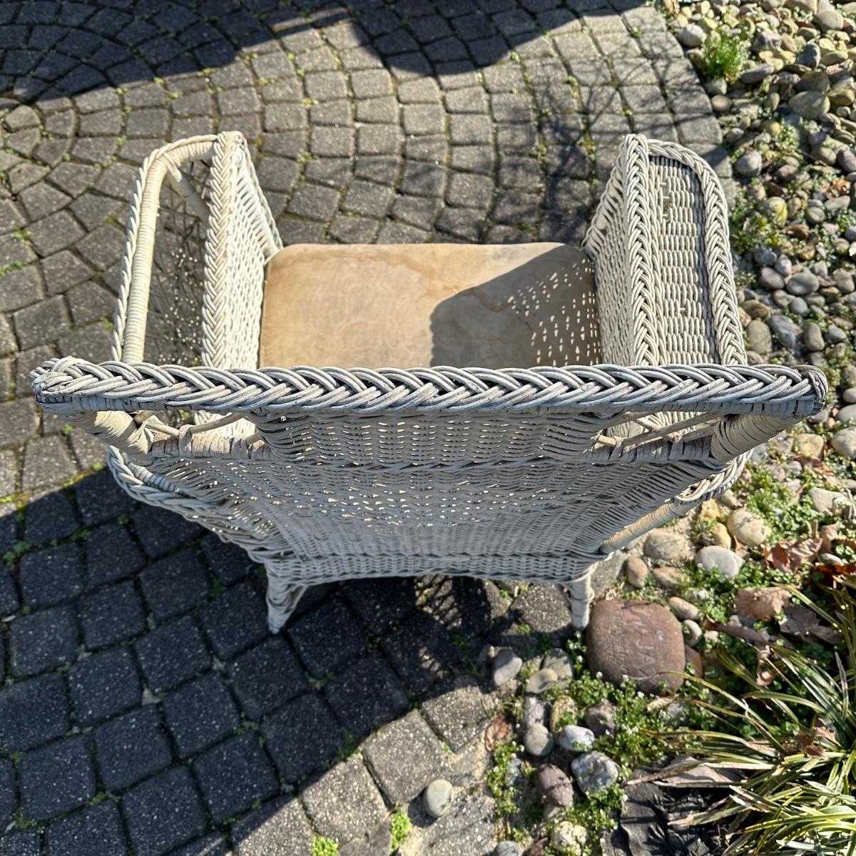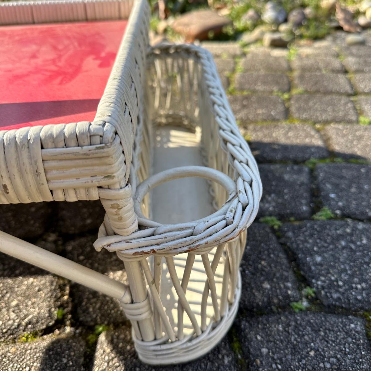 LOT 44L: Vintage White Wicker Bed Lap Tray w/ White Wicker Chair & End Table