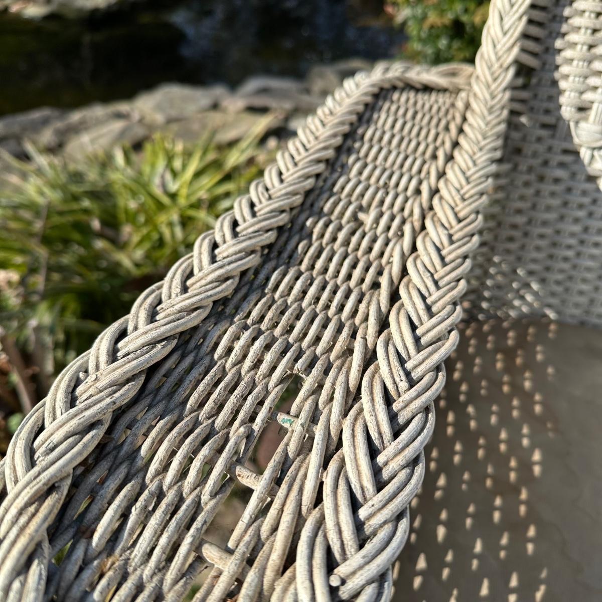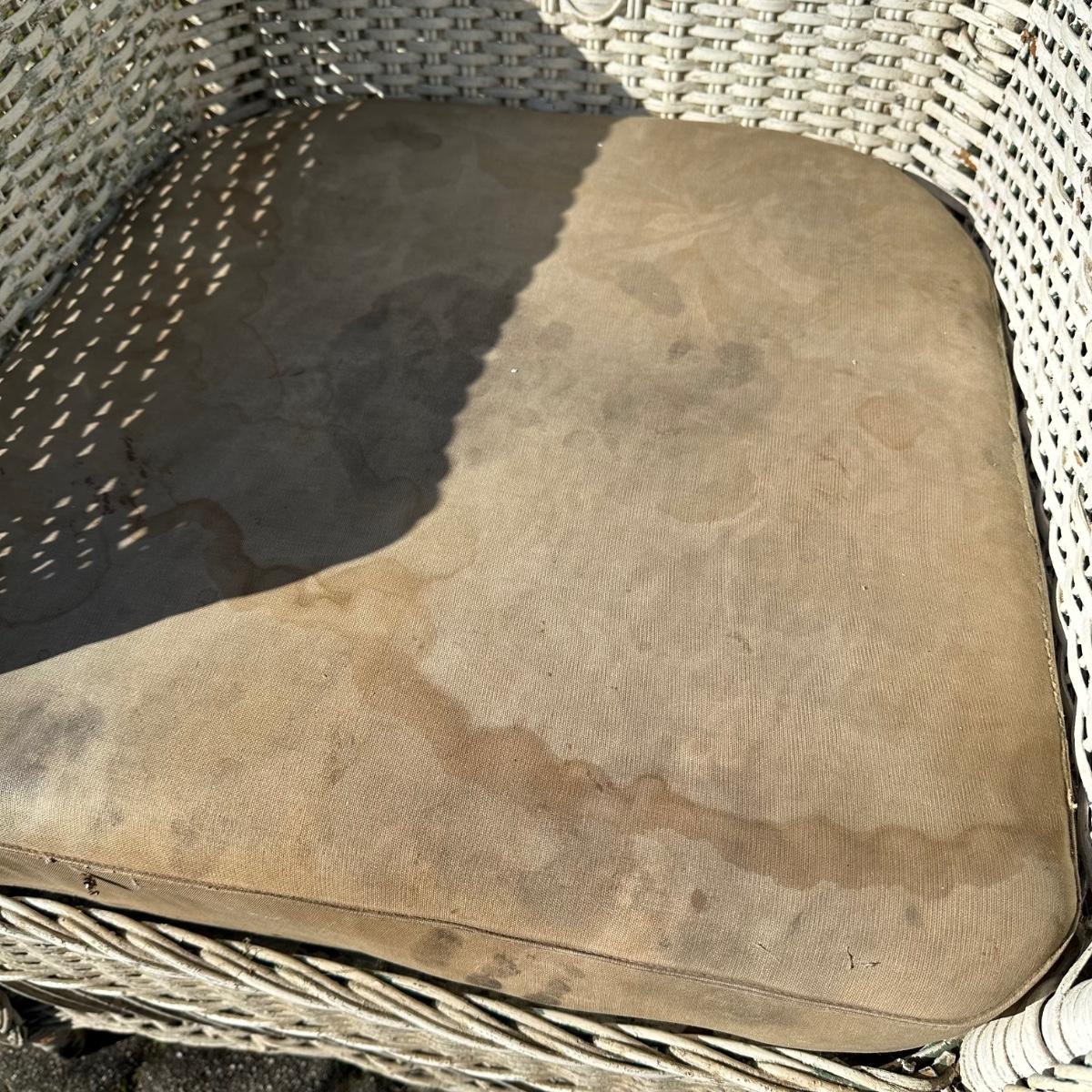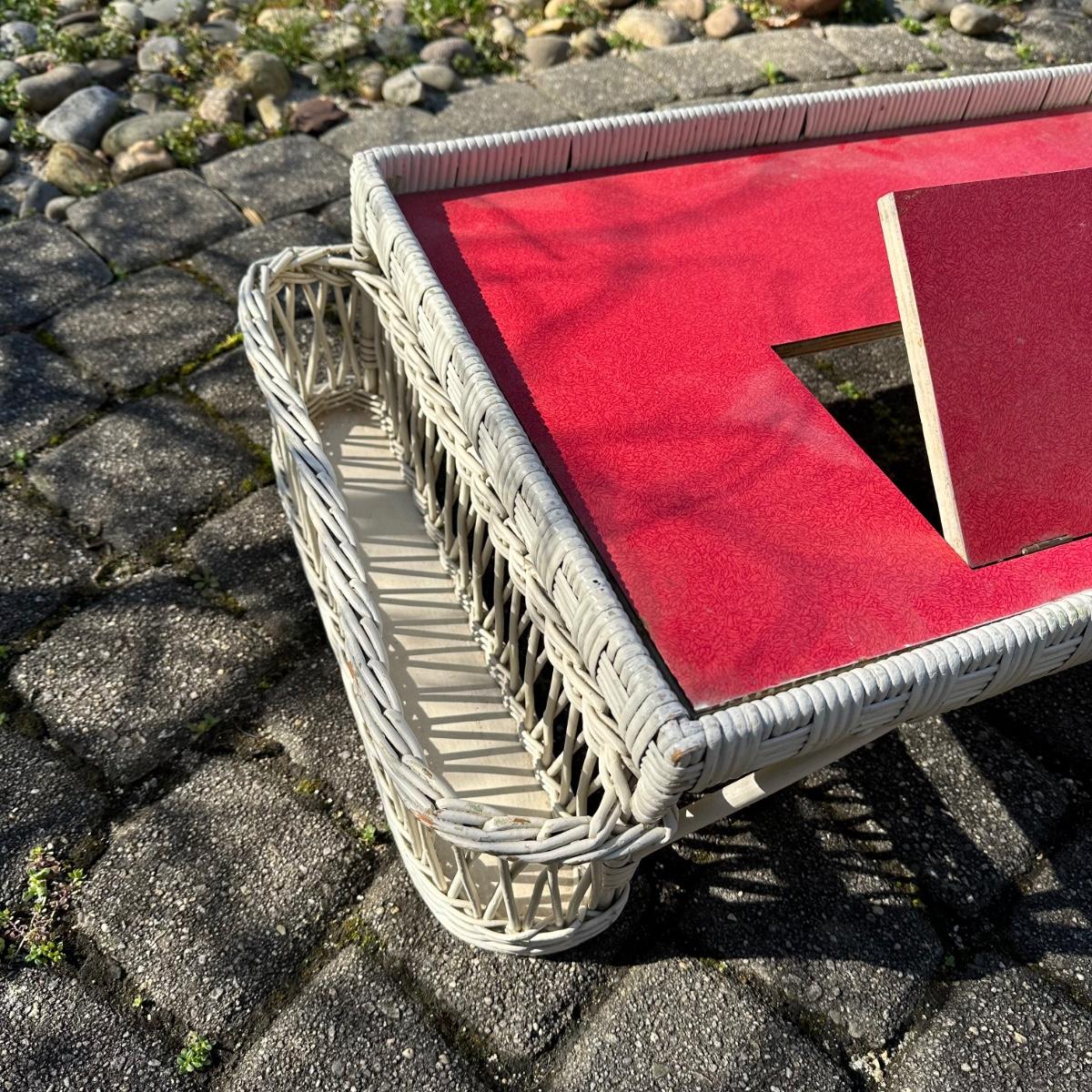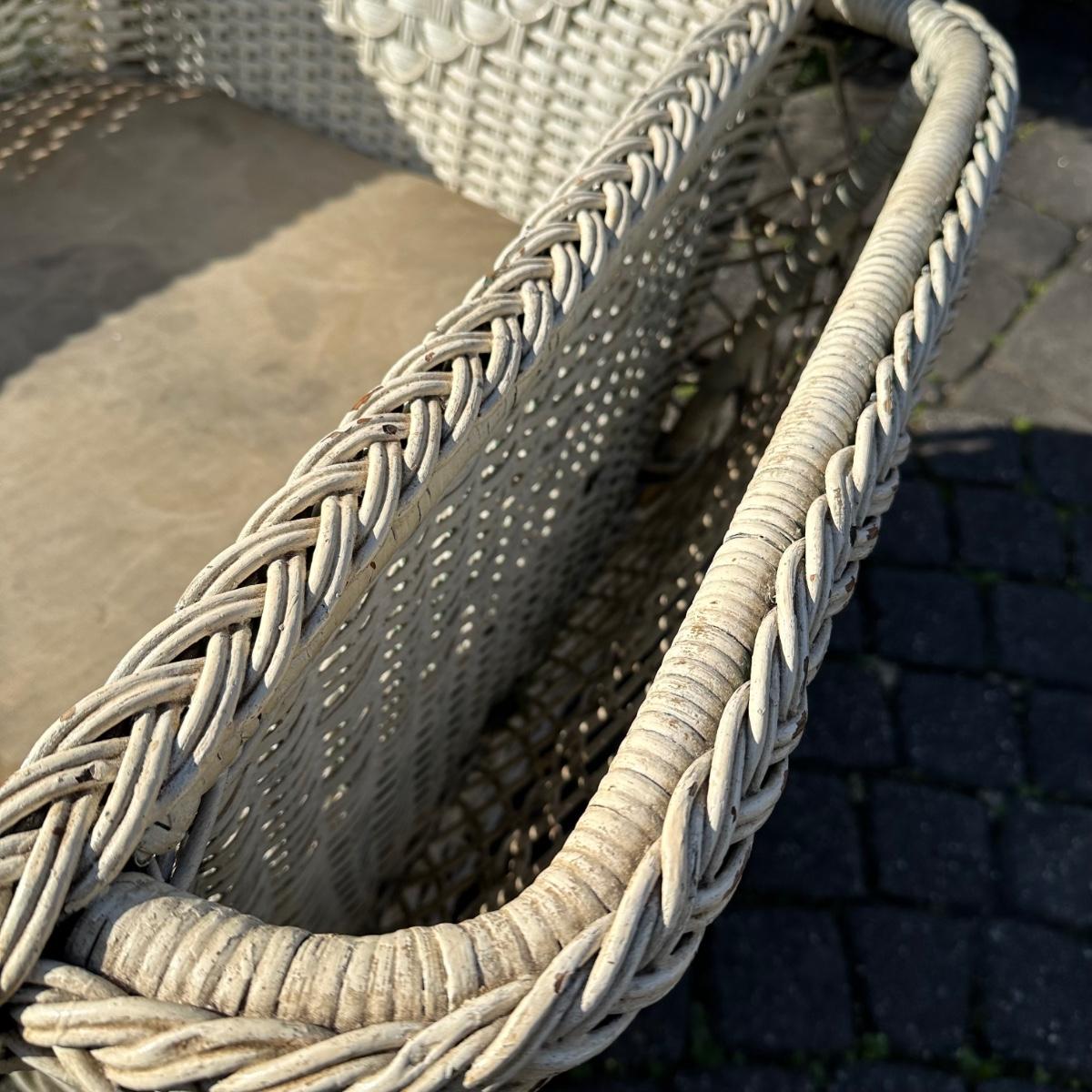 LOT 44L: Vintage White Wicker Bed Lap Tray w/ White Wicker Chair & End Table
