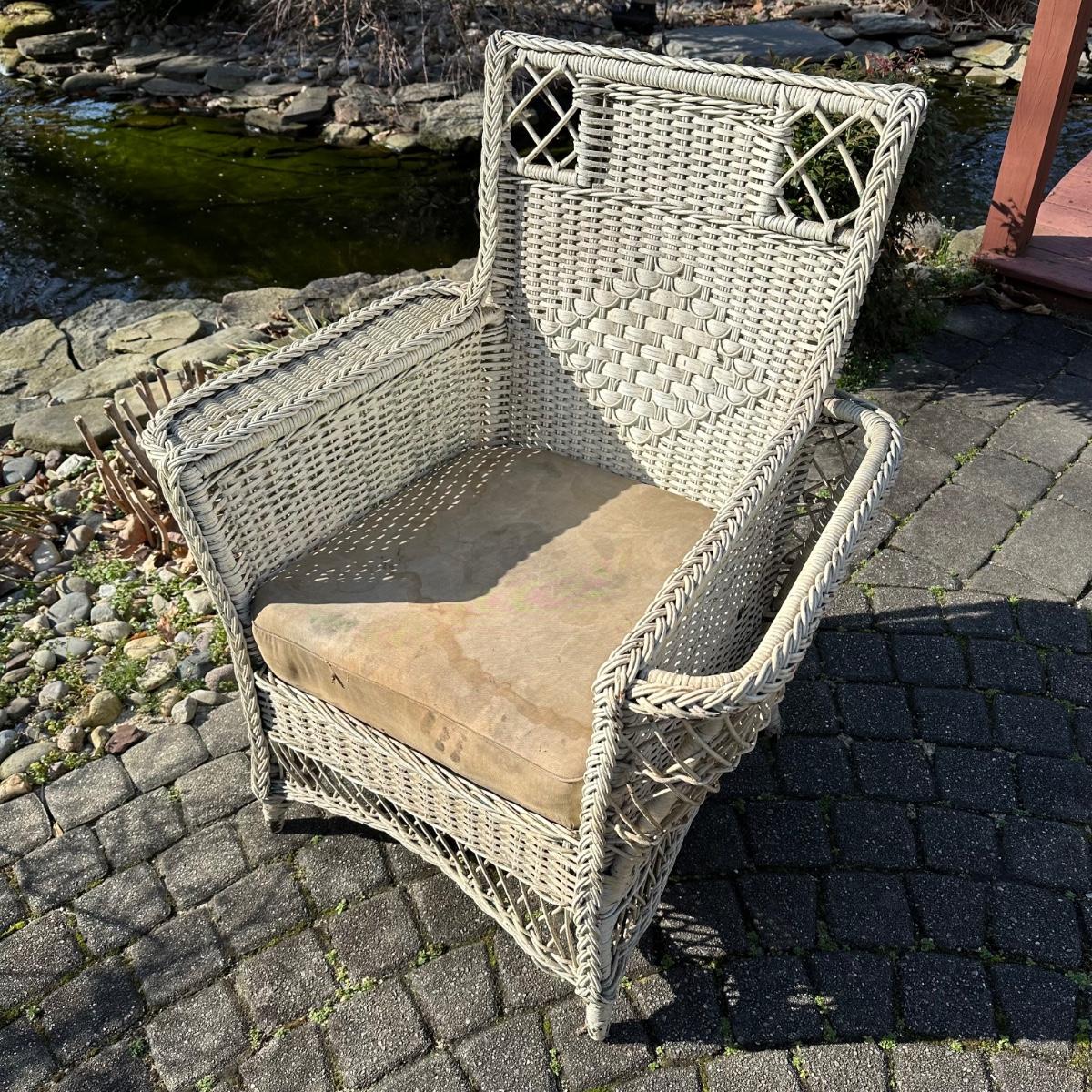 Chair is 31x22x37 - Please see all pictures as they are the best representation of the items. The pictures show condition, measurements if taken, and what is included in the lot. Due to the large amount that we photograph and the time frame, we are not always able to take measurements. All items unless noted, are pre-owned and have been used. If you purchased furniture, you must bring help. We do not allow one person to carry large furniture out on their own. Bring help, tools and a truck for the safety of our client’s homes, and your personal safety. Any damages that result to the property including walls, and floors due to moving of the furniture will be charged to the buyer. Company policy. Thank you.