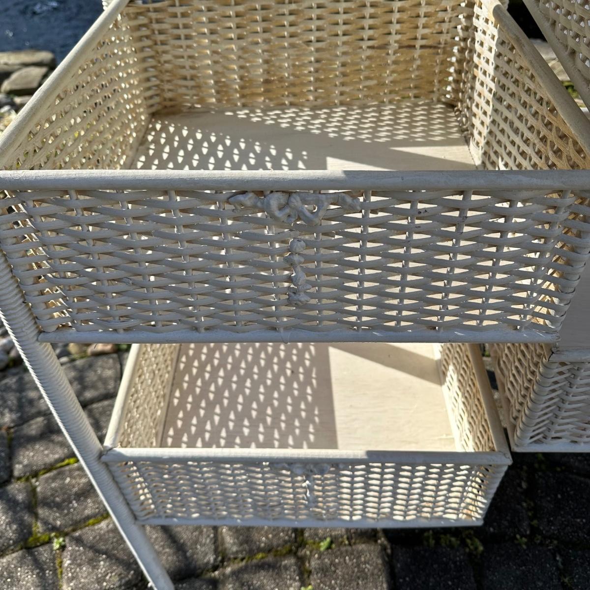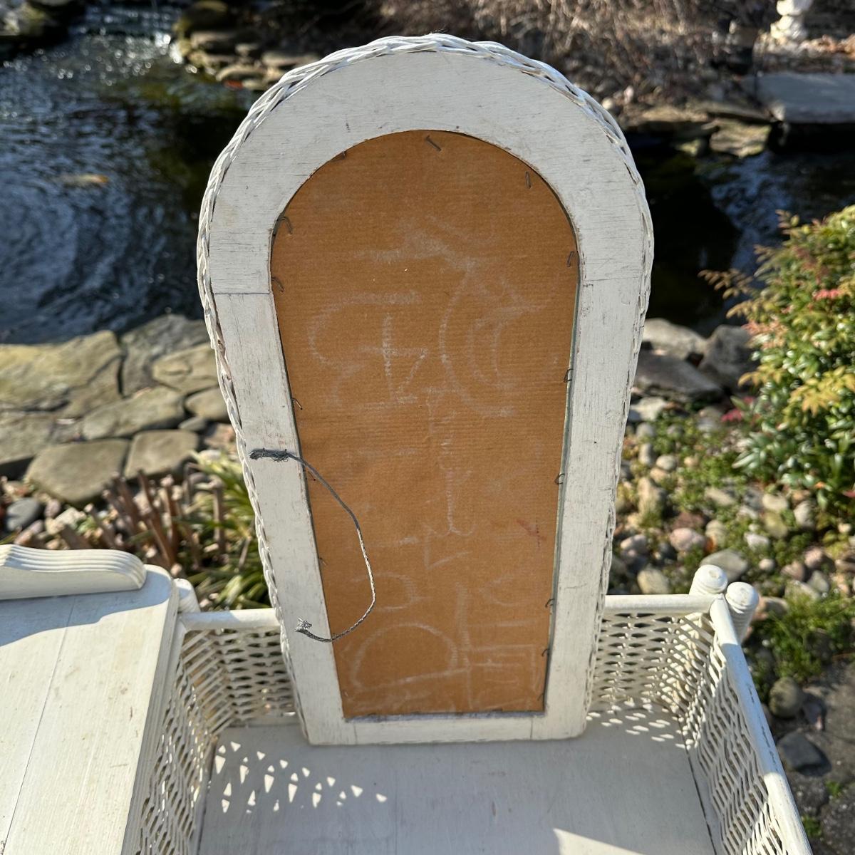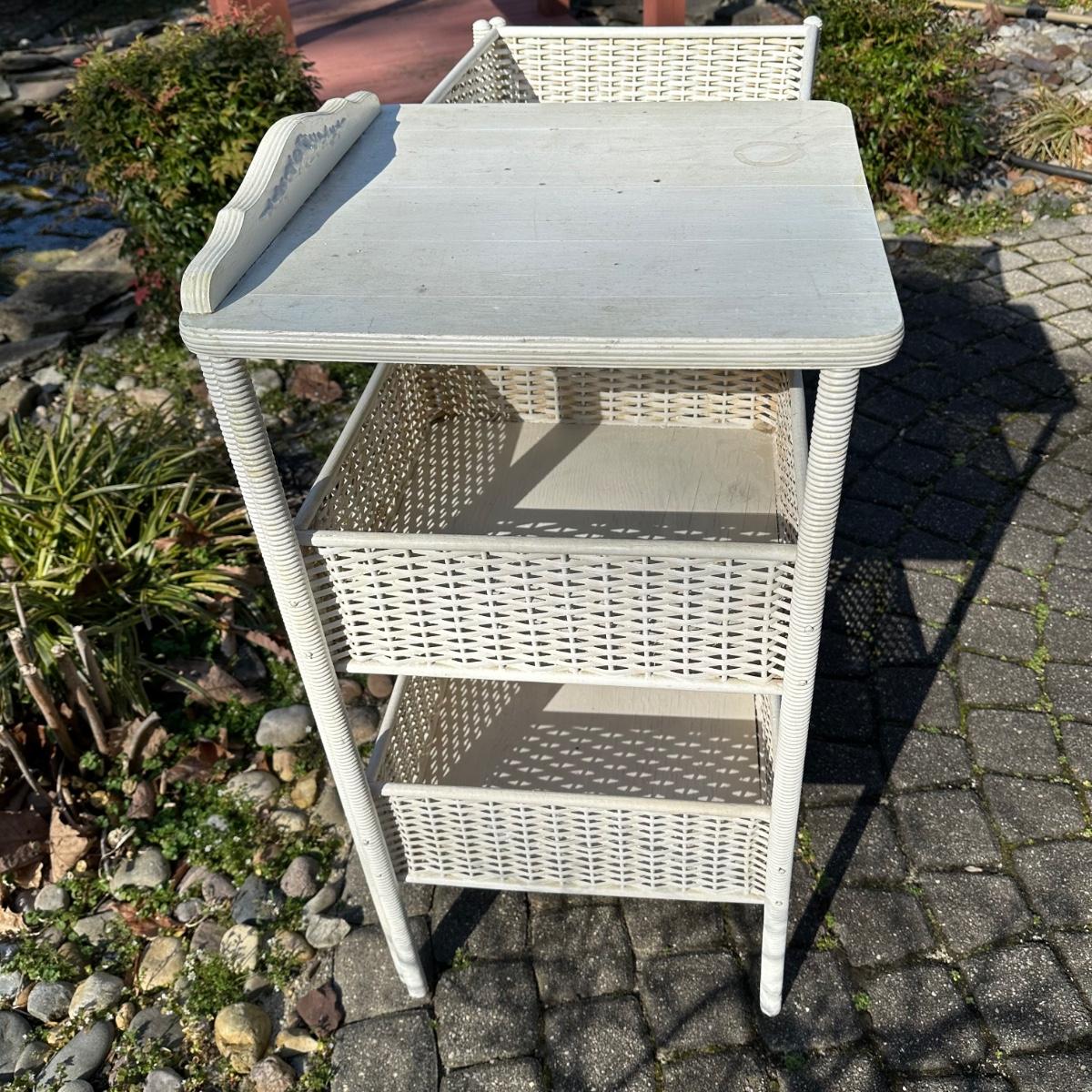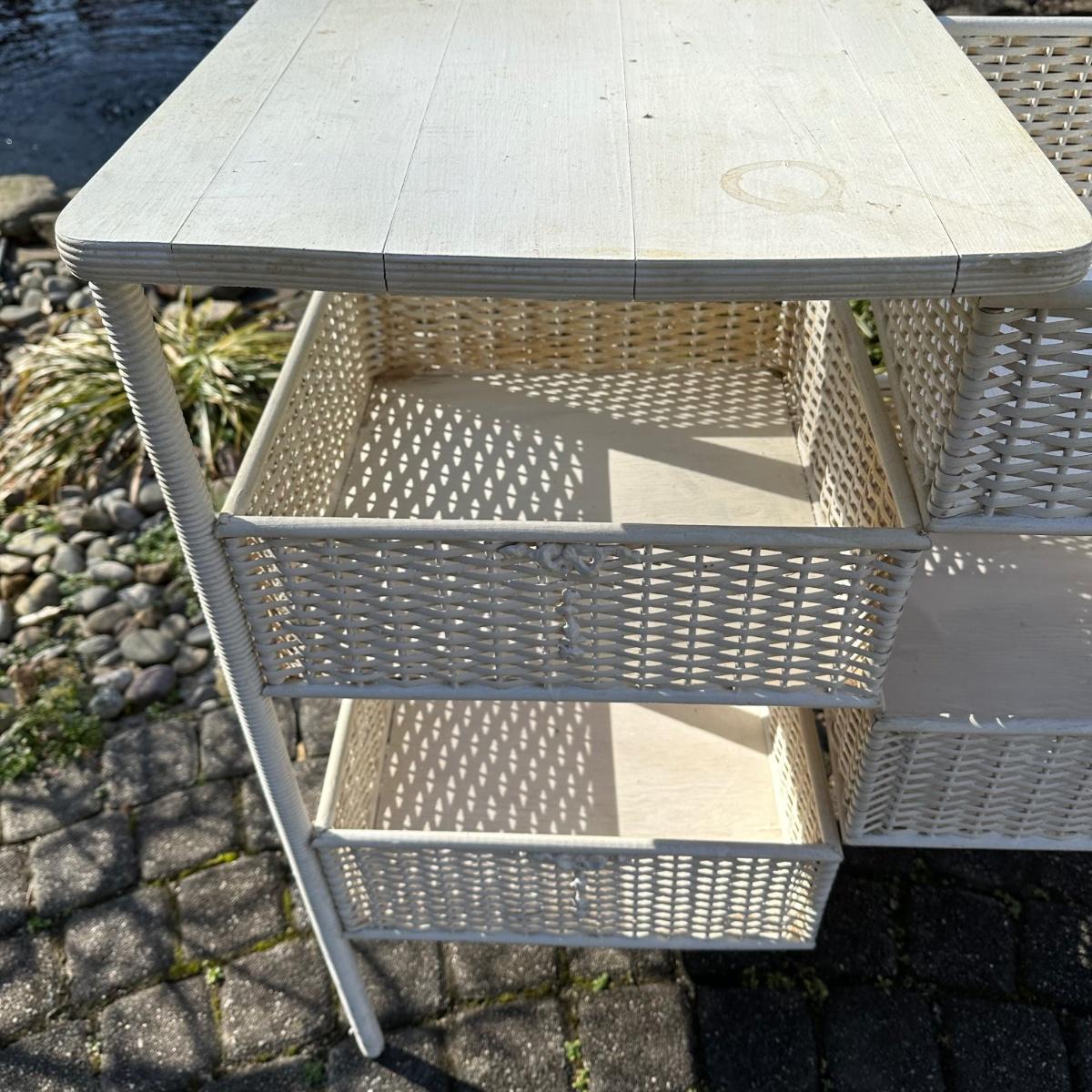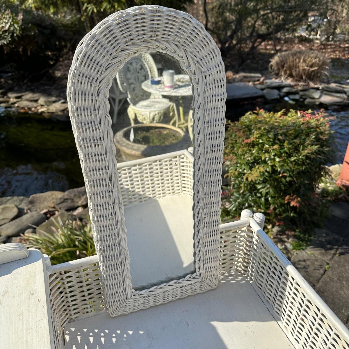 LOT 45L: Vintage White Wicker Folding Baby Storage Dresser w/ Mirror