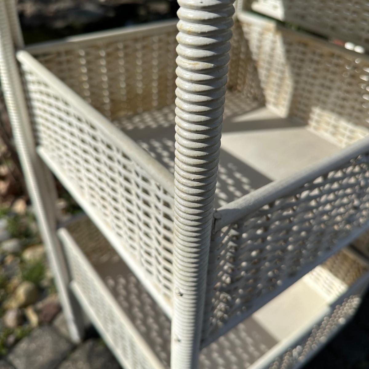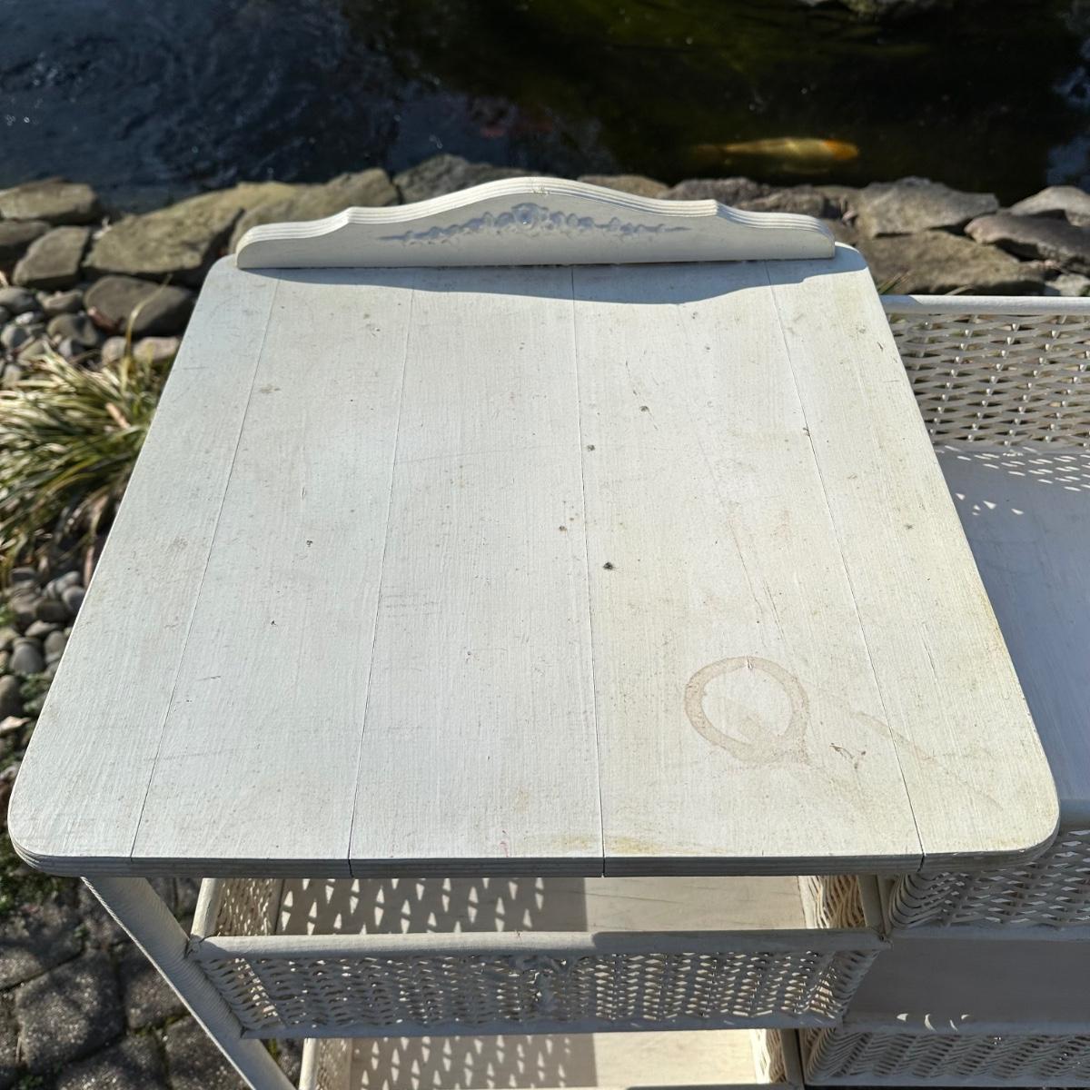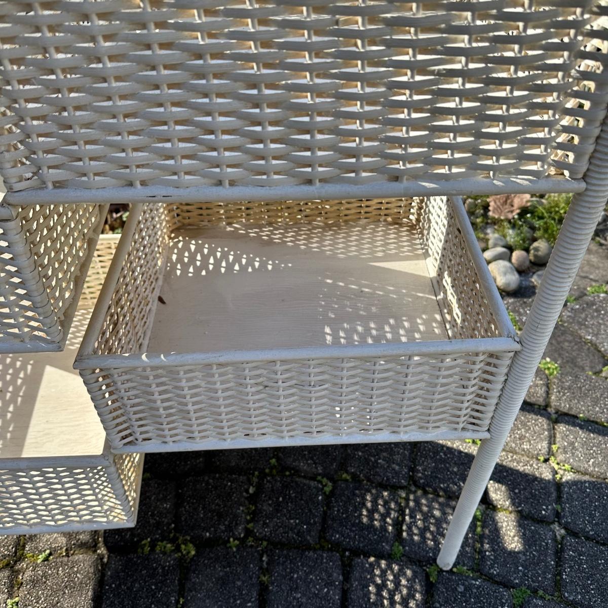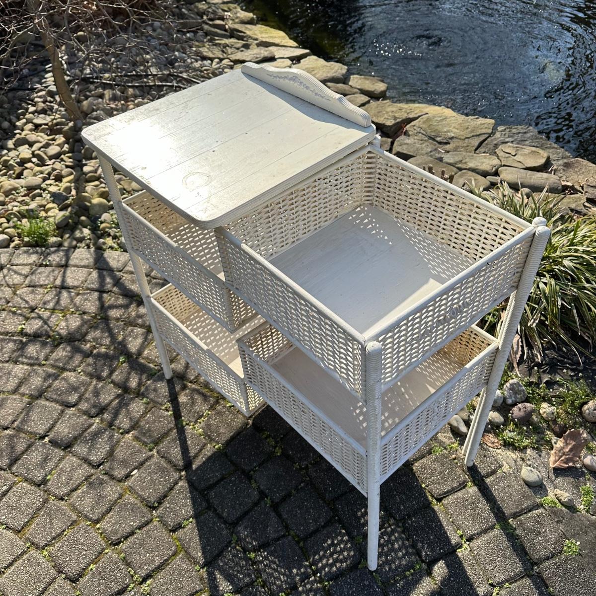 LOT 45L: Vintage White Wicker Folding Baby Storage Dresser w/ Mirror