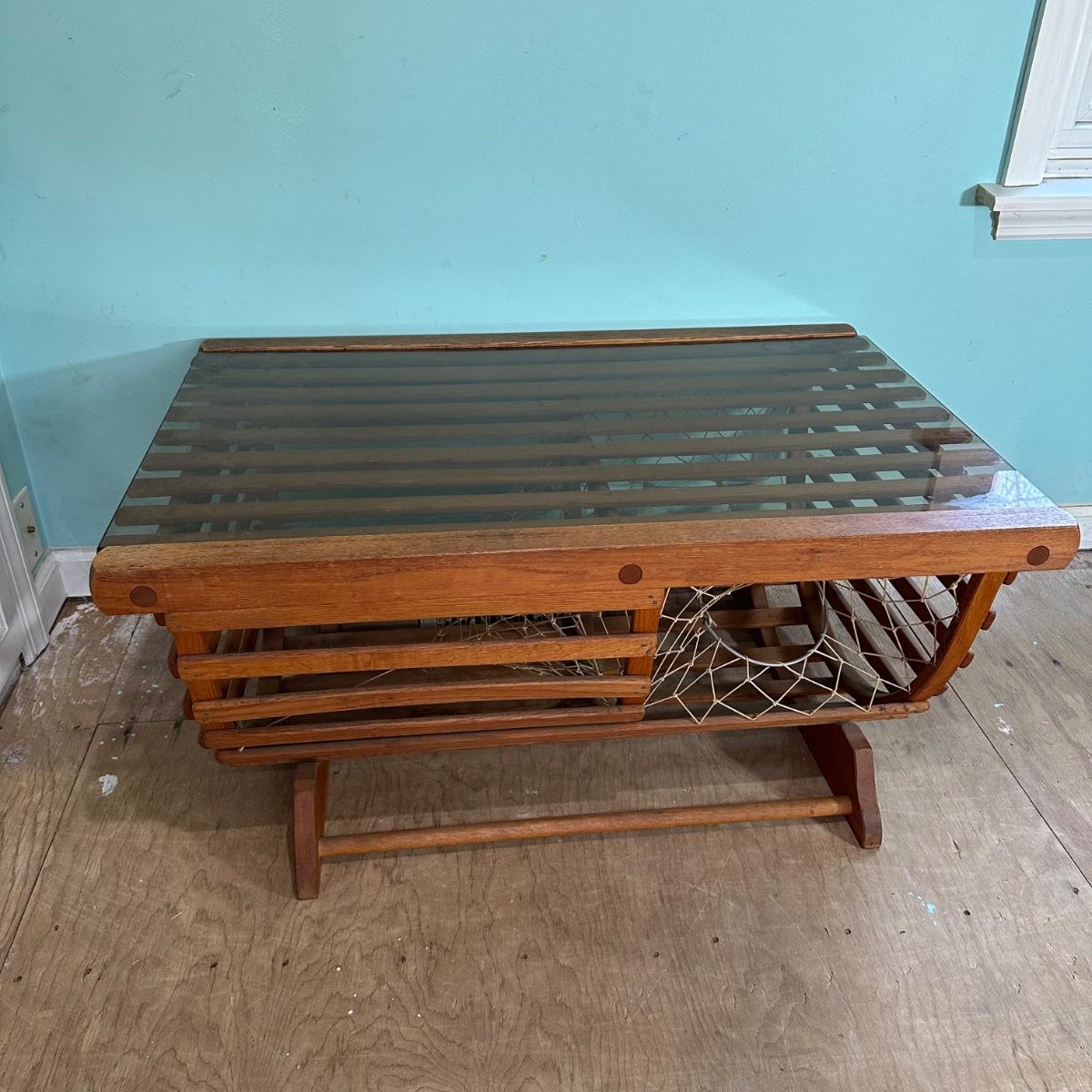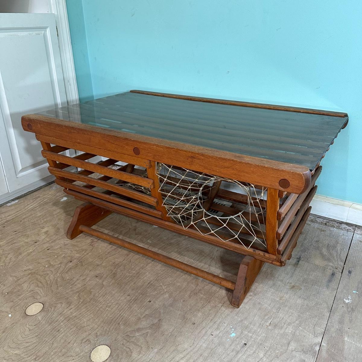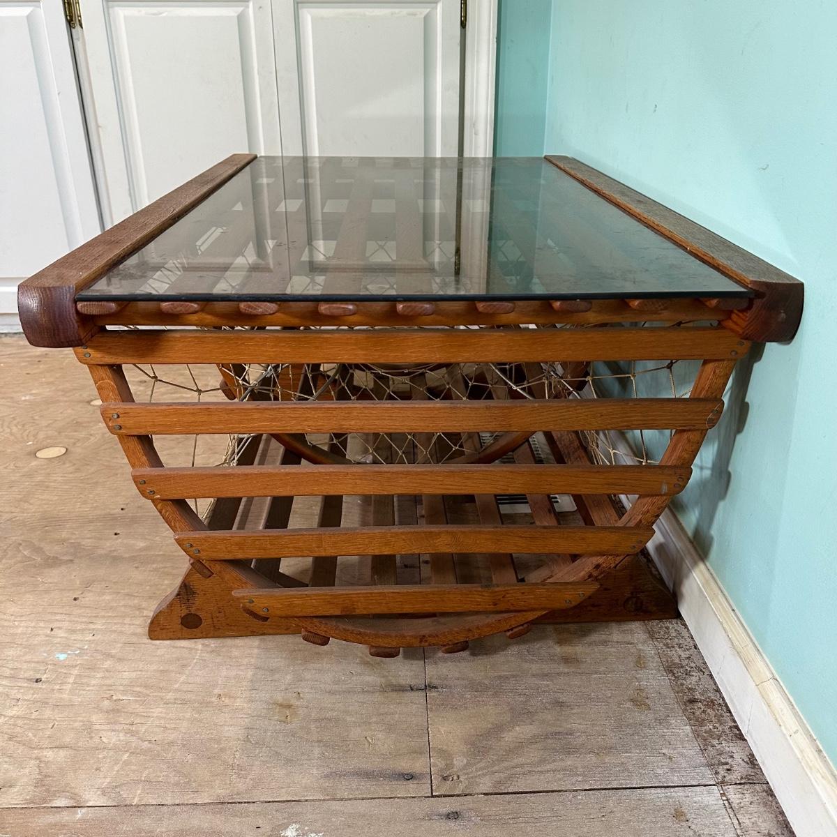 LOT 46L: Vintage Lobster Trap Glass Top Table