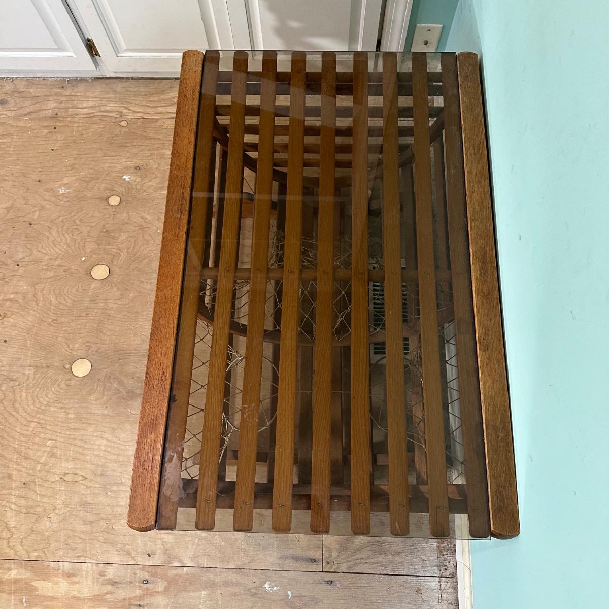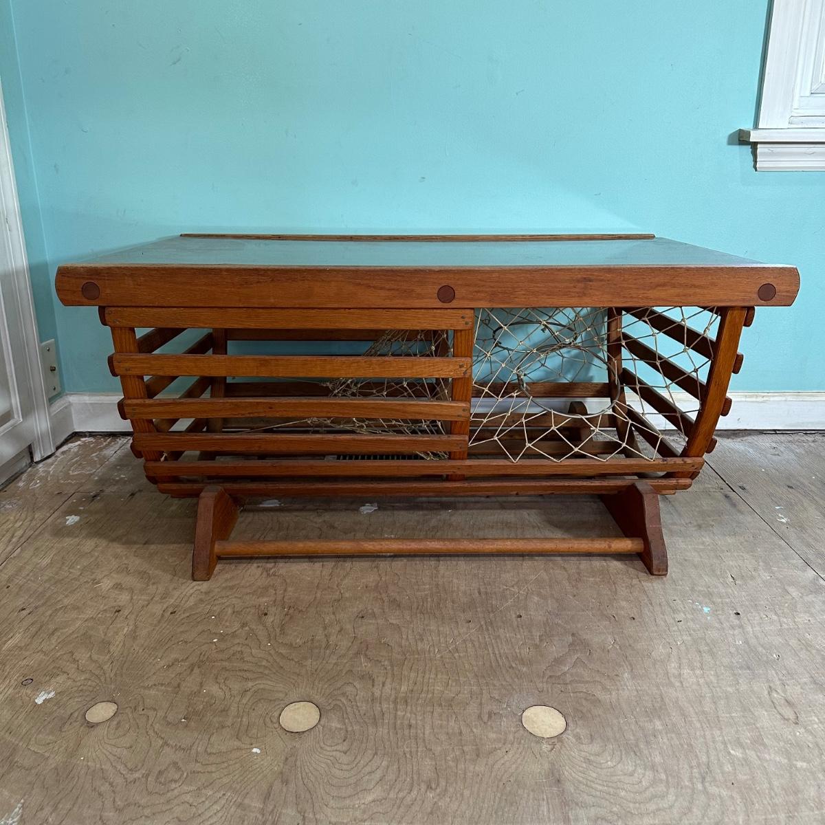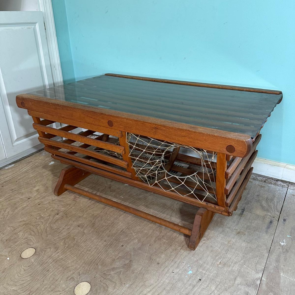 LOT 46L: Vintage Lobster Trap Glass Top Table