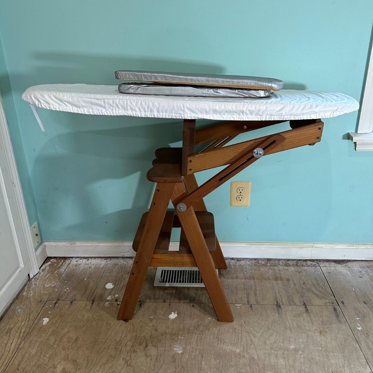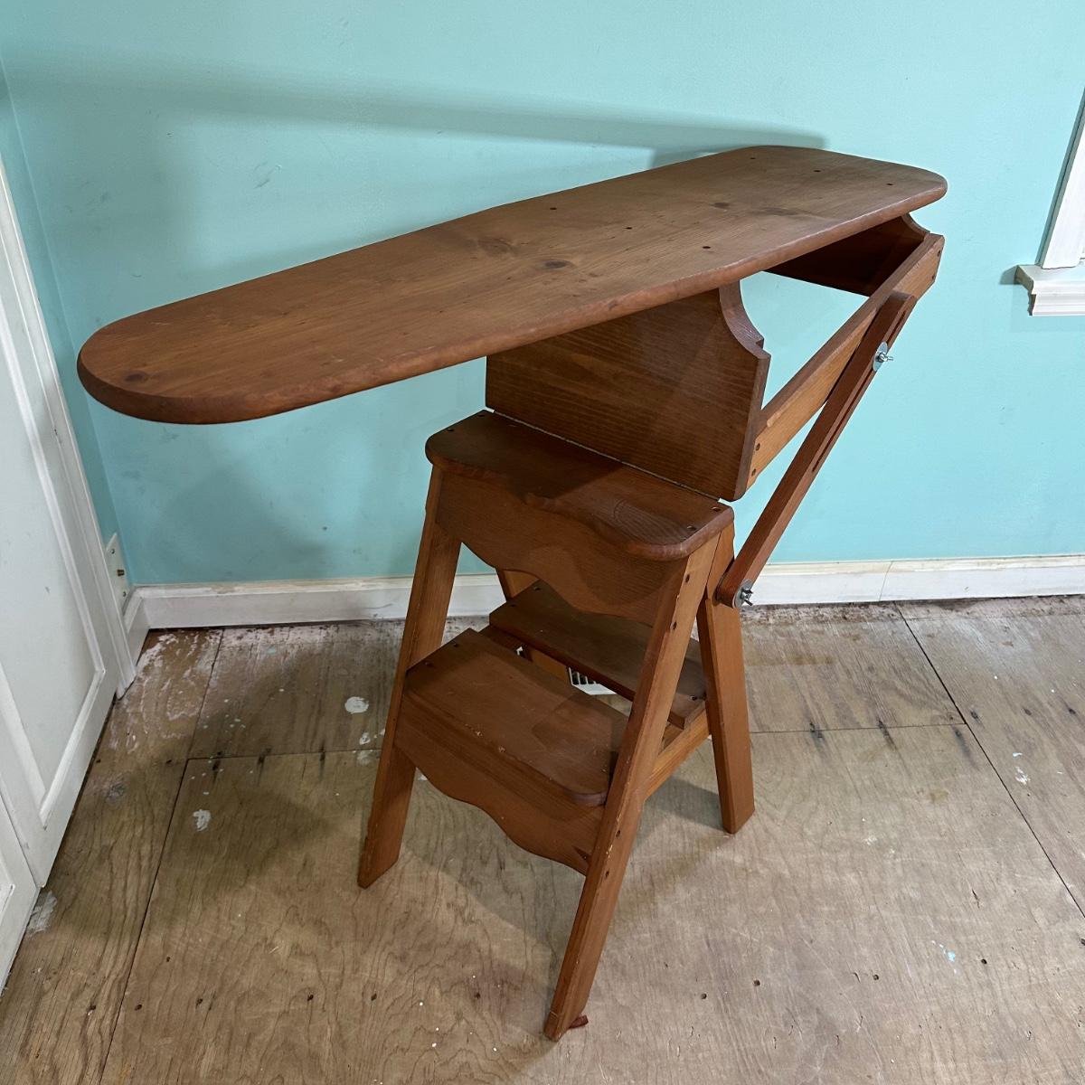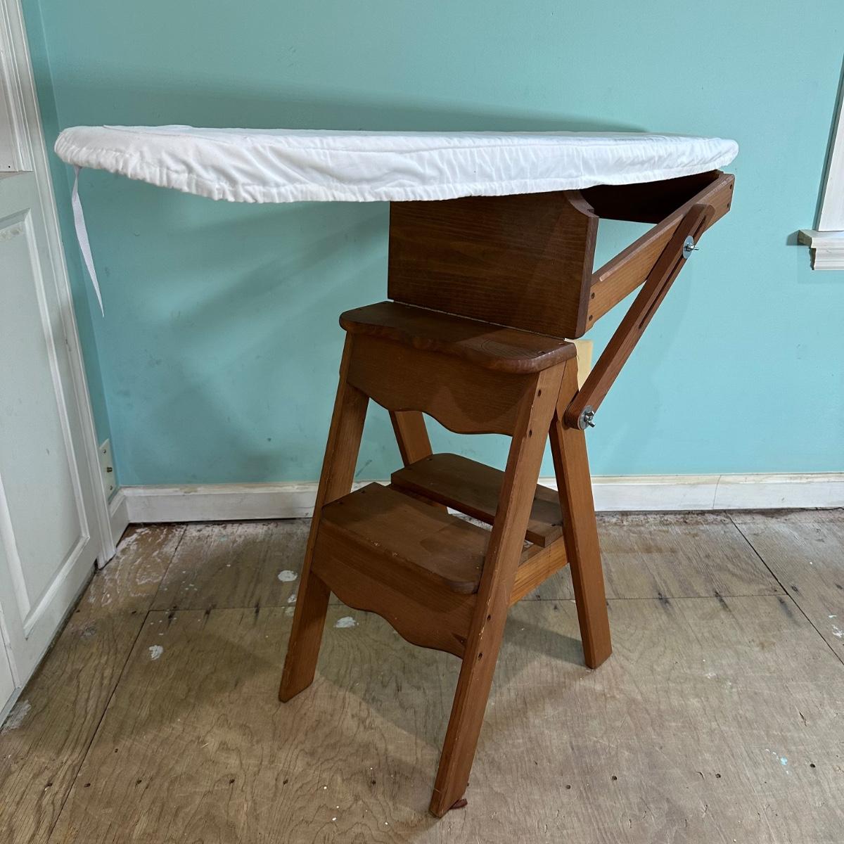 LOT 47L: Antique/Vintage 3 in 1 Ironing Board, Step Latter & Chair w/ Folding Sleeve Ironing Board