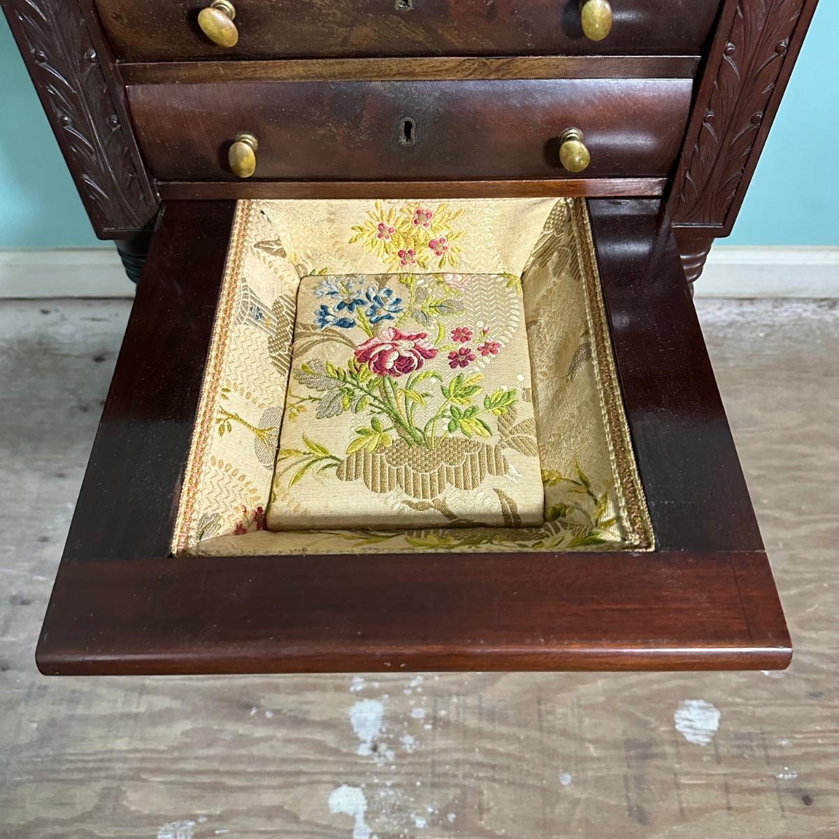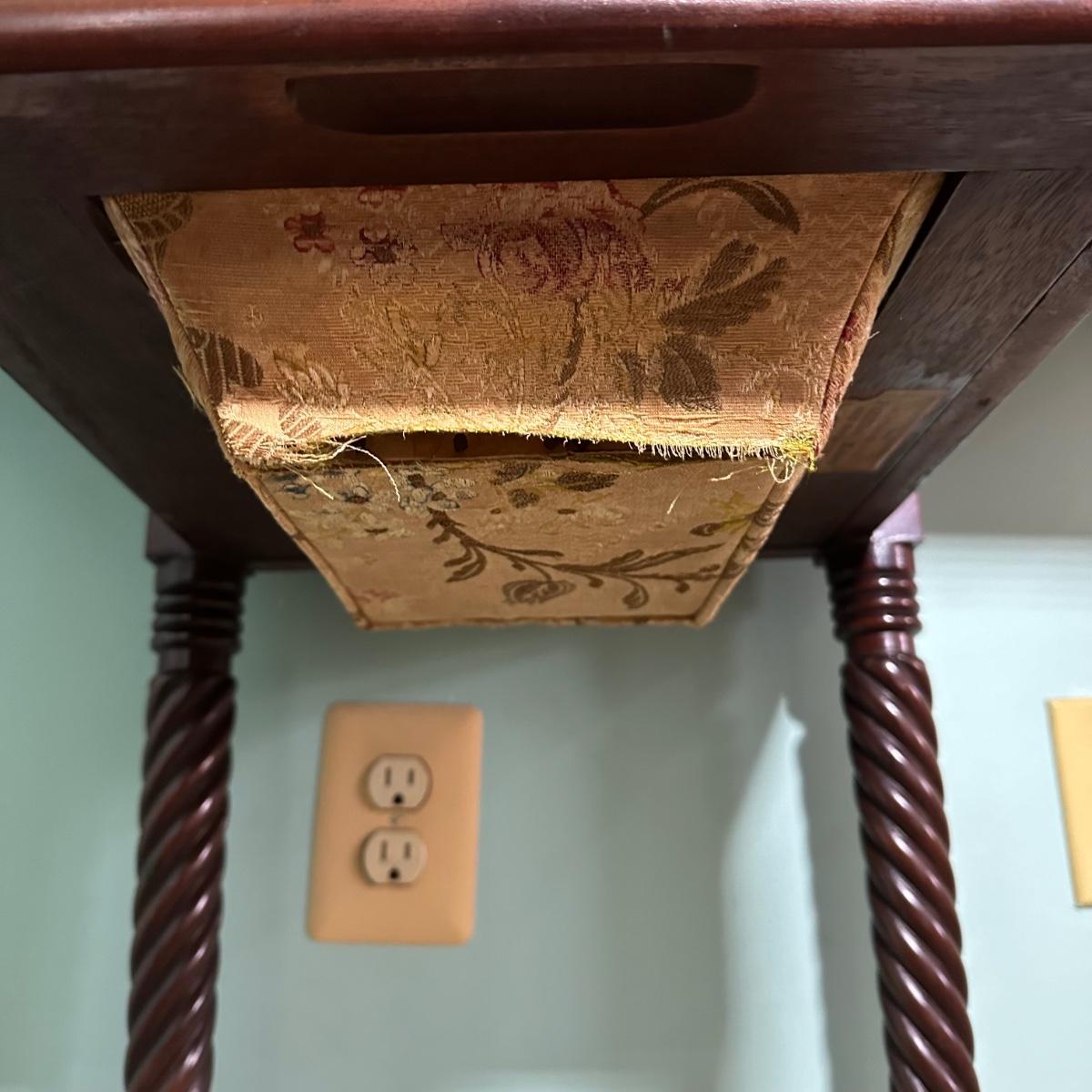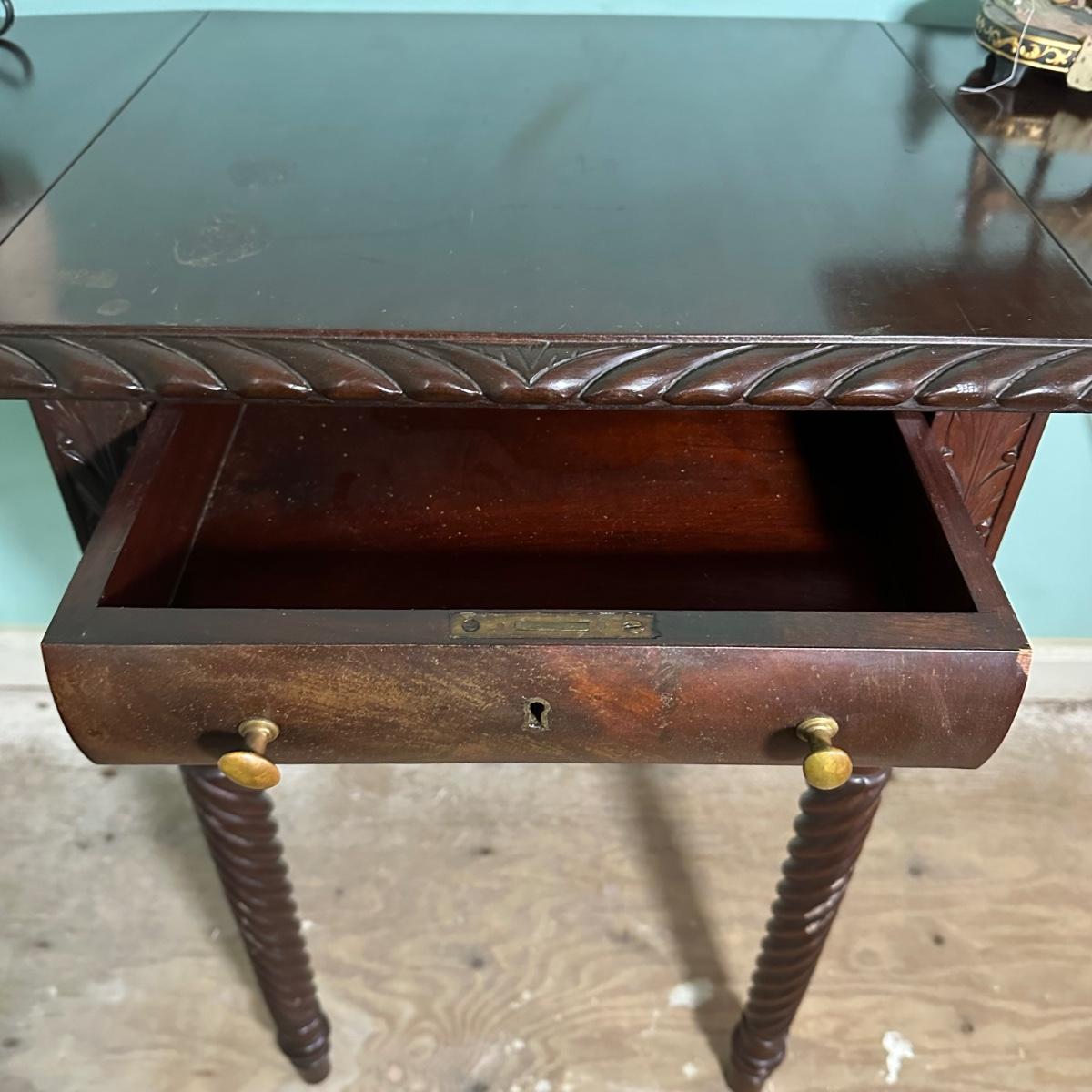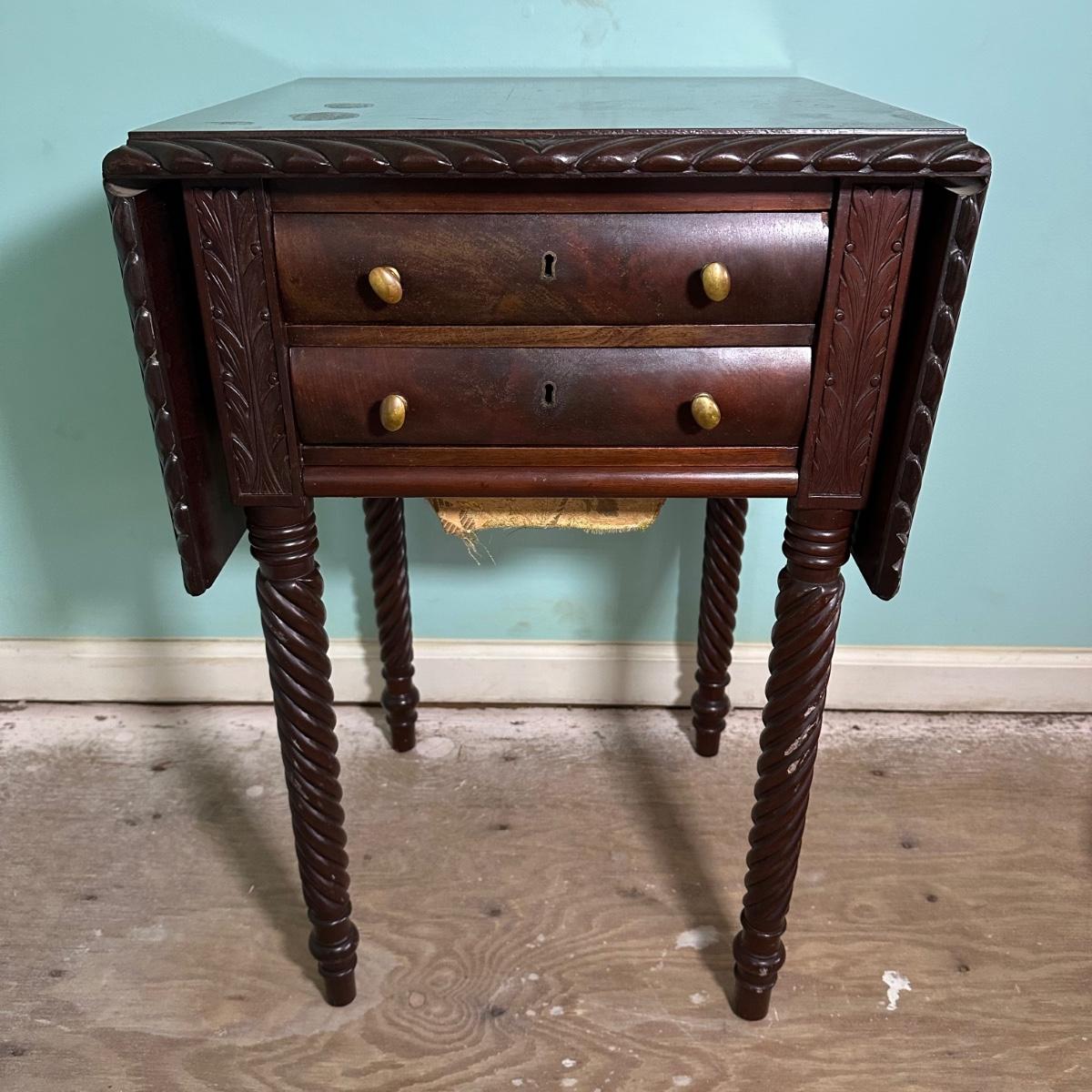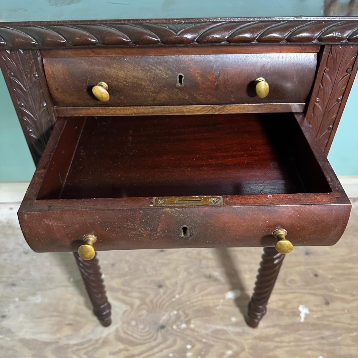 LOT 48L: Antique American Empire Mahogany Sewing Table w/ Sewing Machine Desk Lamp & Table Top Dress Mannequin