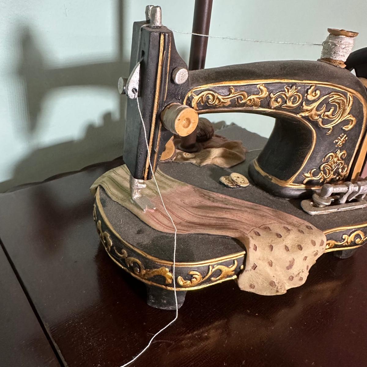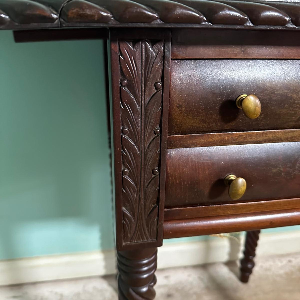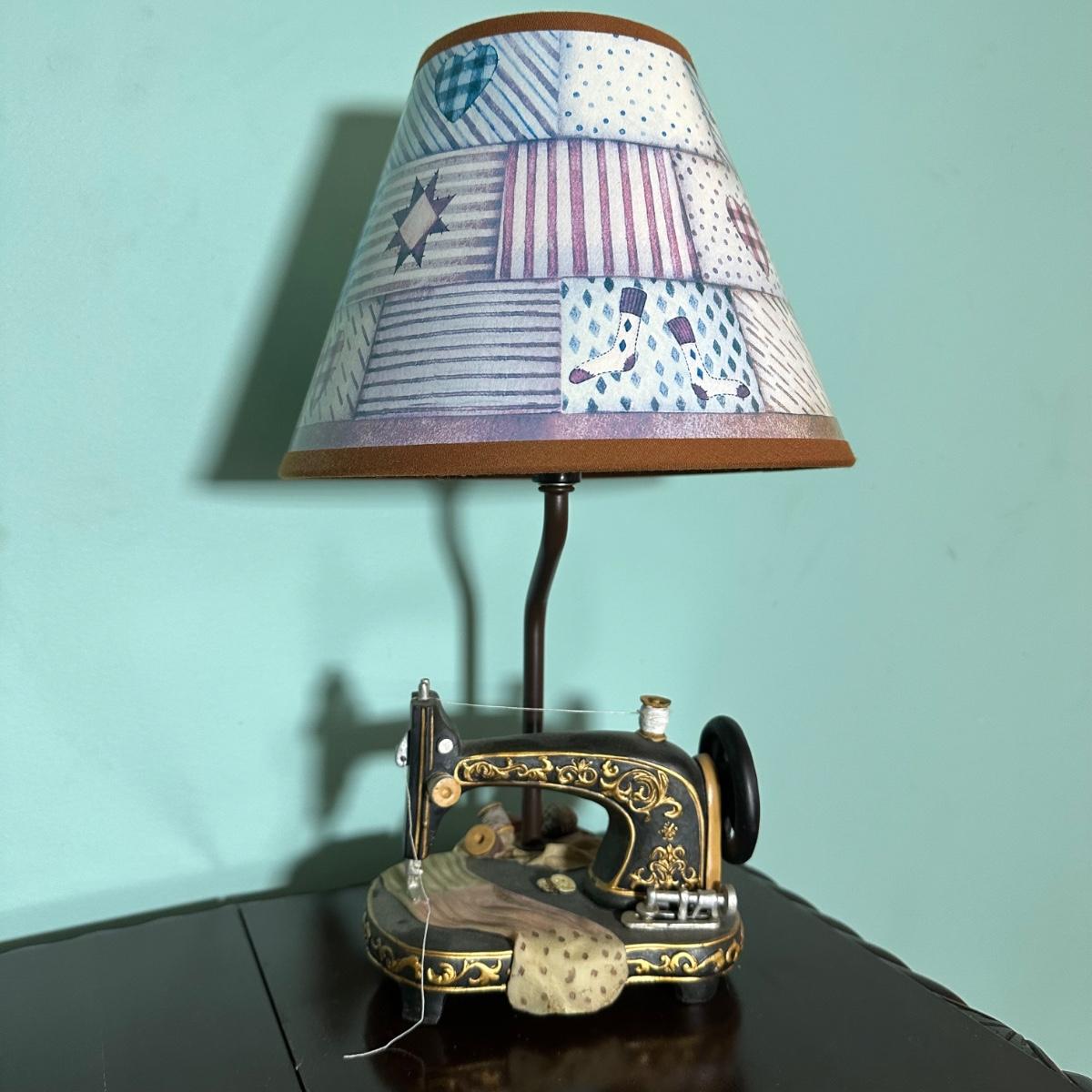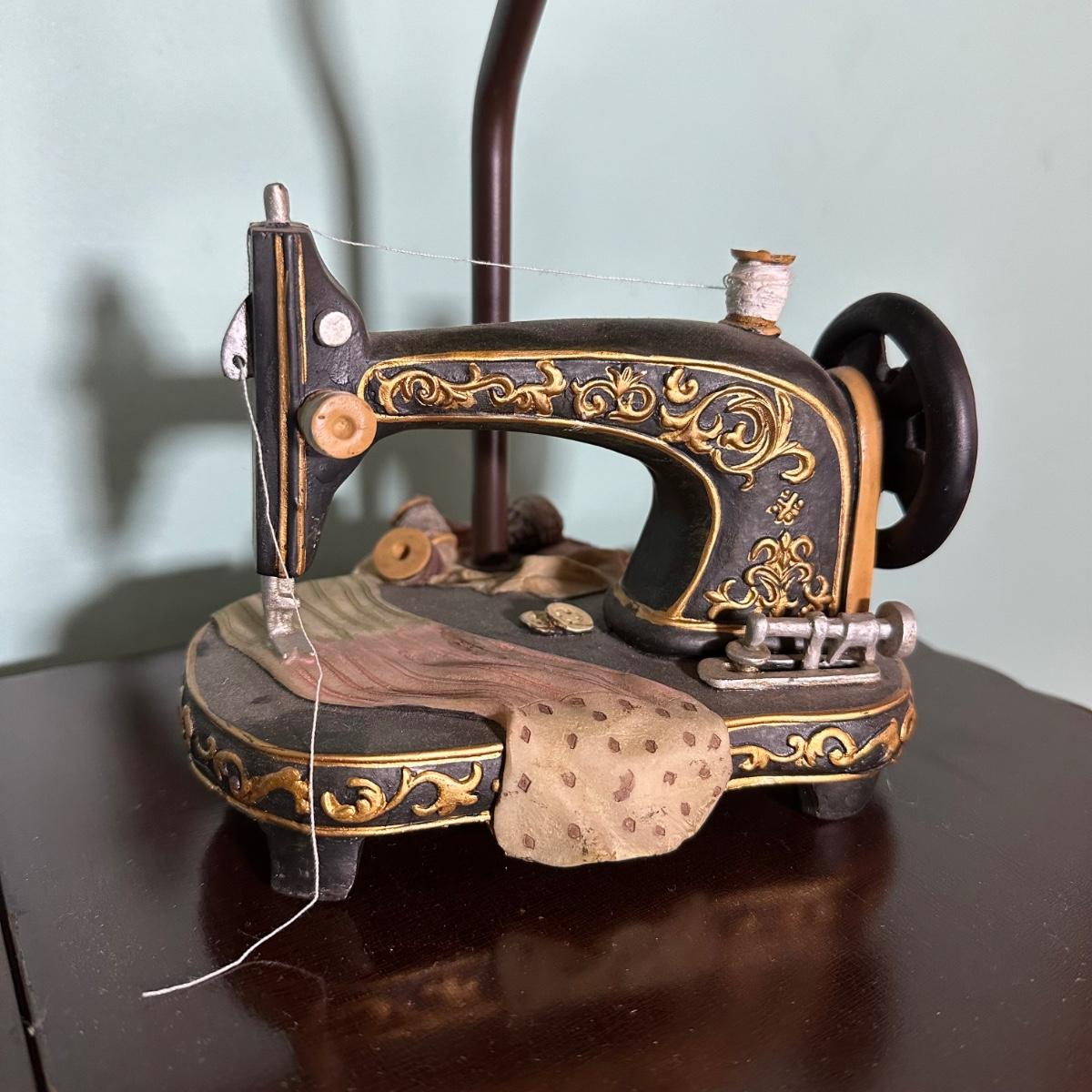 LOT 48L: Antique American Empire Mahogany Sewing Table w/ Sewing Machine Desk Lamp & Table Top Dress Mannequin