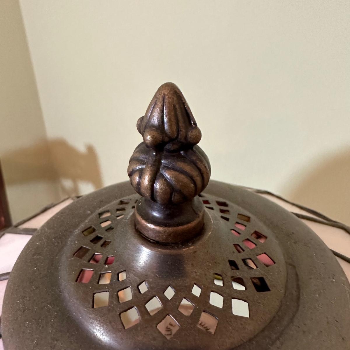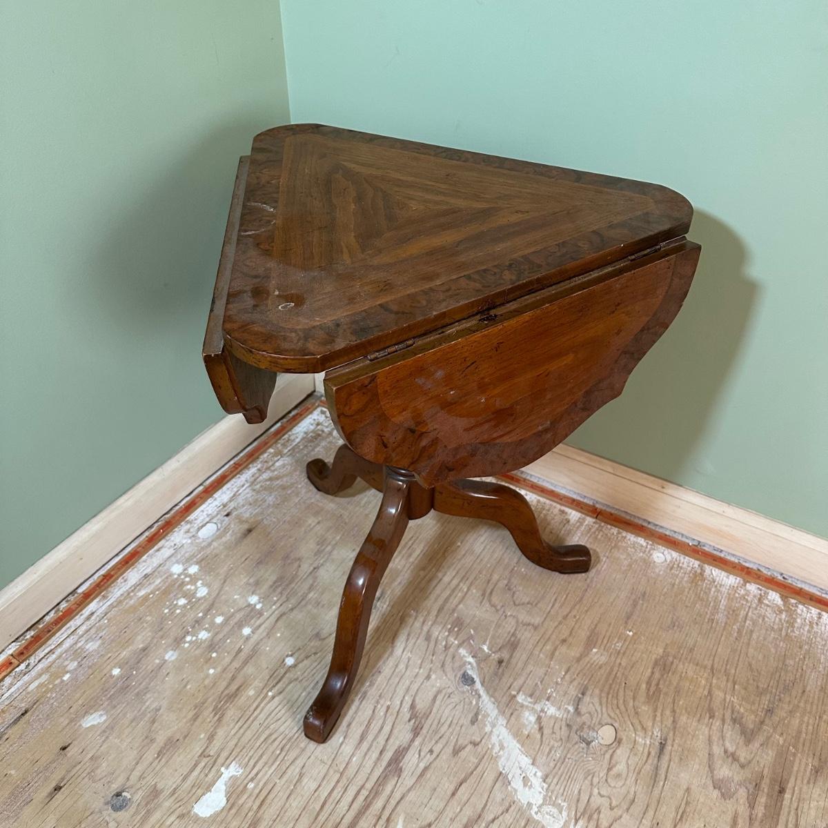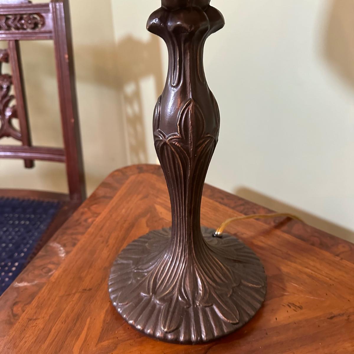LOT 54D: Vintage Tiffany Style Stained Glass Floral Lamp w/ Antique Chair & Triangle Drop Leaf Table