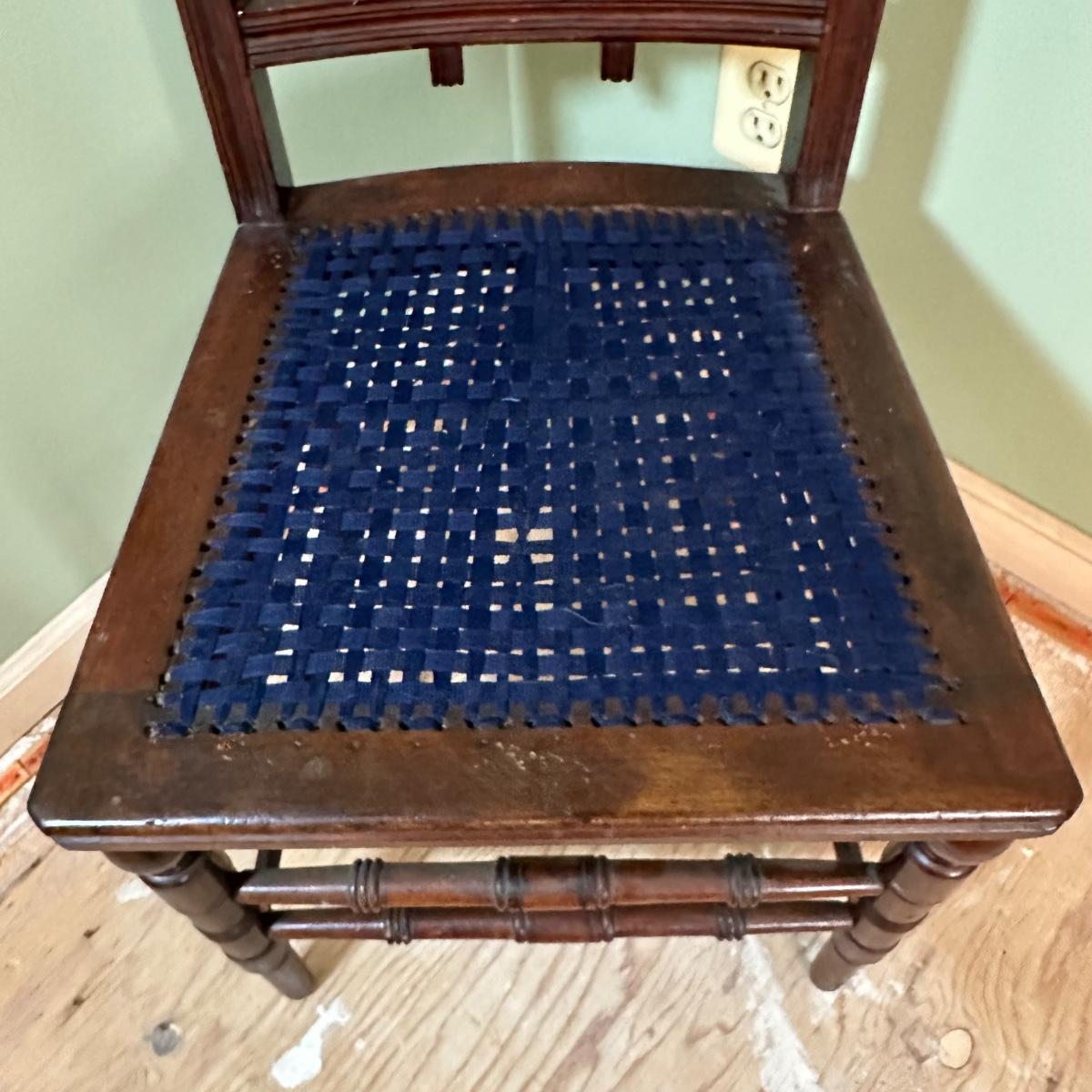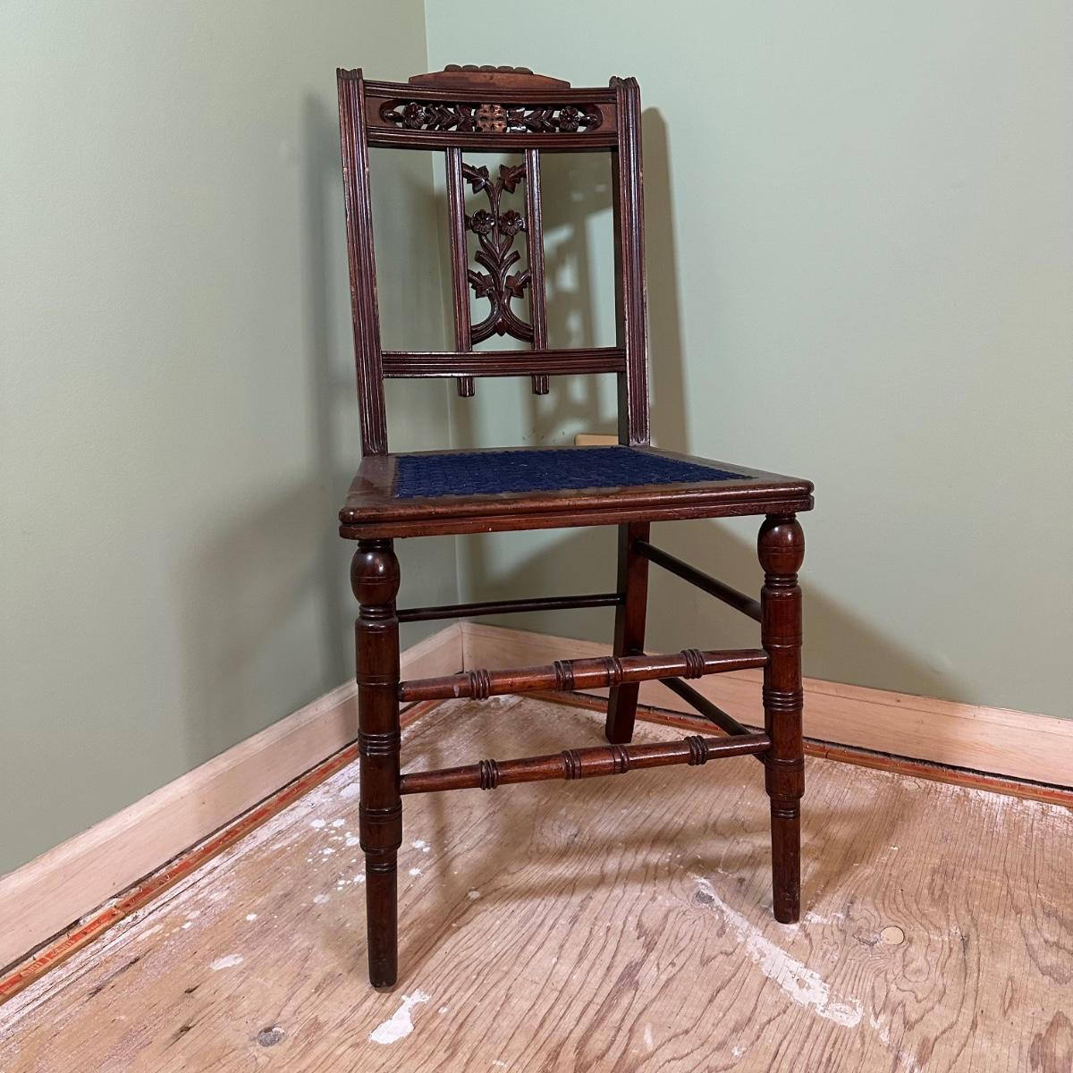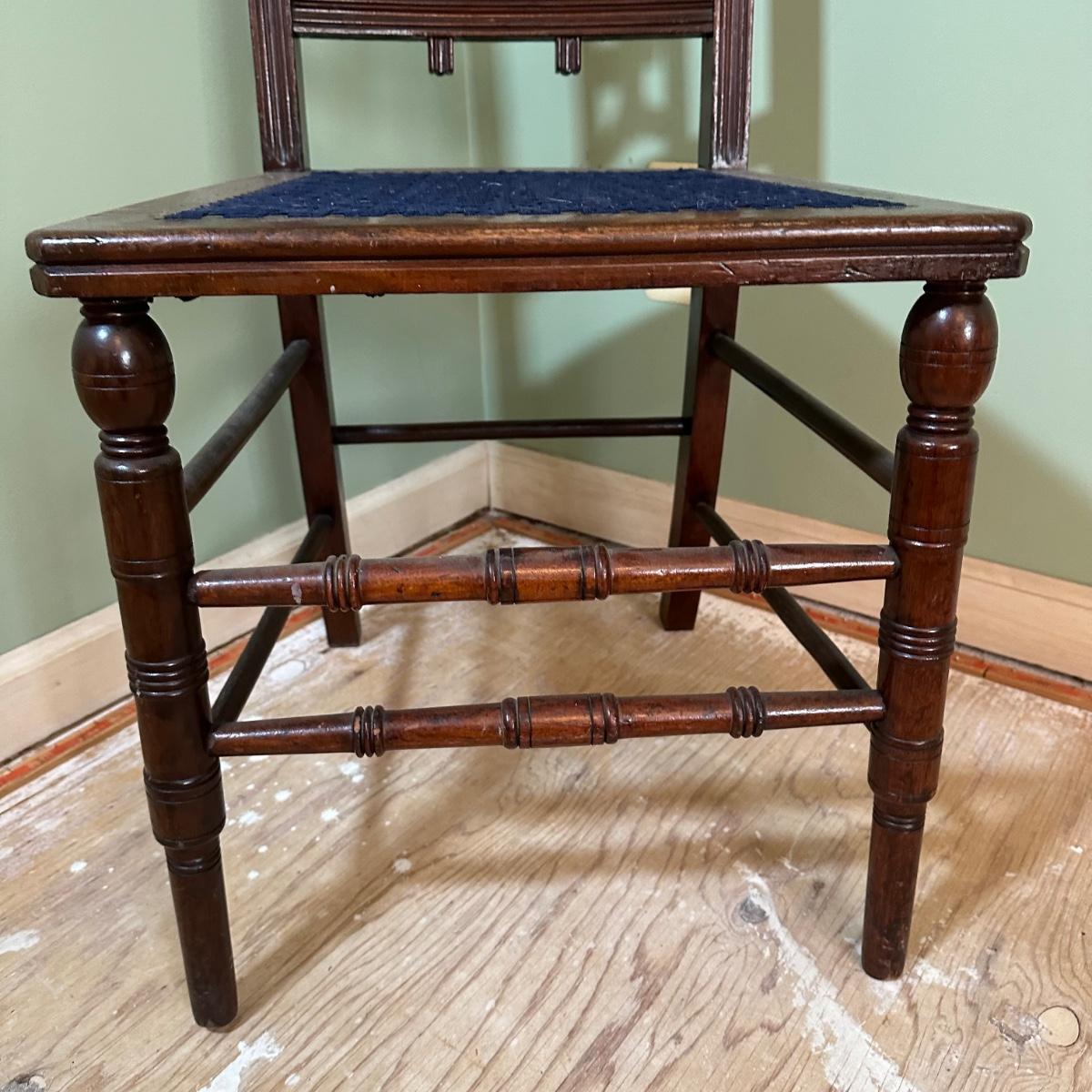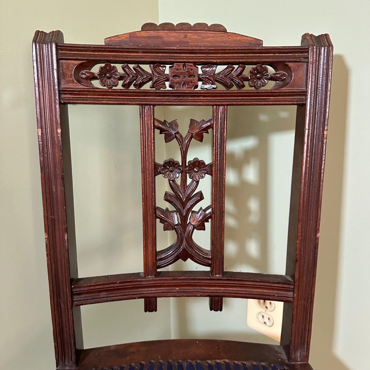 LOT 54D: Vintage Tiffany Style Stained Glass Floral Lamp w/ Antique Chair & Triangle Drop Leaf Table