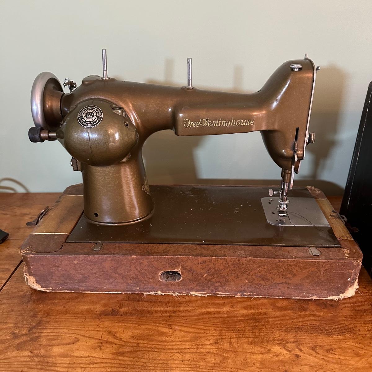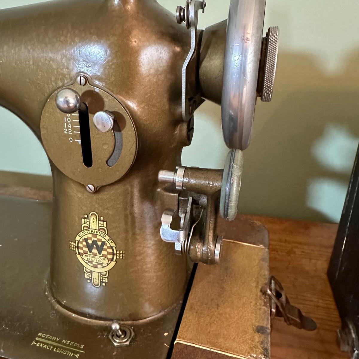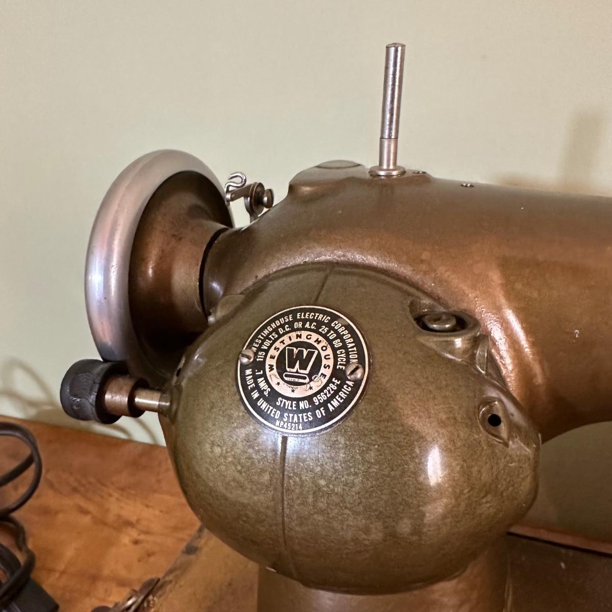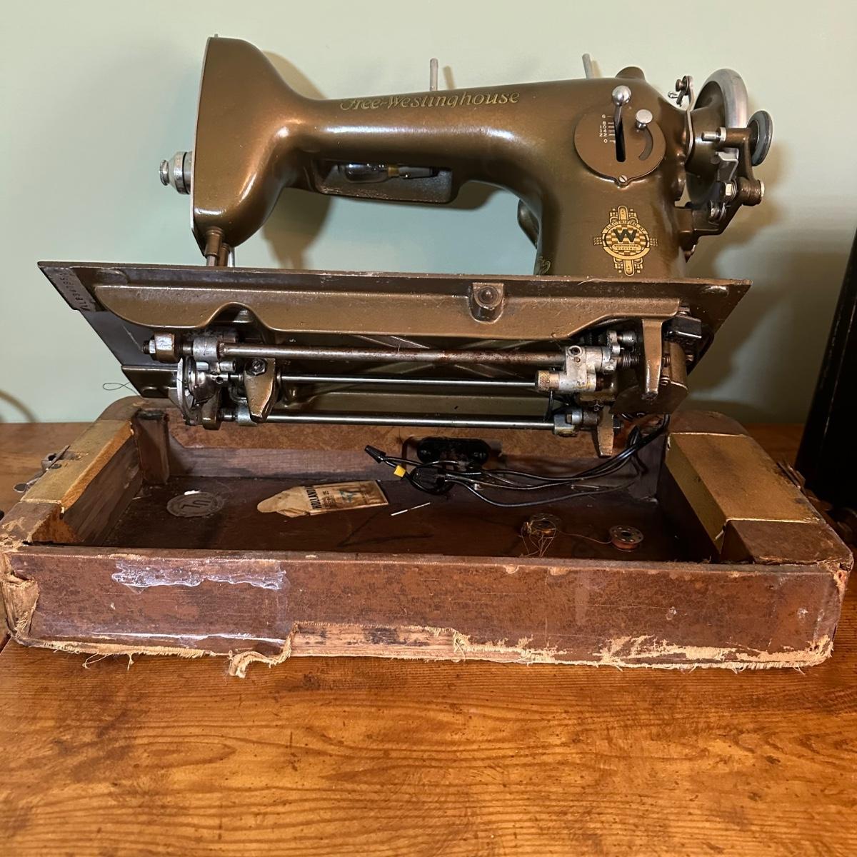 LOT 55D: Wooden Folding Sewing Desk w/ Vintage Westinghouse Sewing Machine & Case