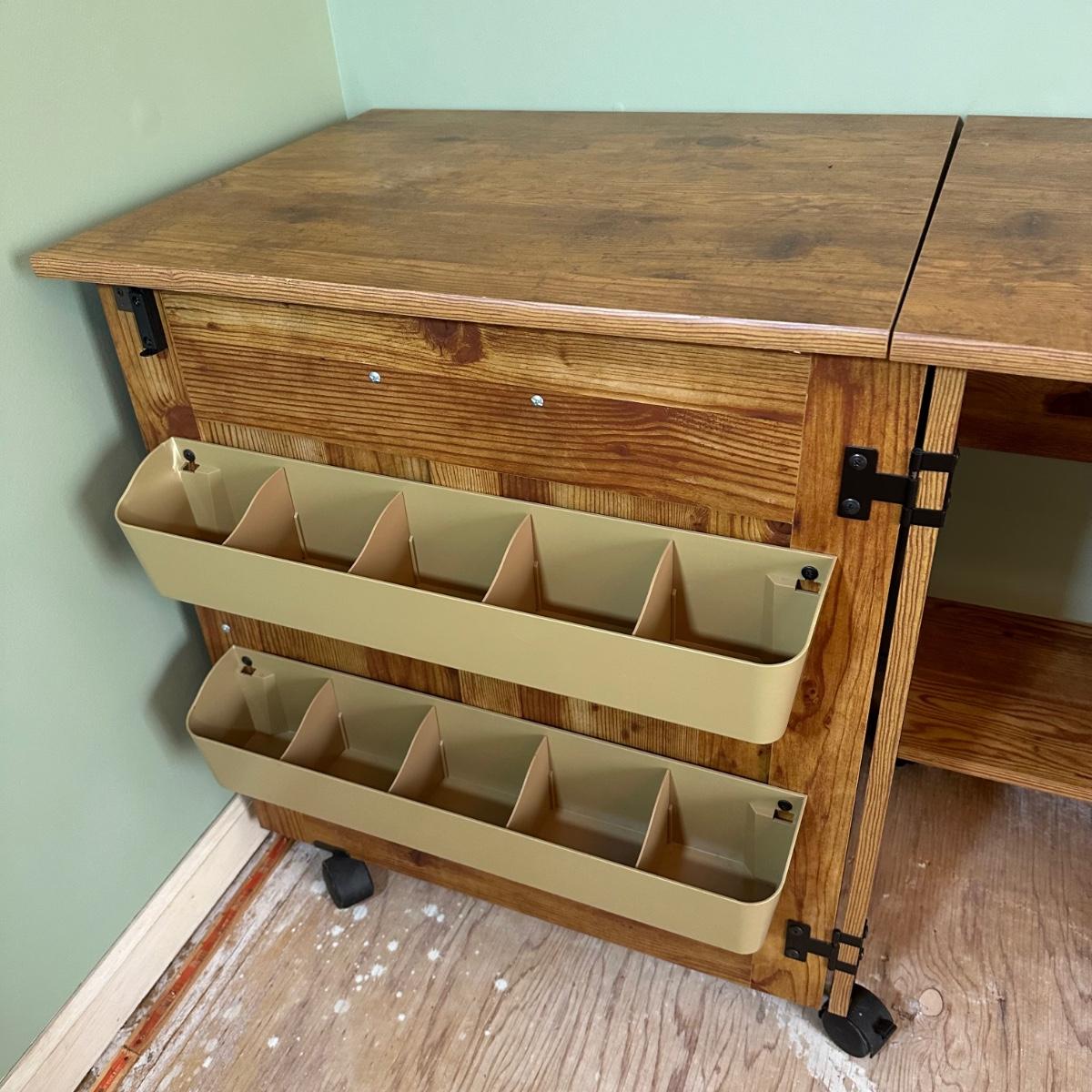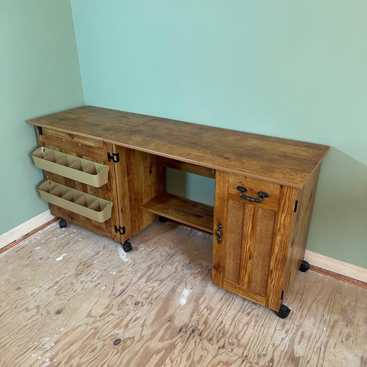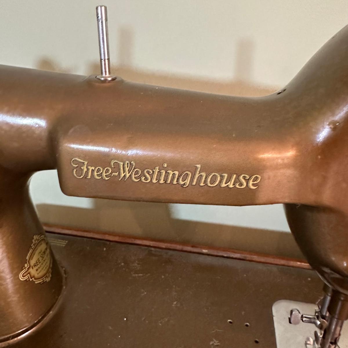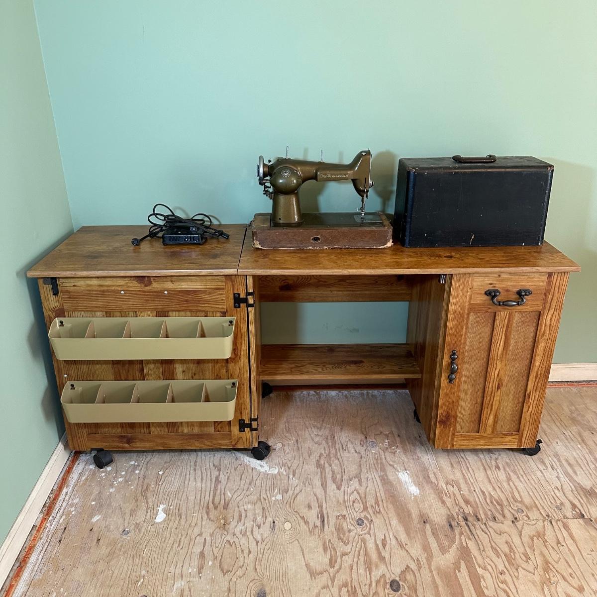 LOT 55D: Wooden Folding Sewing Desk w/ Vintage Westinghouse Sewing Machine & Case
