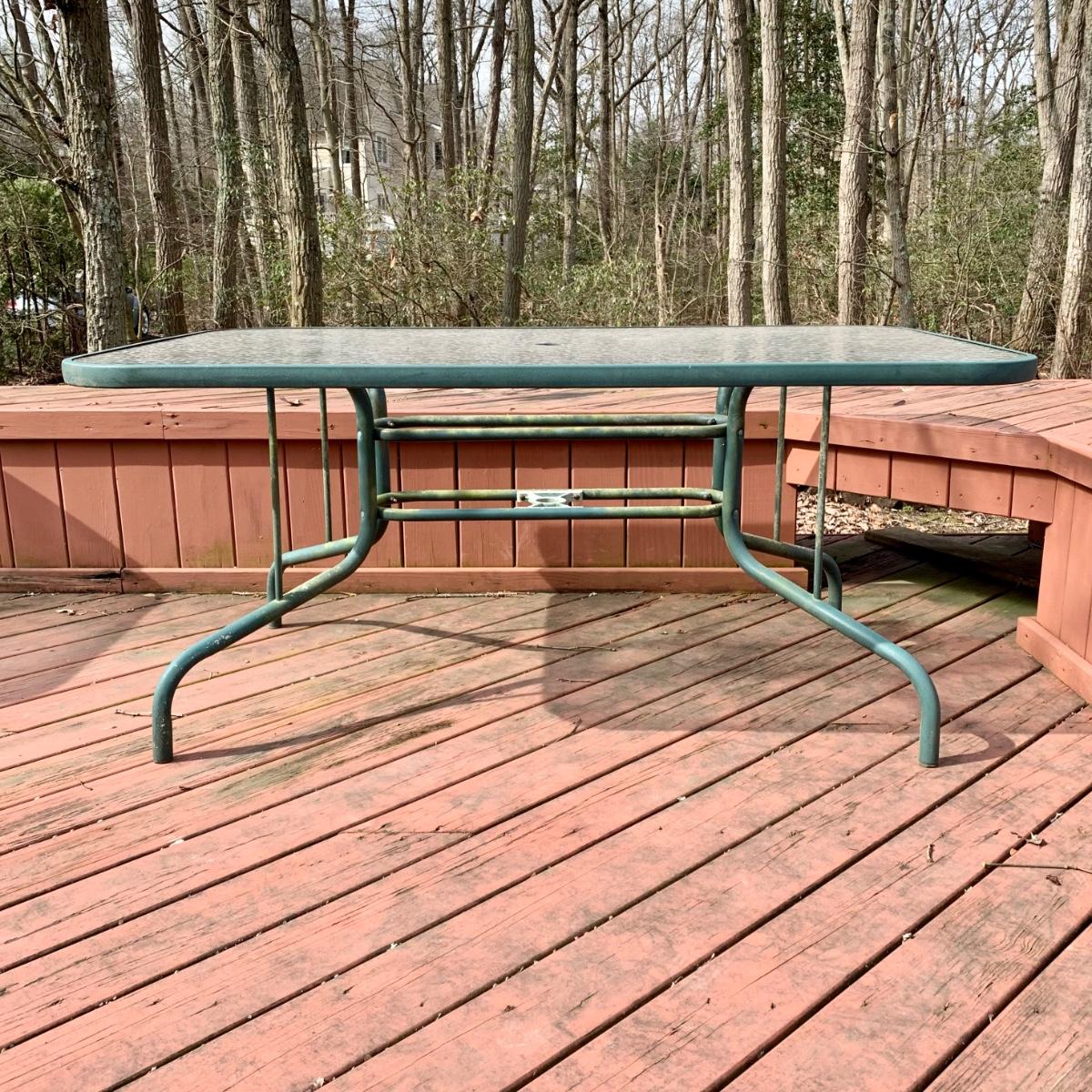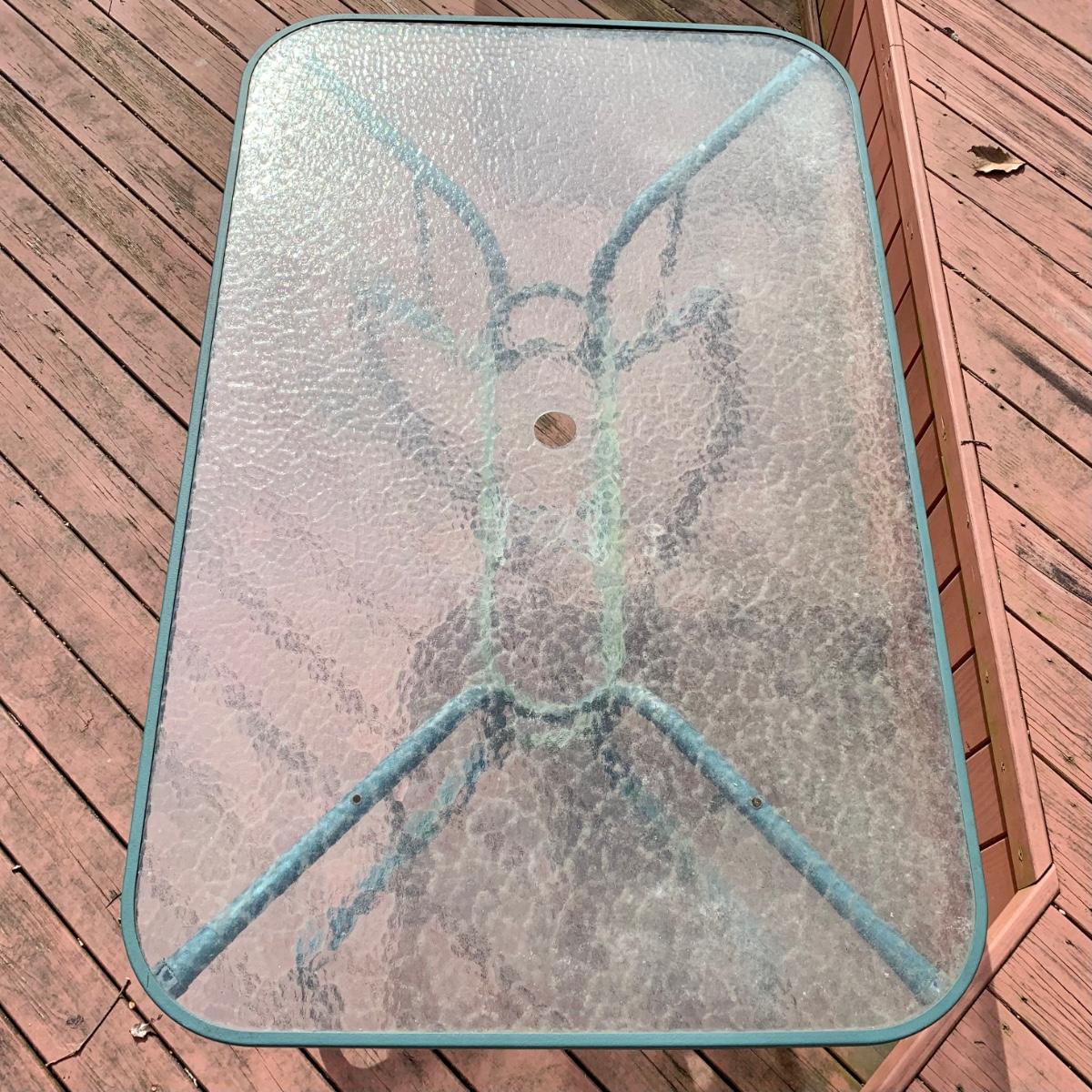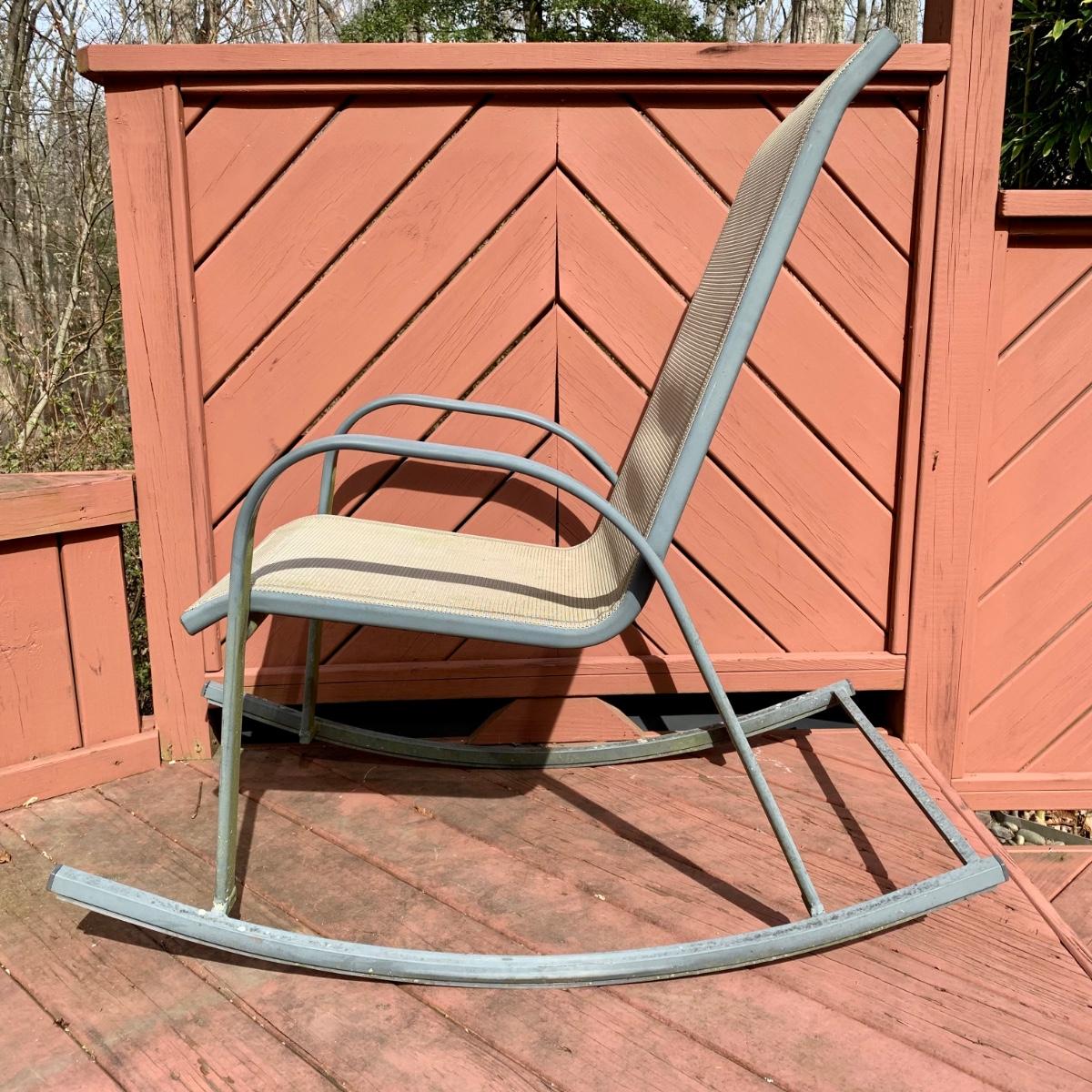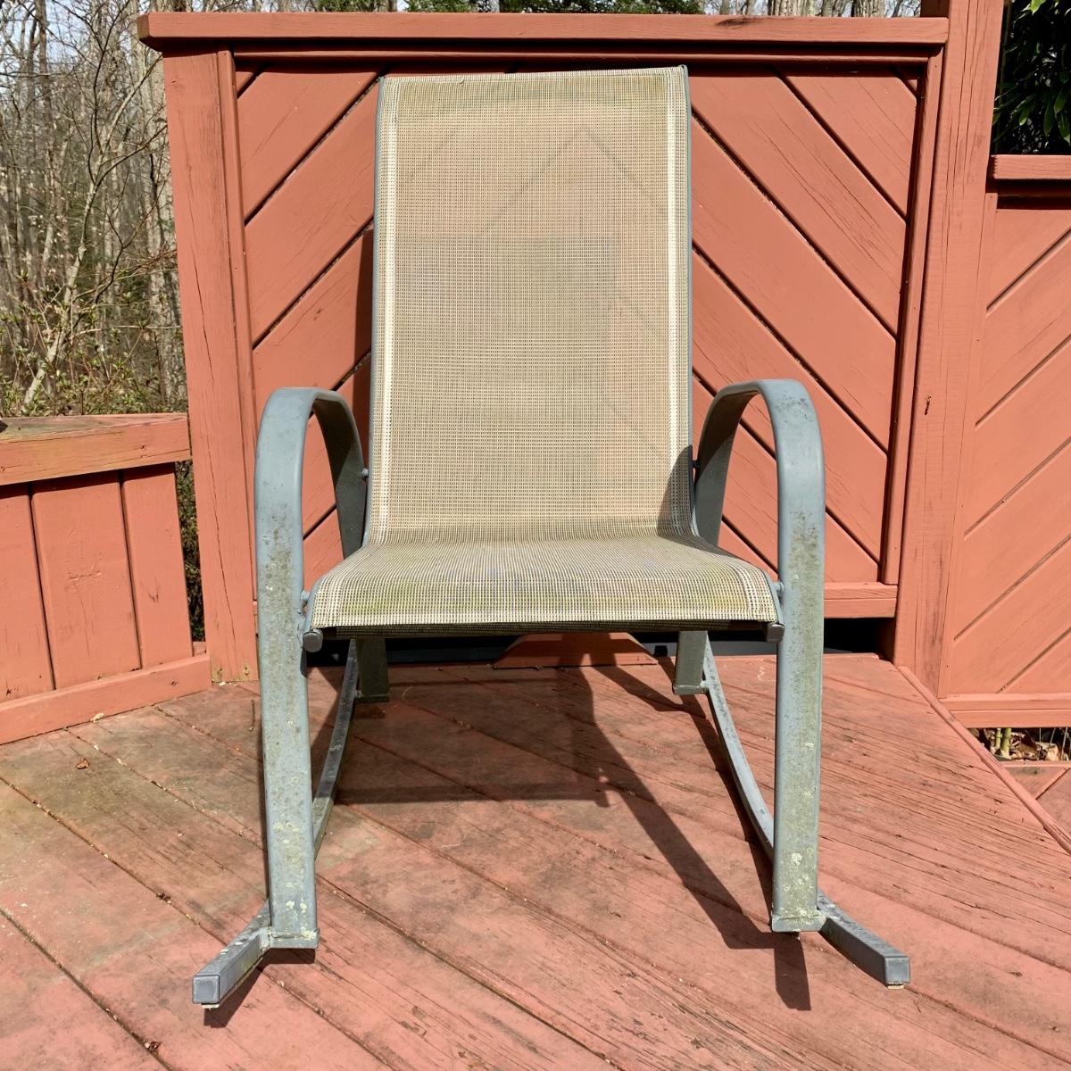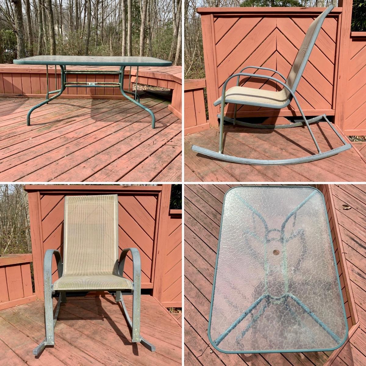 LOT 68 O: Glass Top Patio Table & Rocking Chair