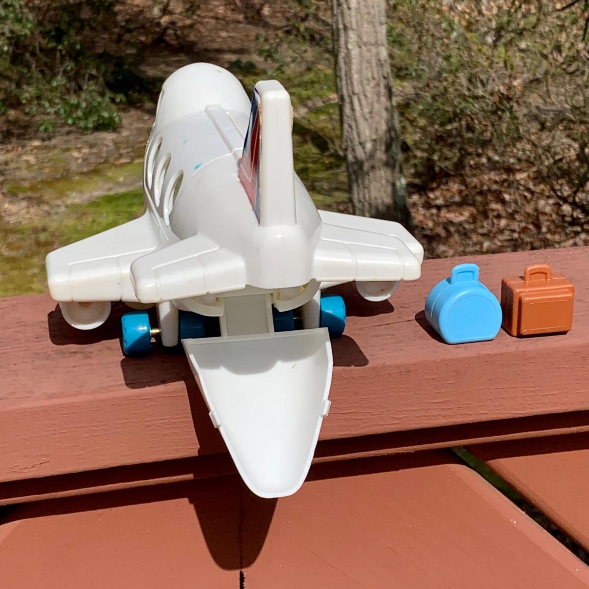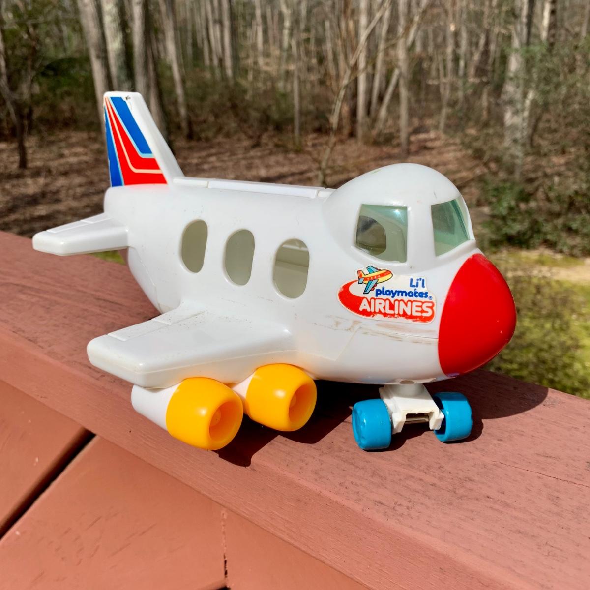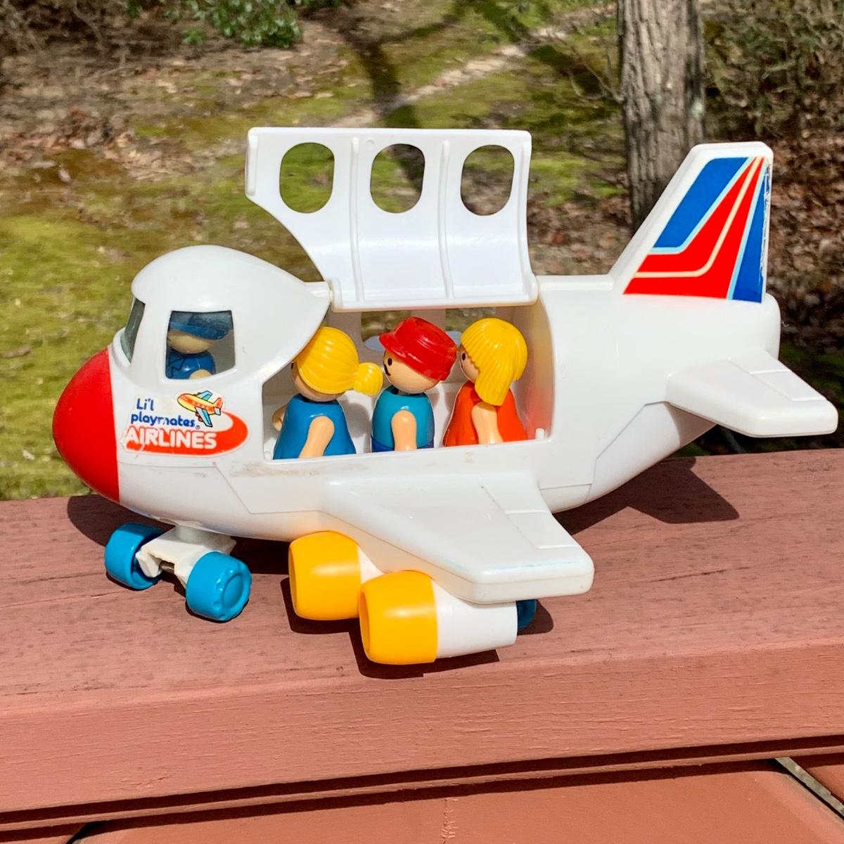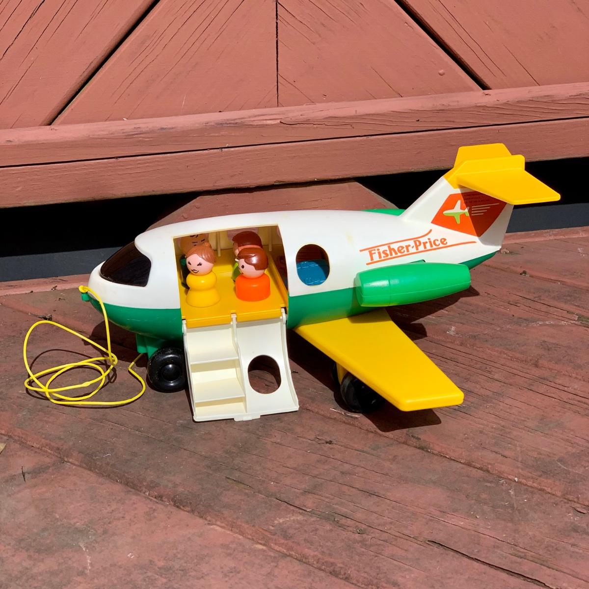 LOT 71 L: Vintage 1965 Fisher-Price School Bus, 1980 Fisher-Price Airplane, & Li'l Playmates Airlines Airplane, All W/ Characters & Planes W/Luggage