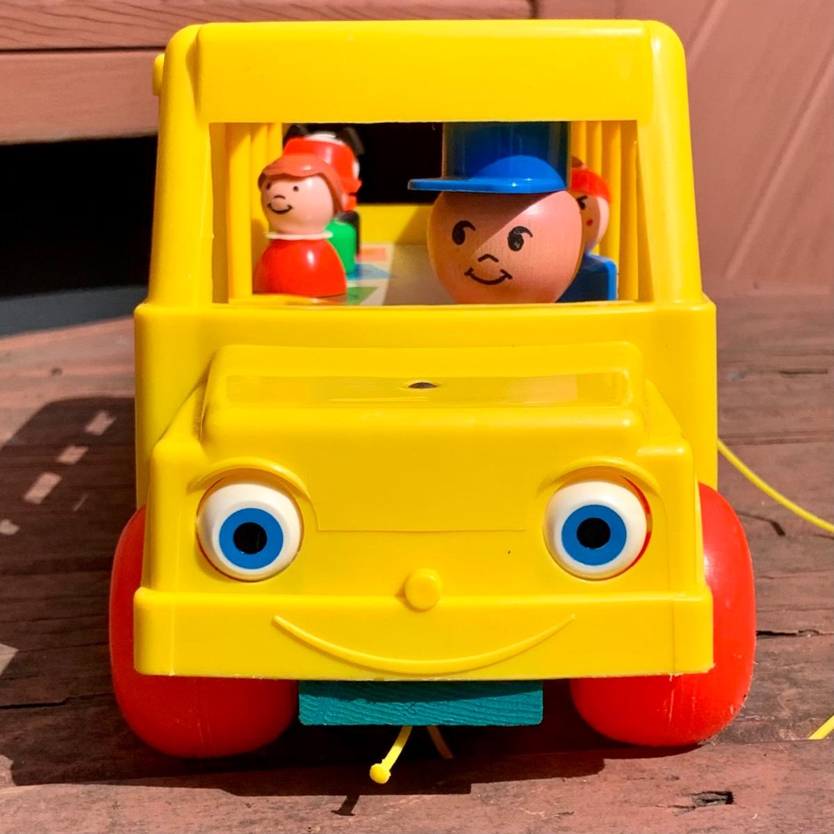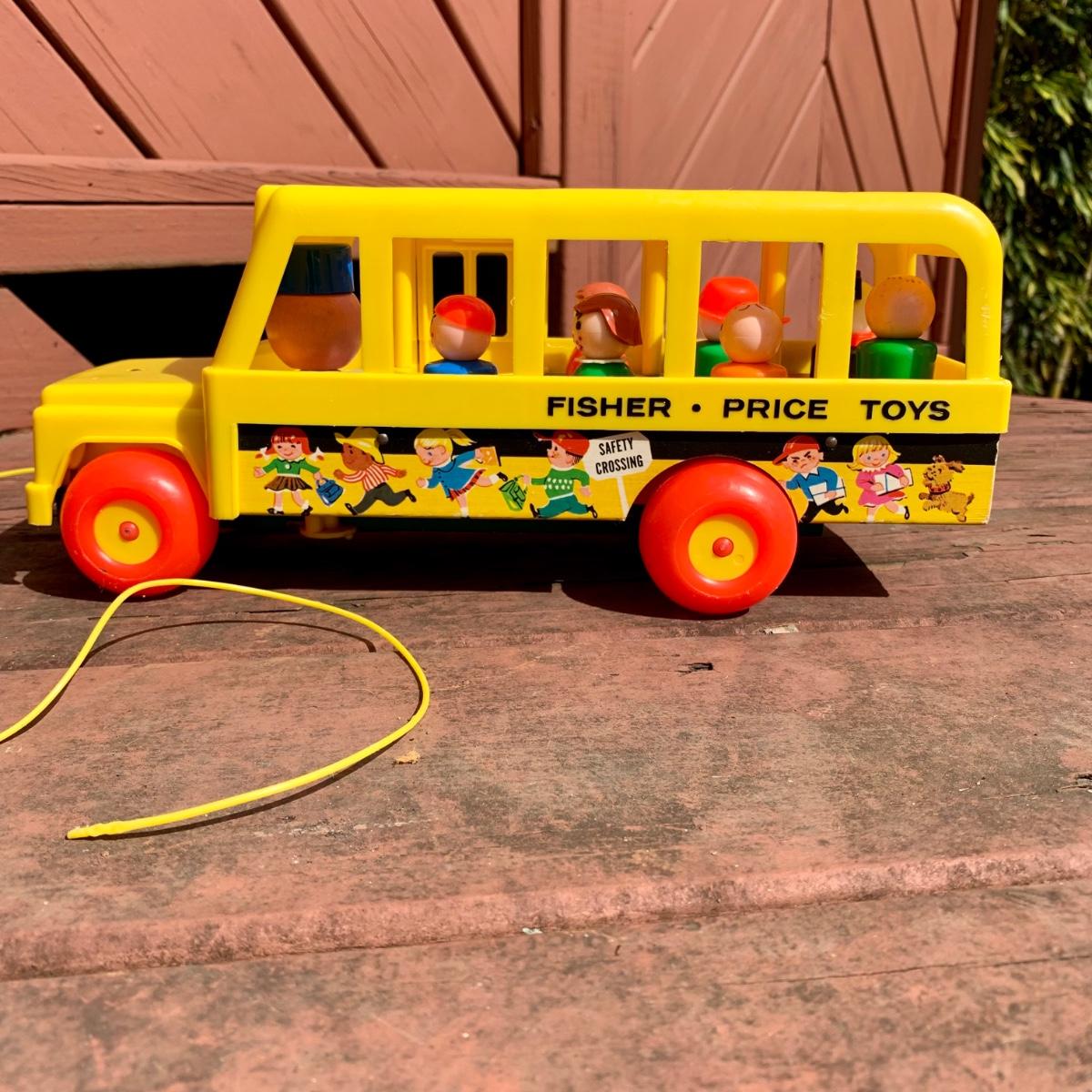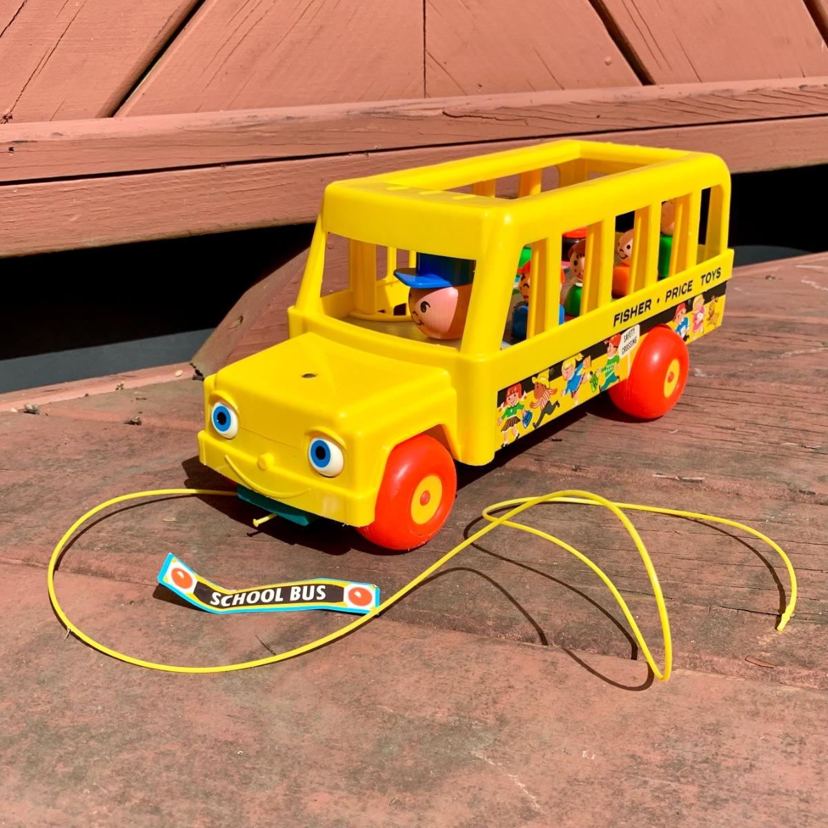 LOT 71 L: Vintage 1965 Fisher-Price School Bus, 1980 Fisher-Price Airplane, & Li'l Playmates Airlines Airplane, All W/ Characters & Planes W/Luggage