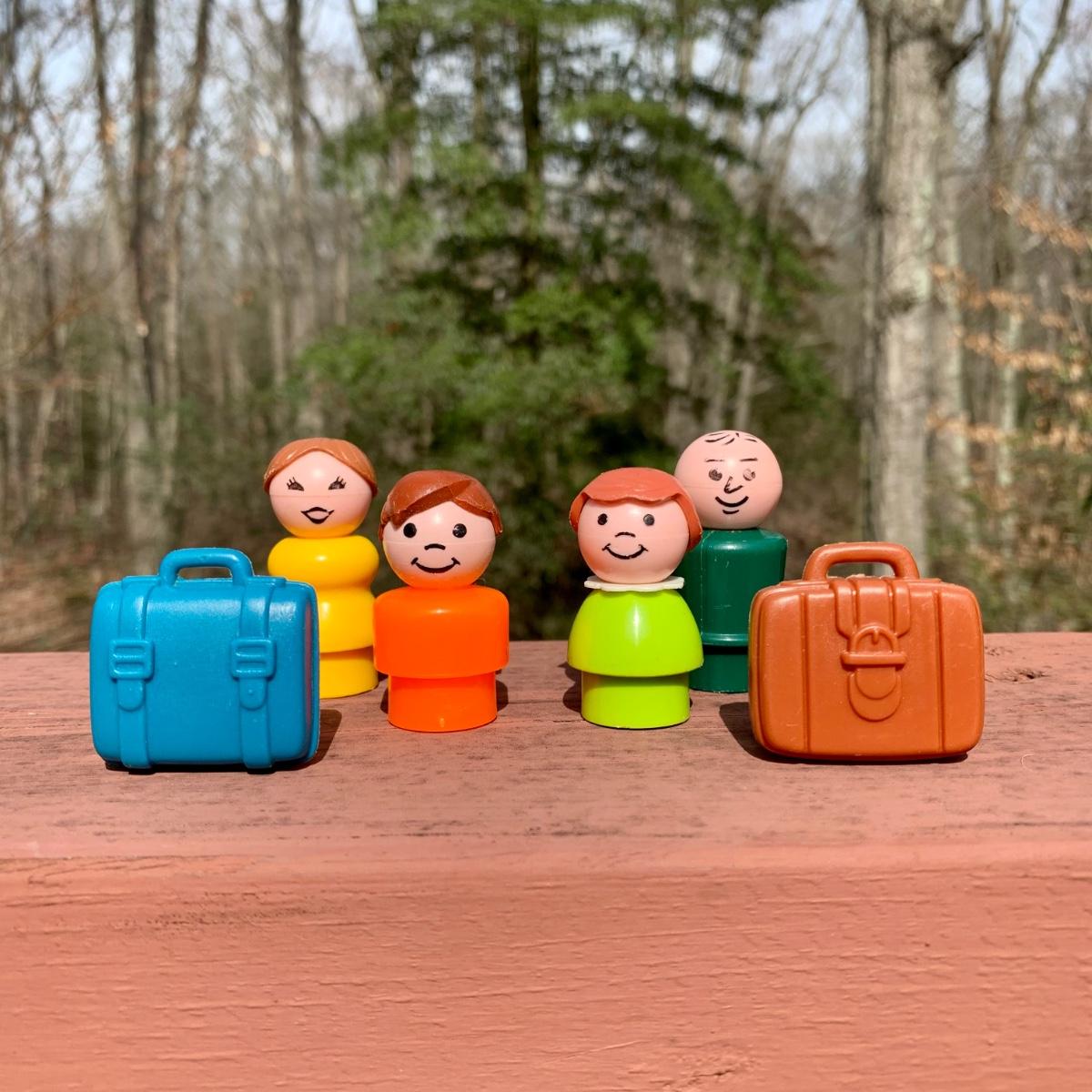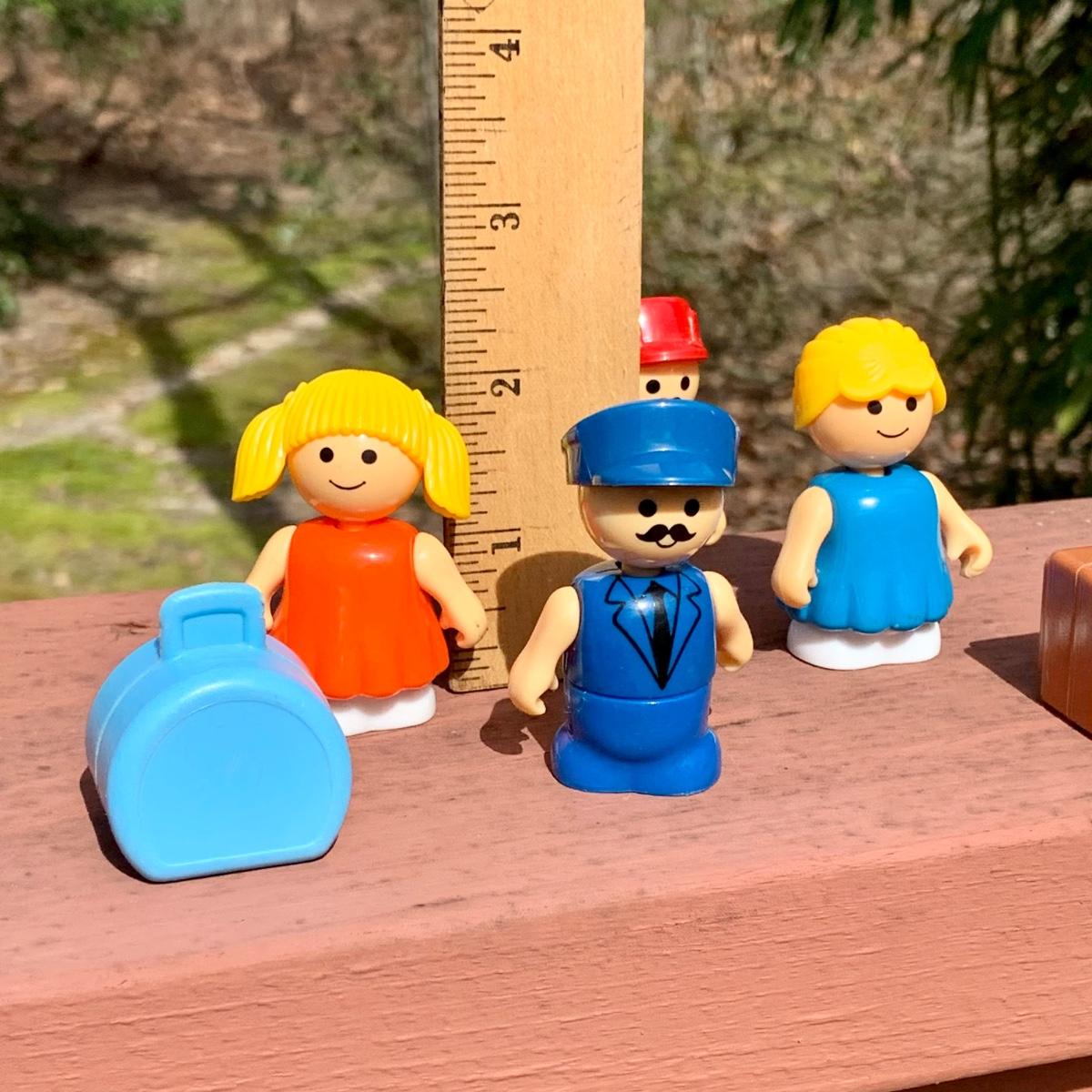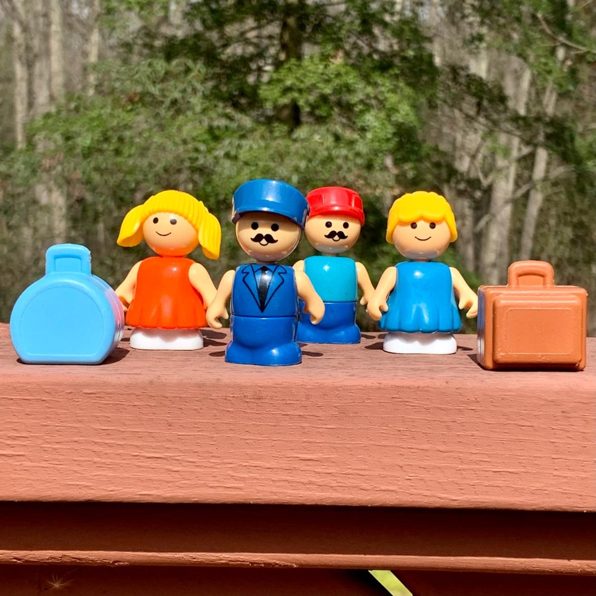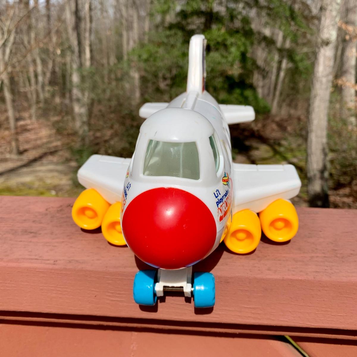 LOT 71 L: Vintage 1965 Fisher-Price School Bus, 1980 Fisher-Price Airplane, & Li'l Playmates Airlines Airplane, All W/ Characters & Planes W/Luggage