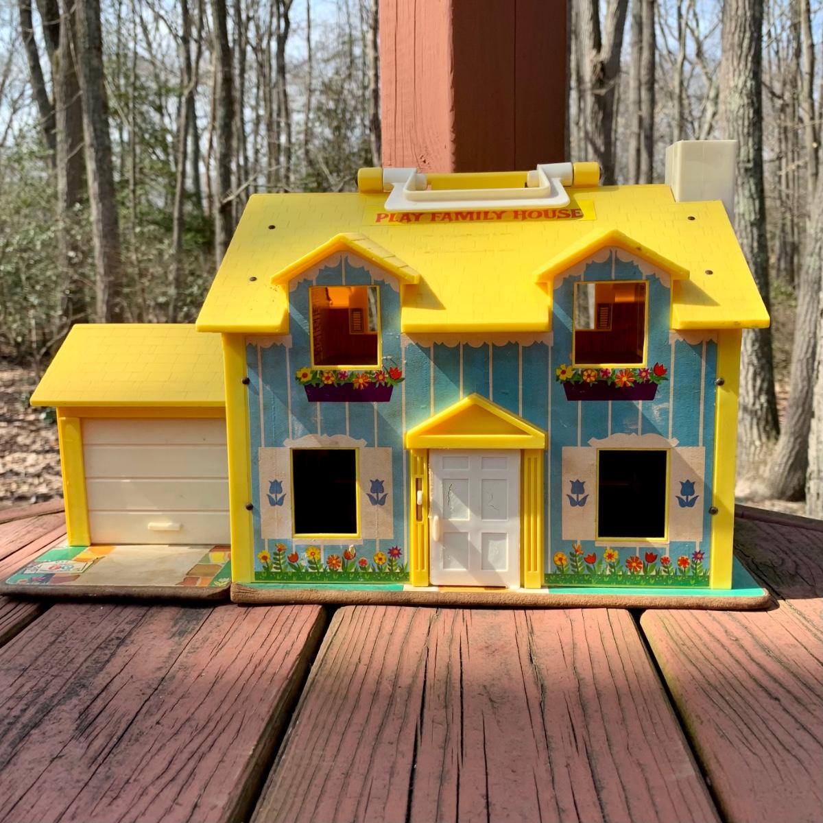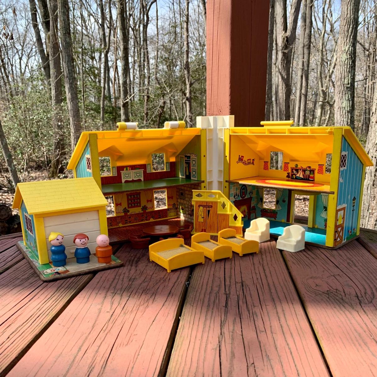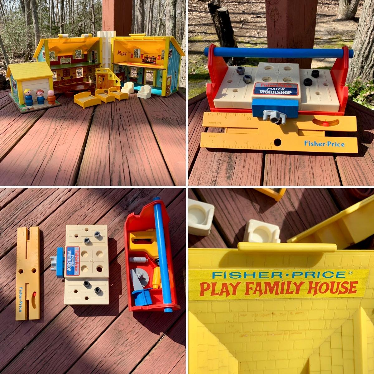 LOT 75 L: Vintage 1969 Fisher-Price Play Family House W/ some Accessories & 1986 Fisher-Price Power Workshop W/ some Accessories