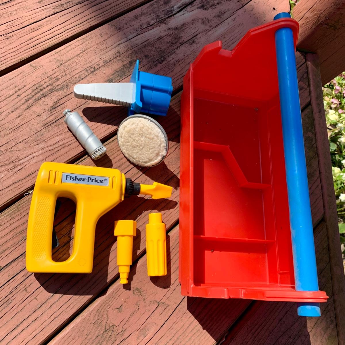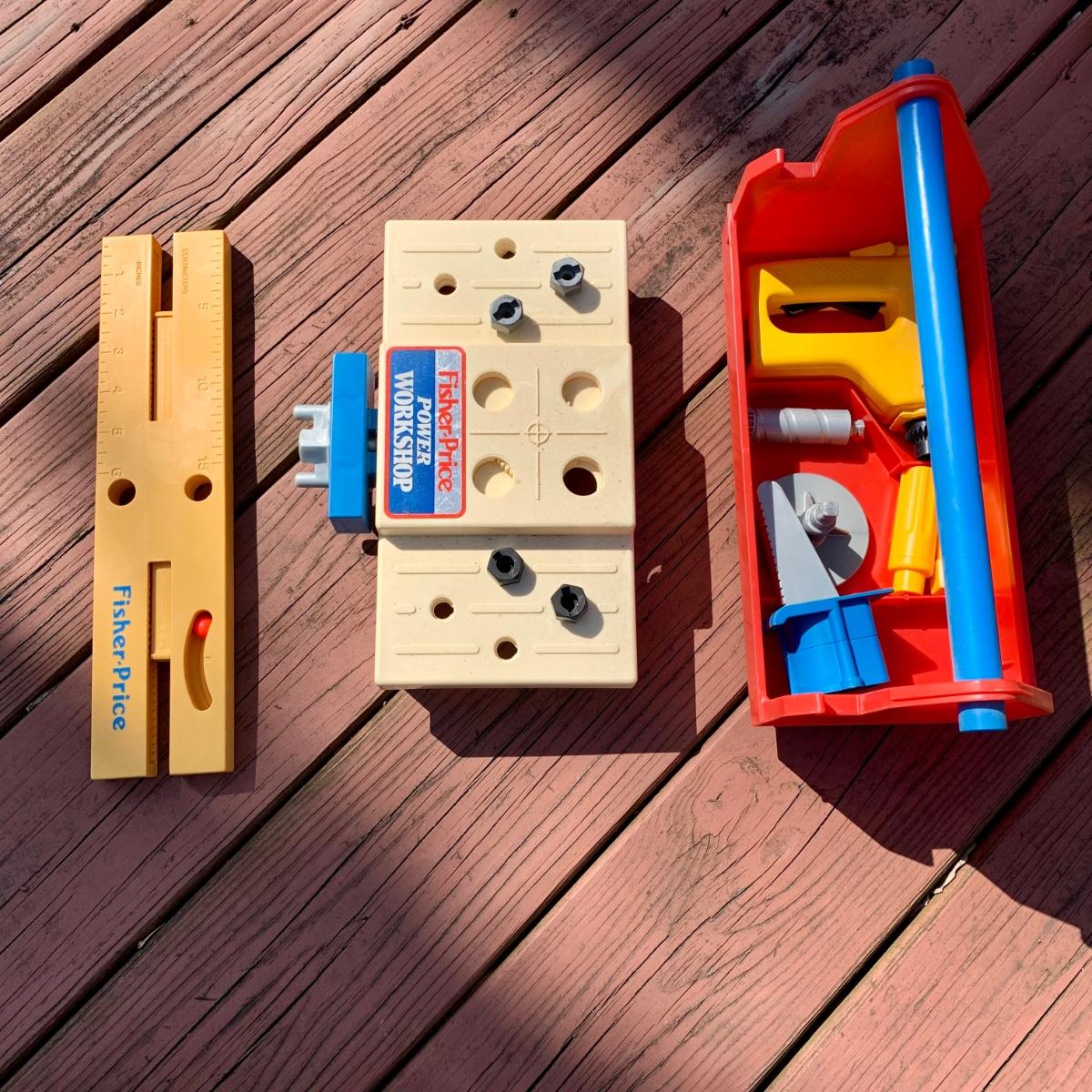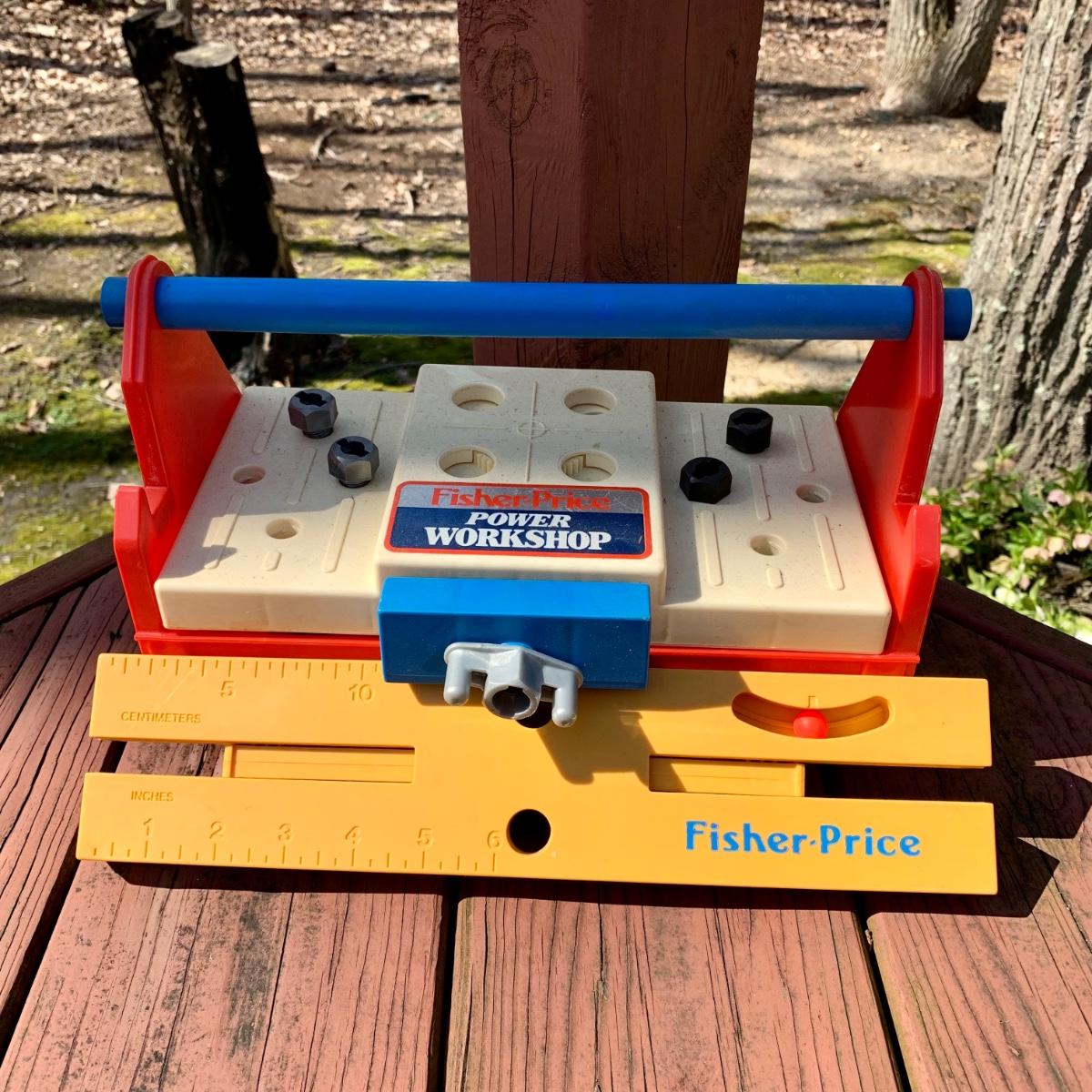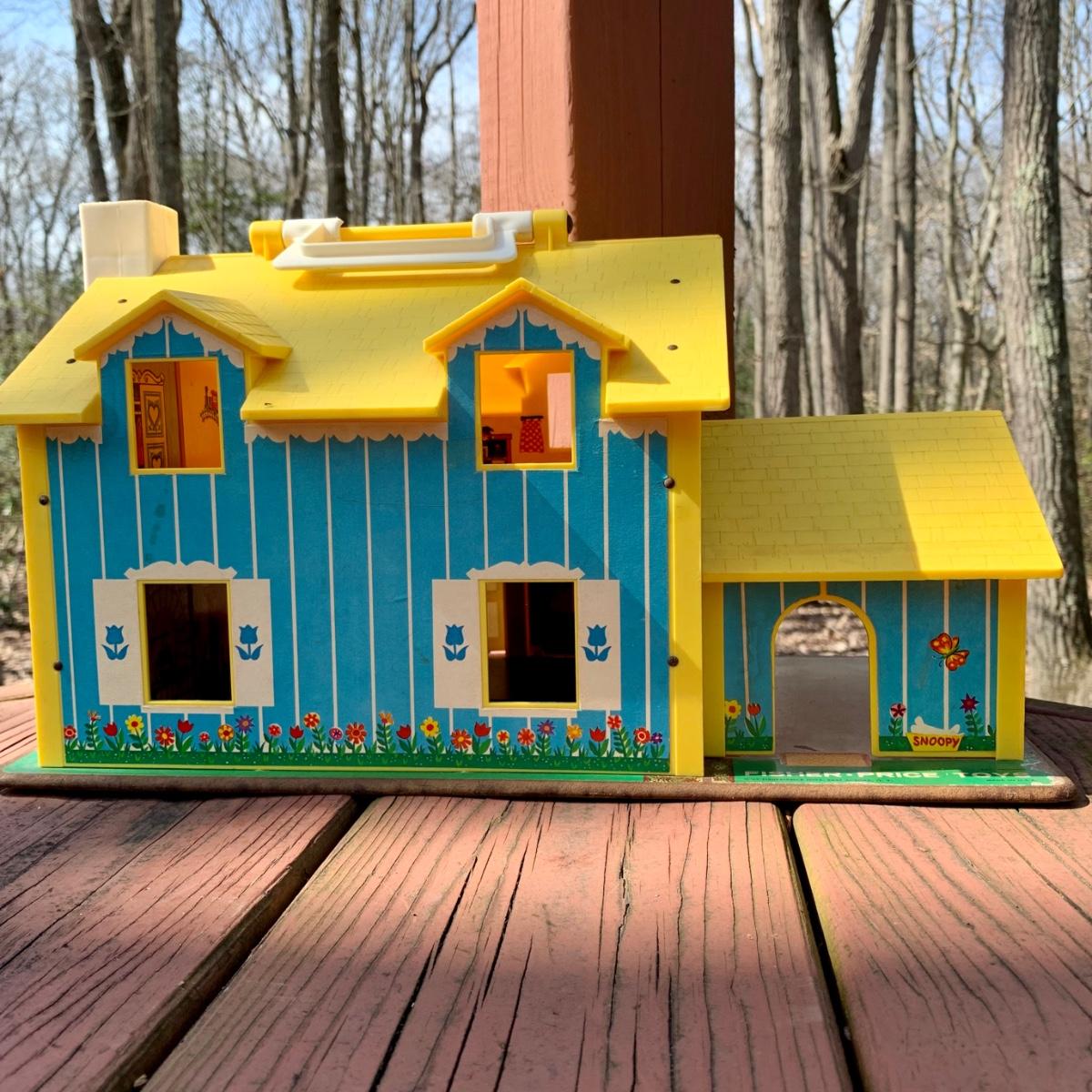 LOT 75 L: Vintage 1969 Fisher-Price Play Family House W/ some Accessories & 1986 Fisher-Price Power Workshop W/ some Accessories