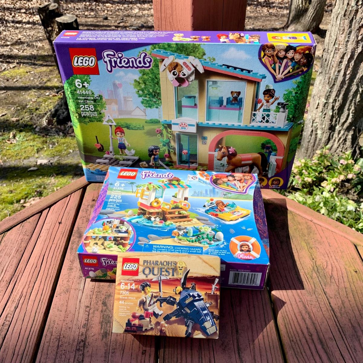 LOT 76 L: Sealed Lego Friends "Heartlake City Vet Clinic" & "Turtles Rescue Mission" Sets & Lego Pharaoh's Quest "Scarab Attack" Set