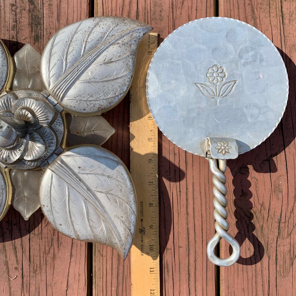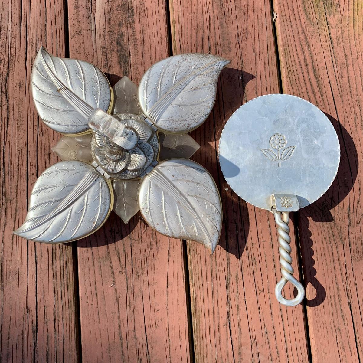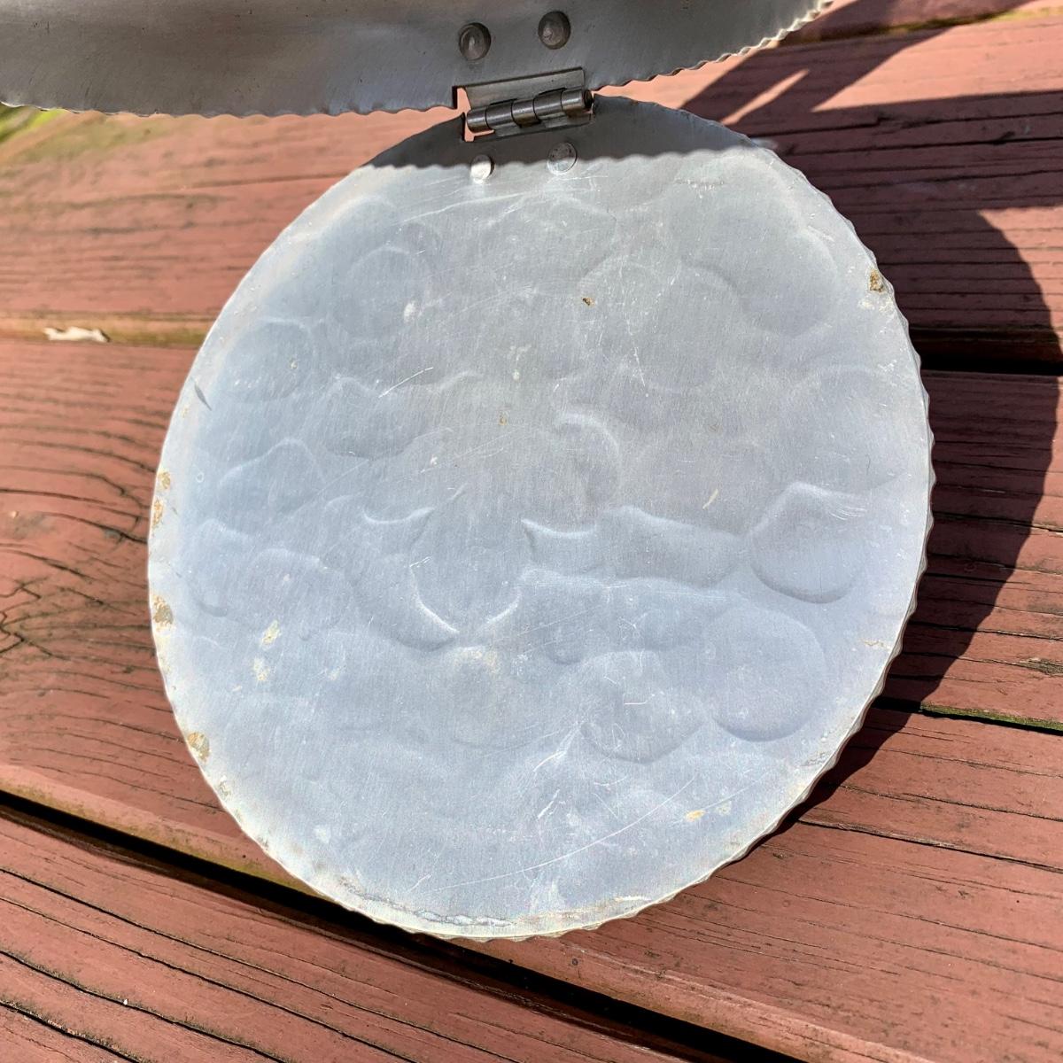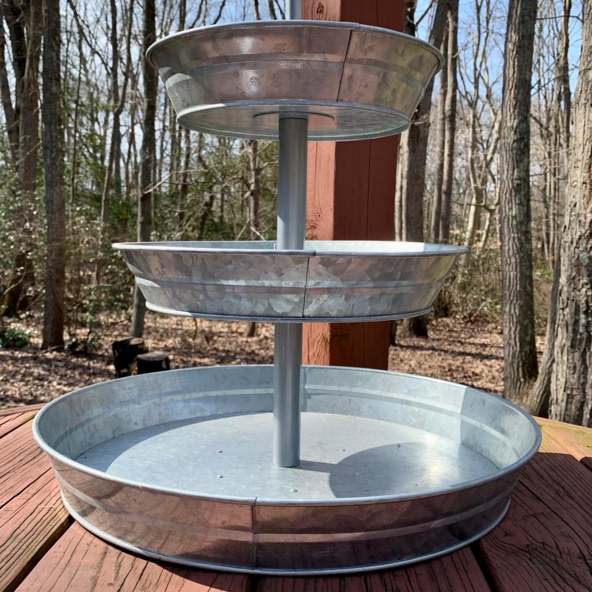 LOT 79 L: Vintage Buenilum Silent Butler/Crumb Catcher, 1960's Karoff Original Snack Server W/ Lucite Handle, & Galvanised Steel 3 Tiered Serving Tray