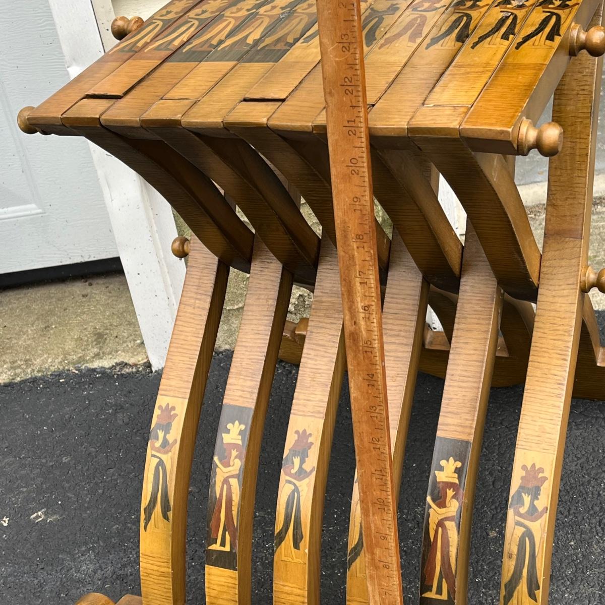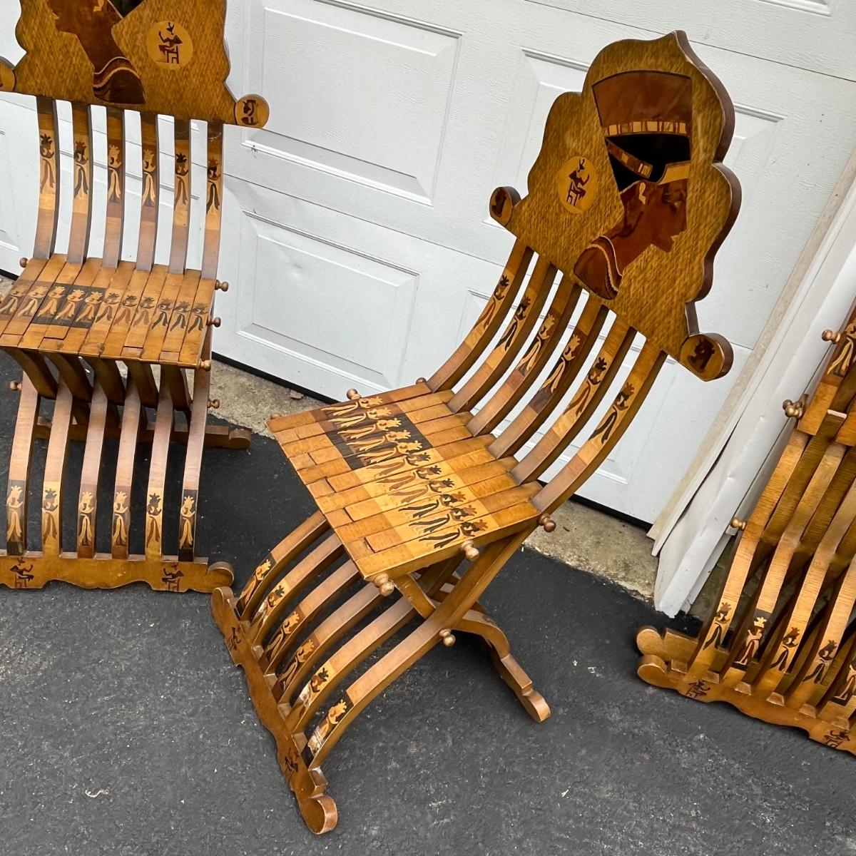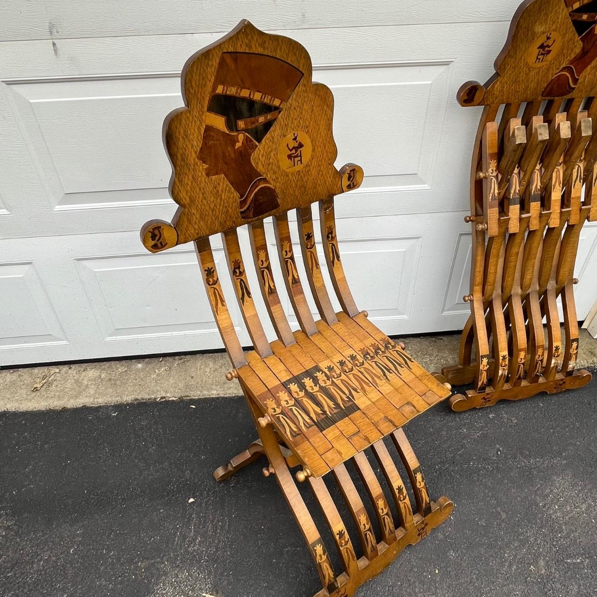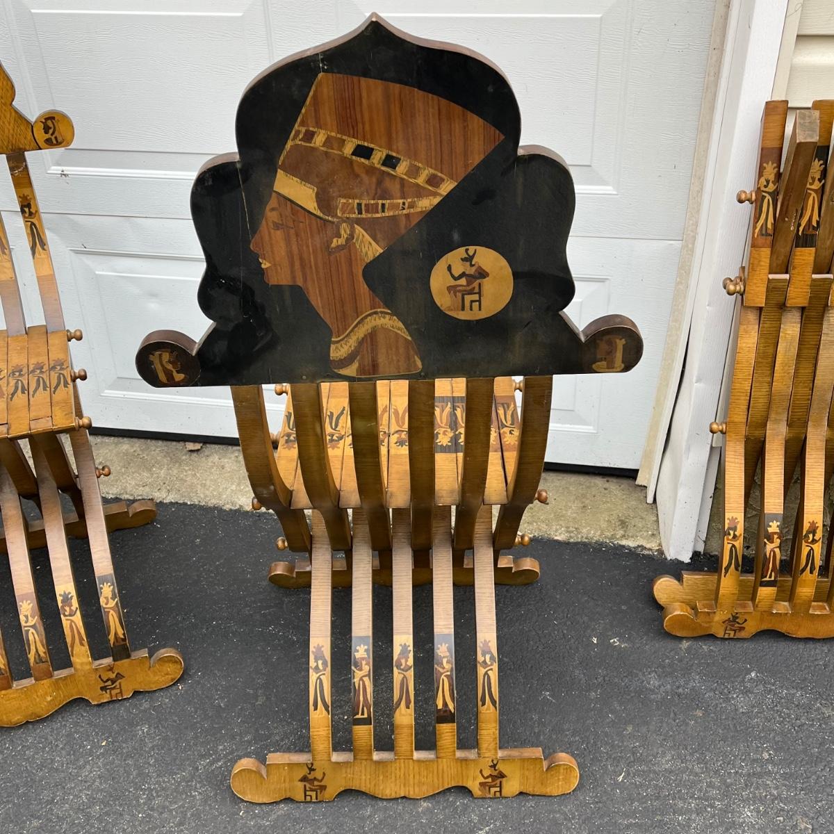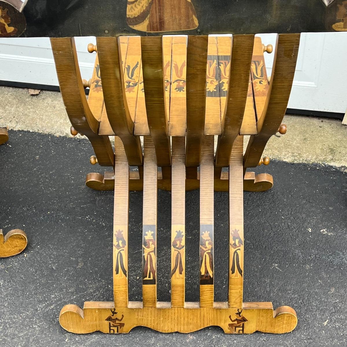 LOT 86G: Egyptian Themed Wooden Folding Chairs and Table Set
