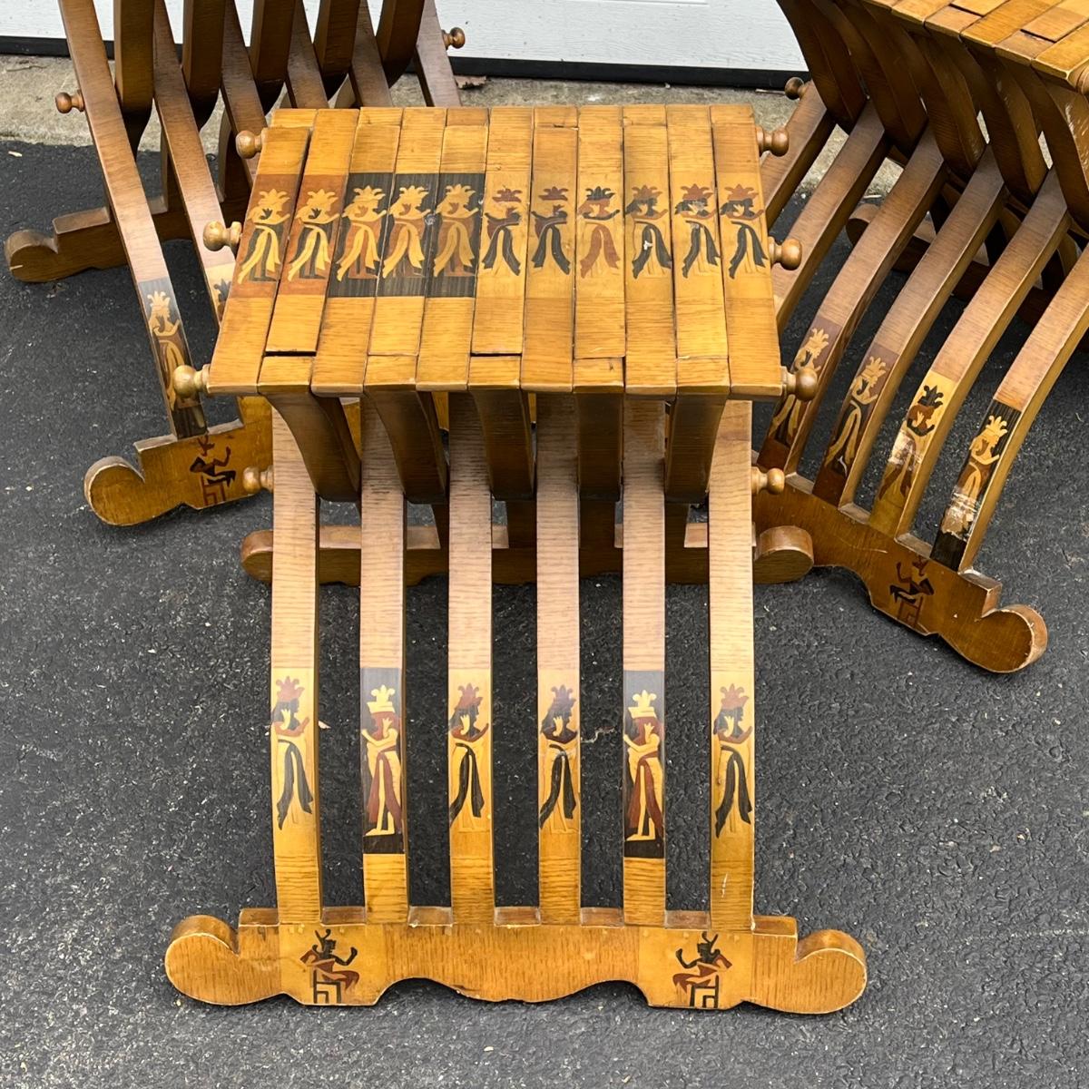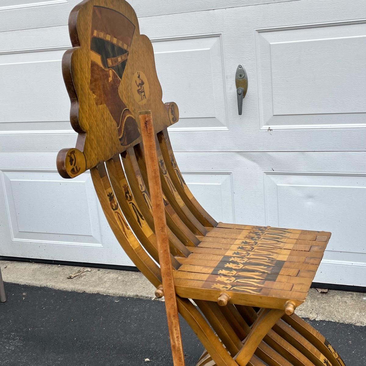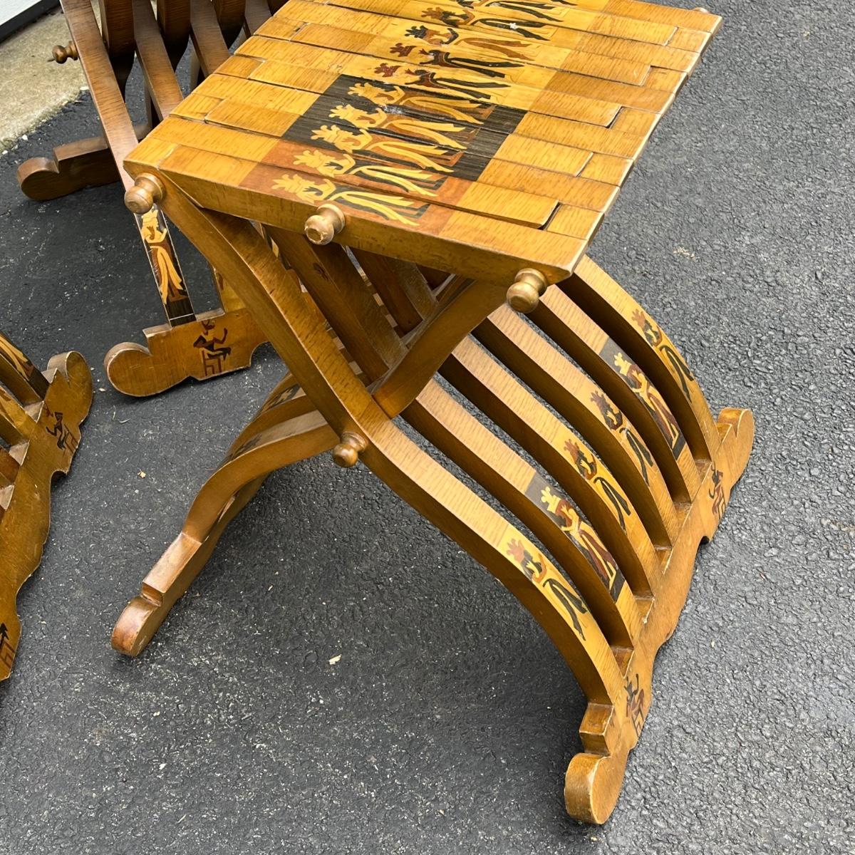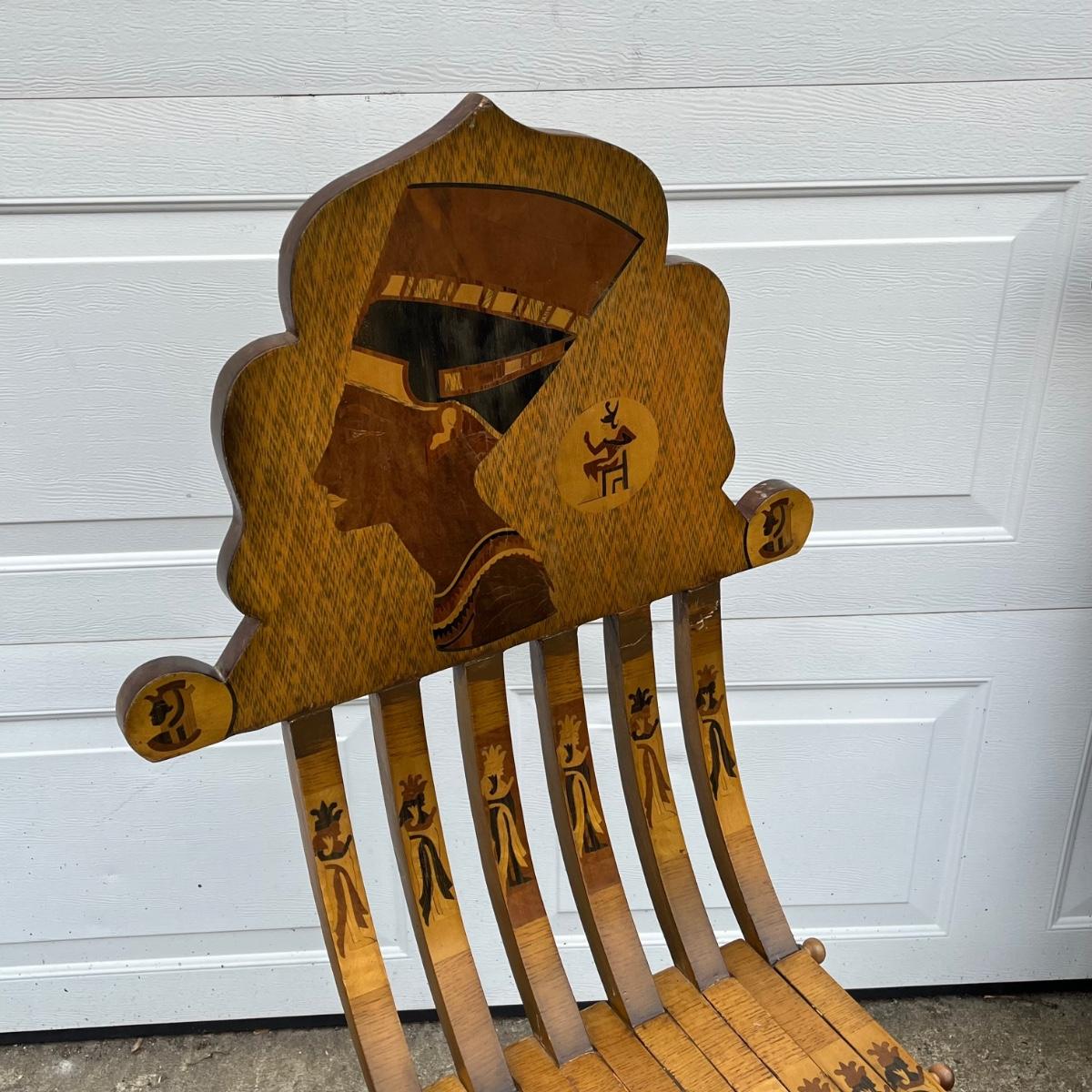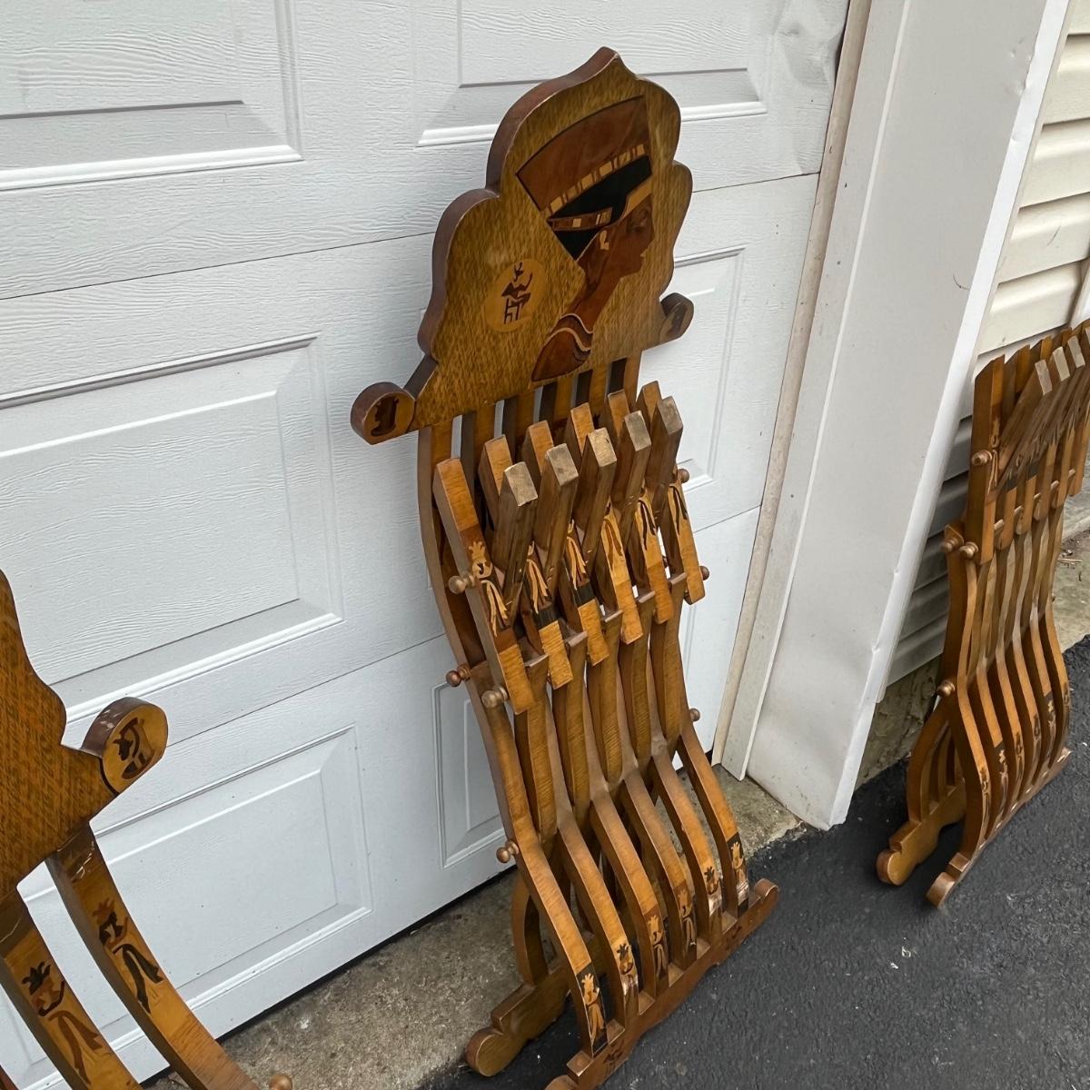 LOT 86G: Egyptian Themed Wooden Folding Chairs and Table Set