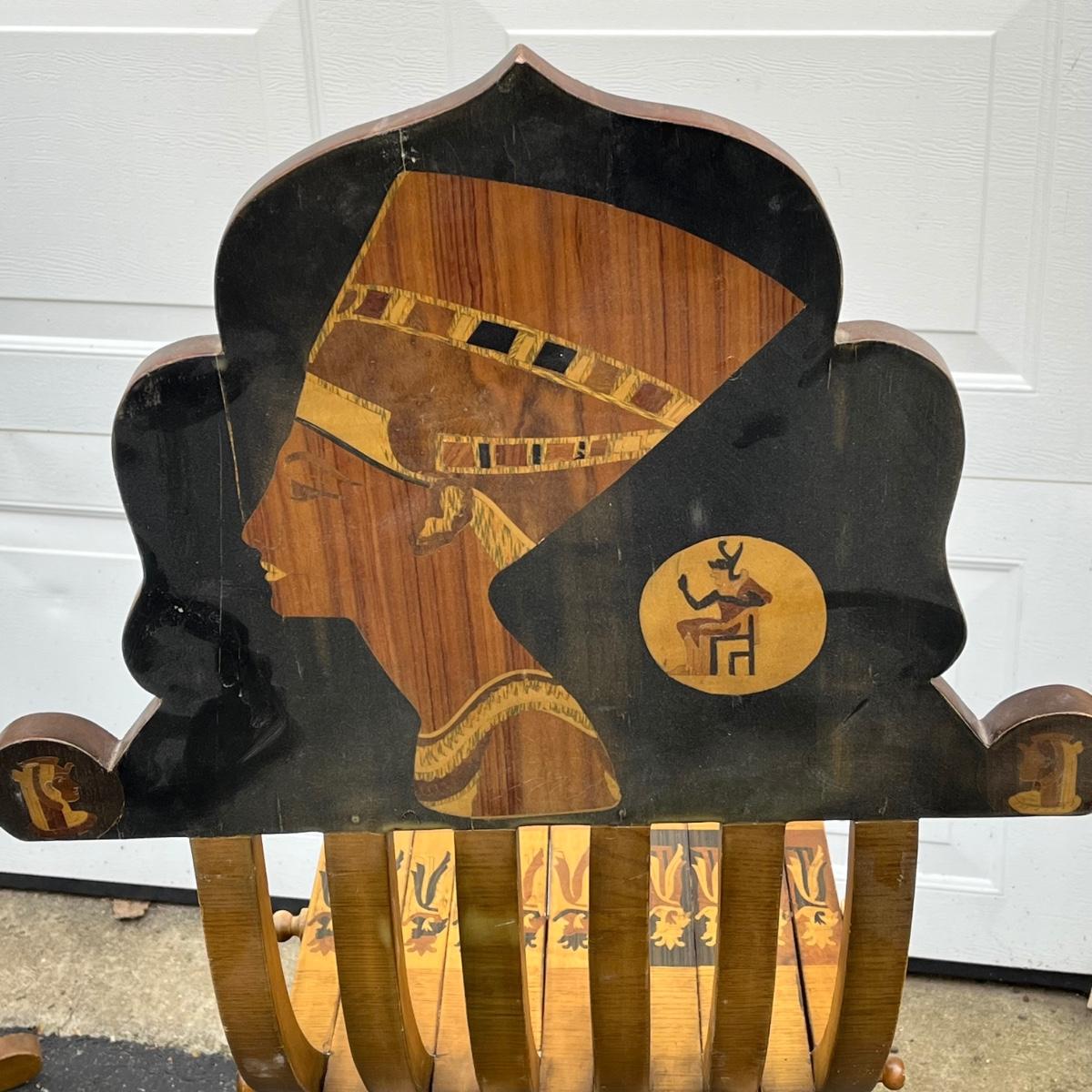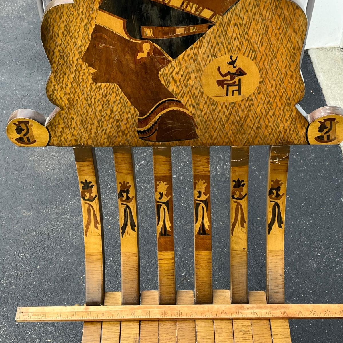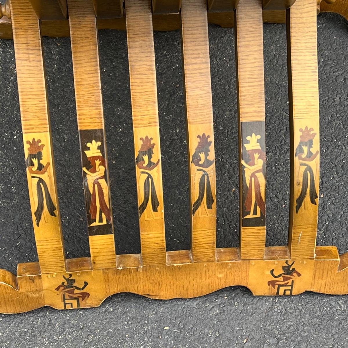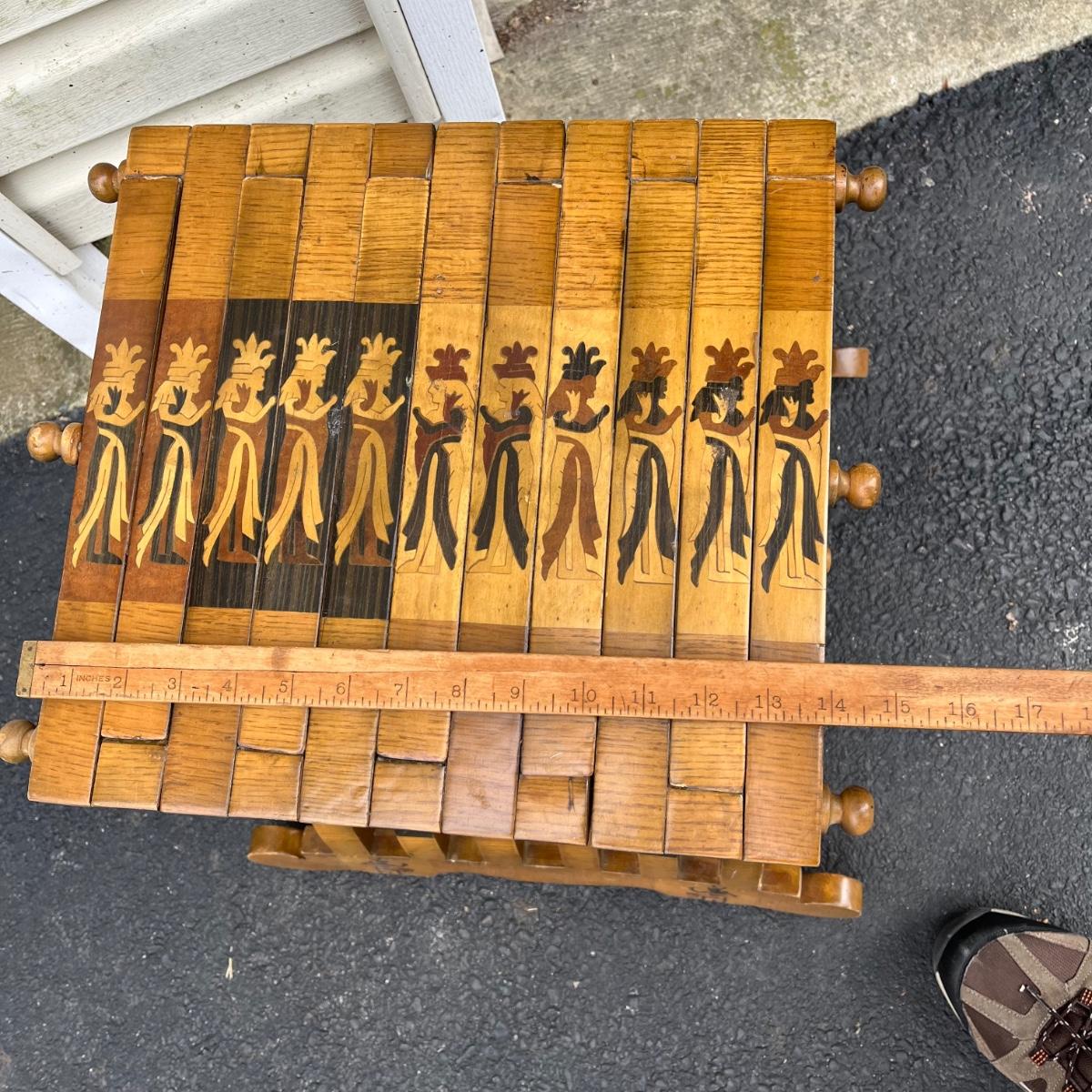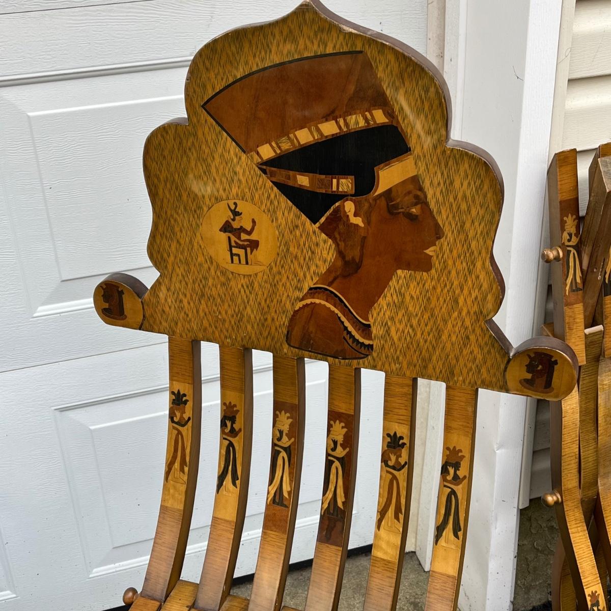 LOT 86G: Egyptian Themed Wooden Folding Chairs and Table Set