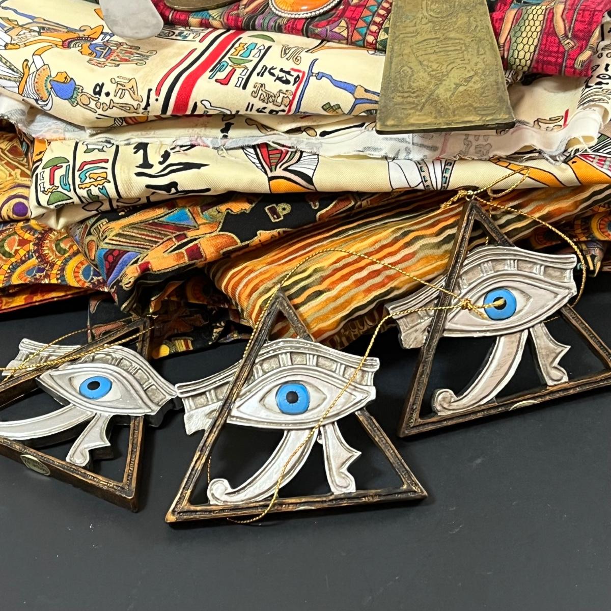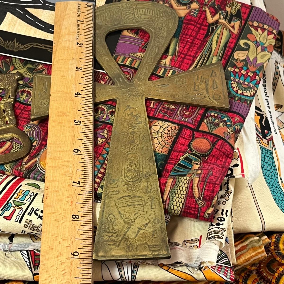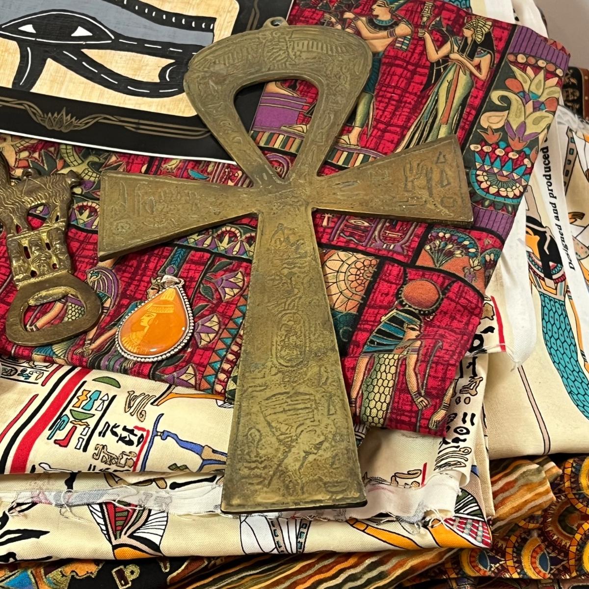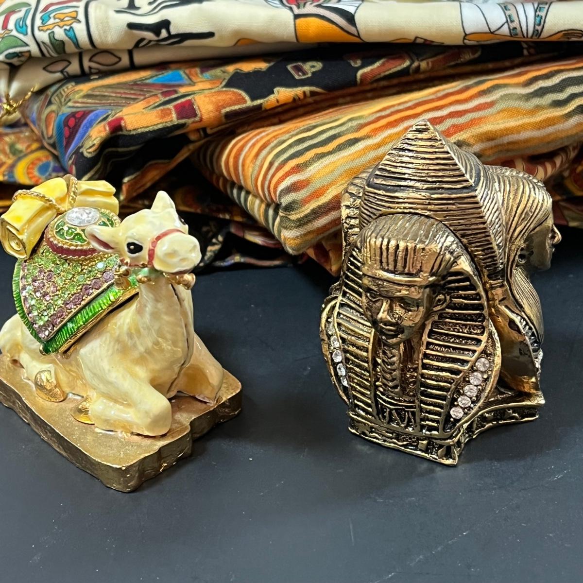 LOT 107G: Egyptian Themed Home Decor - Fabrics, Figurines, Magnetic Closure Trinket Dishes and More