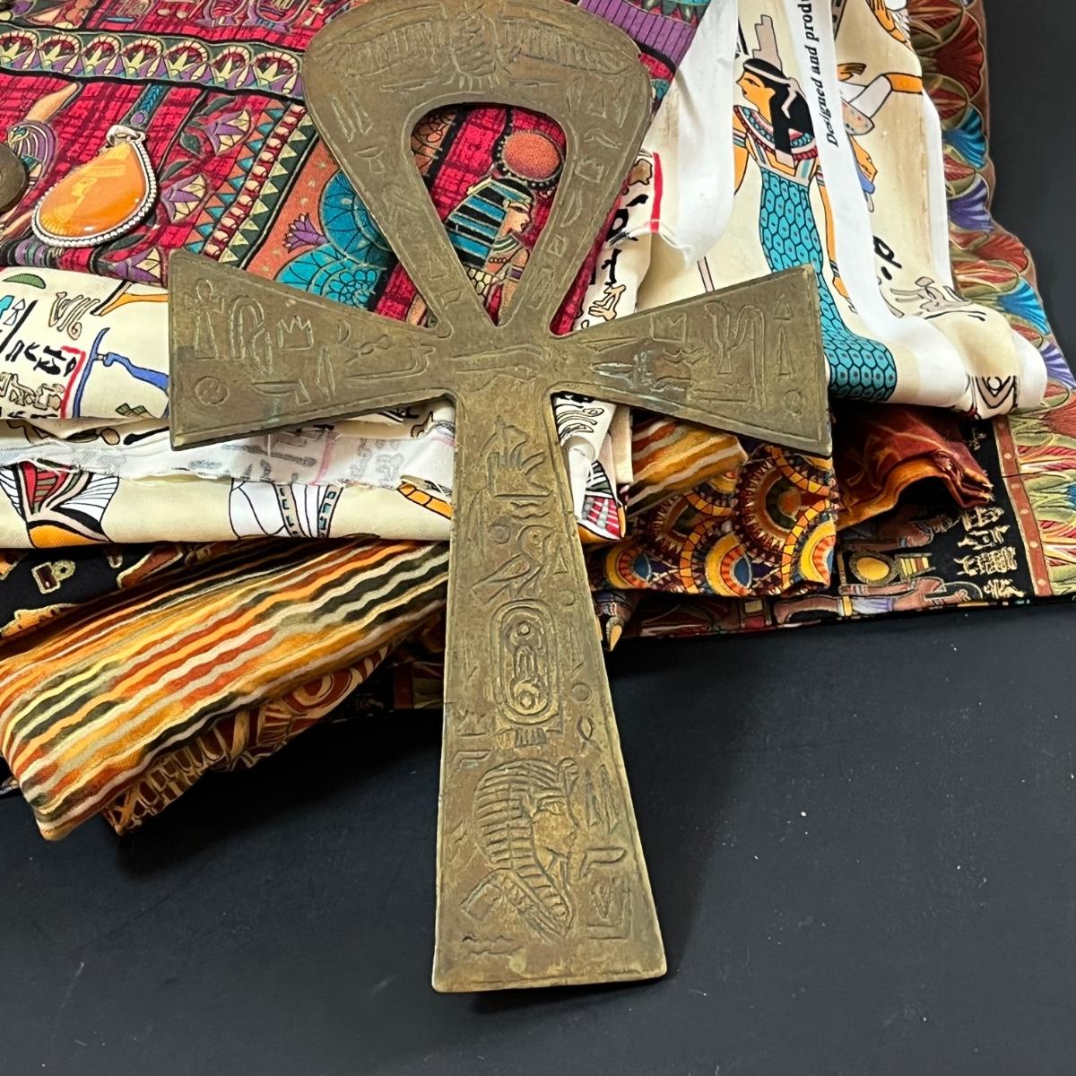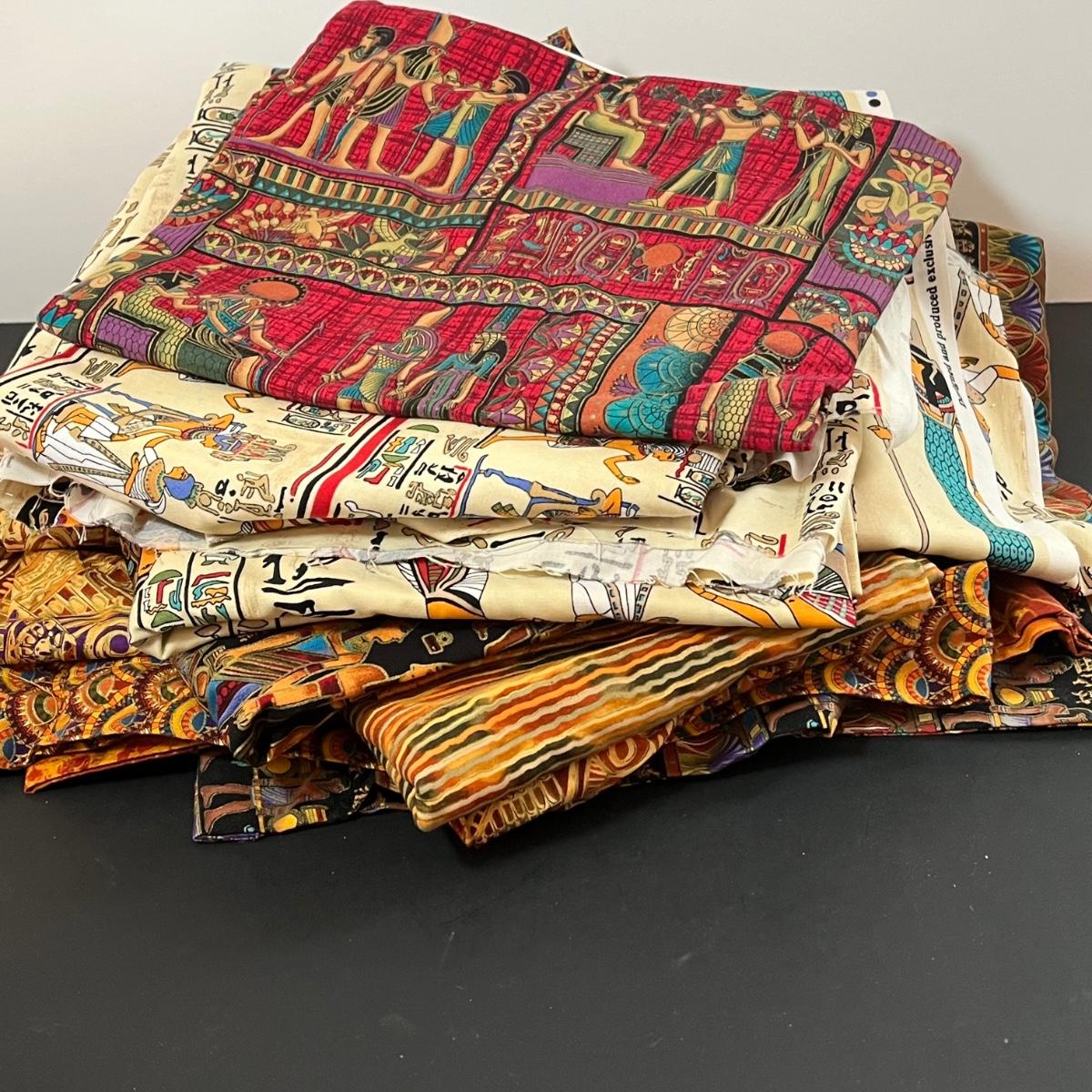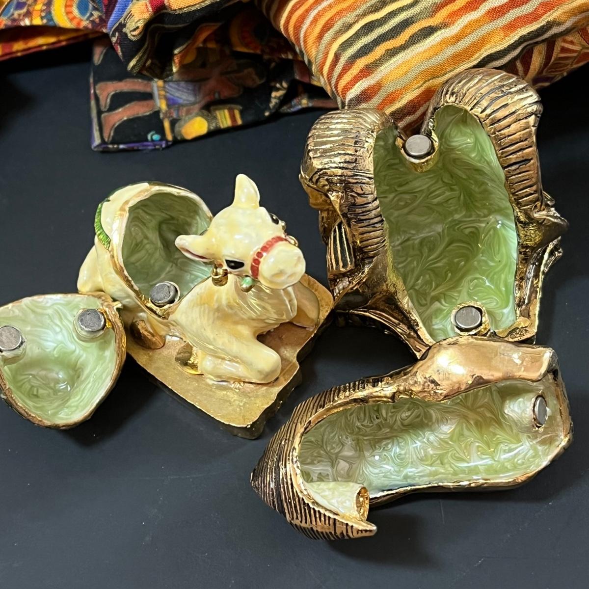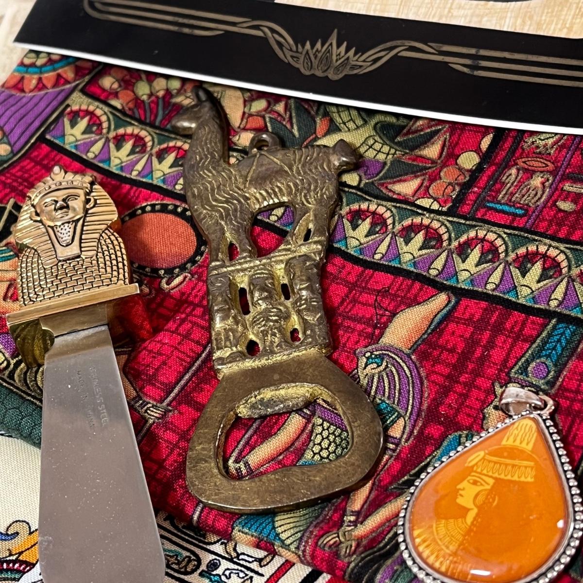 LOT 107G: Egyptian Themed Home Decor - Fabrics, Figurines, Magnetic Closure Trinket Dishes and More