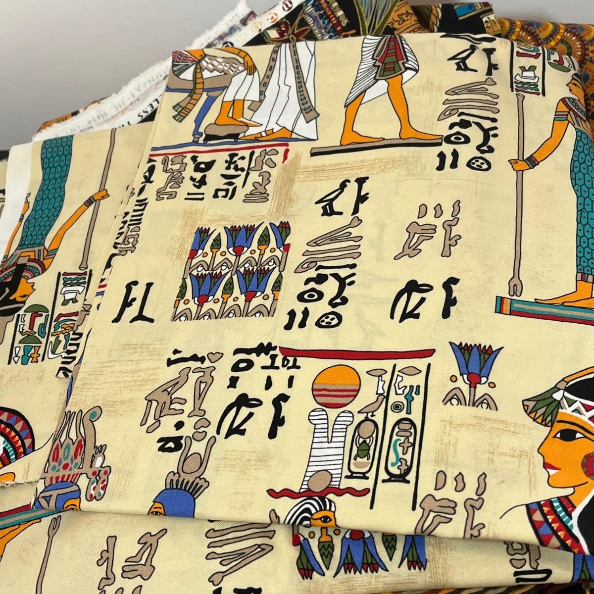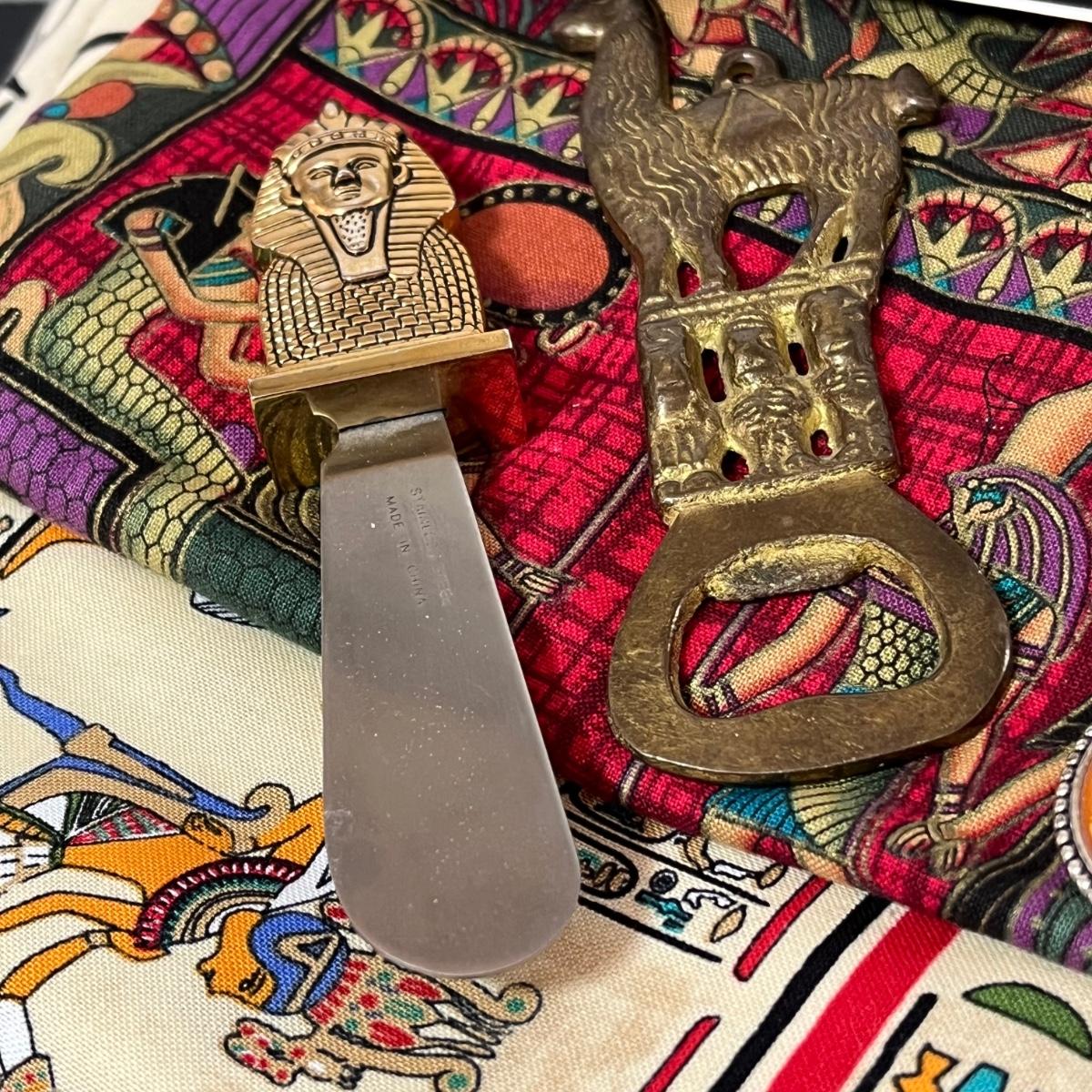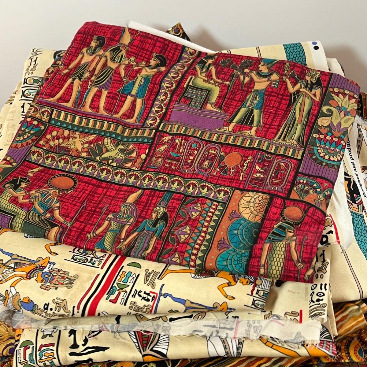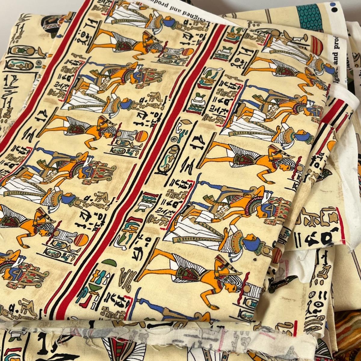 LOT 107G: Egyptian Themed Home Decor - Fabrics, Figurines, Magnetic Closure Trinket Dishes and More