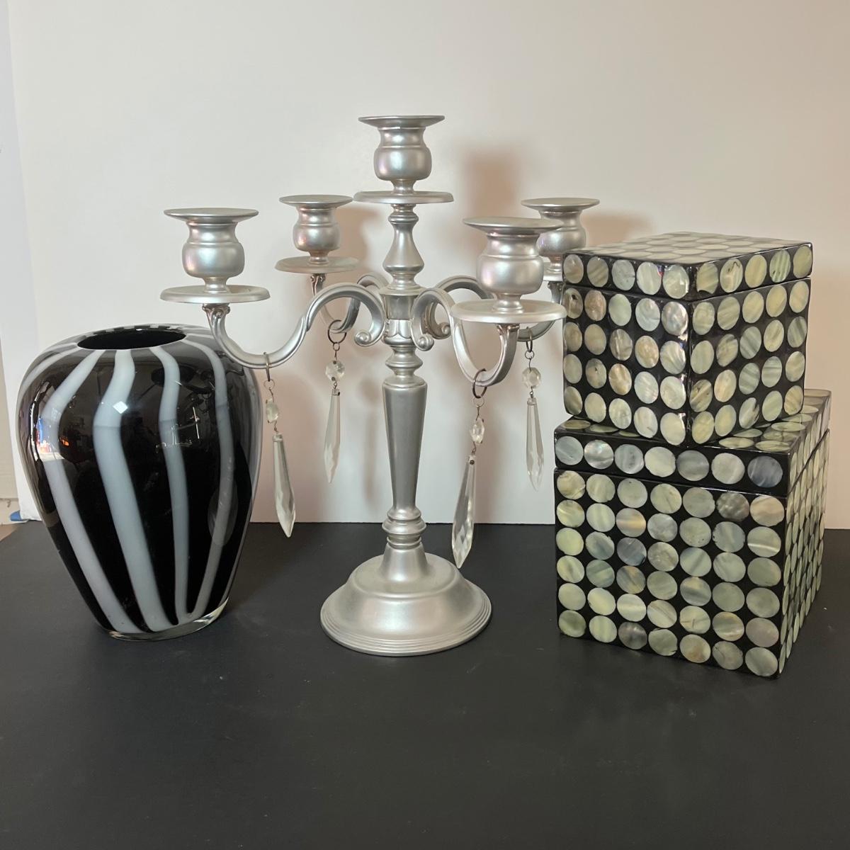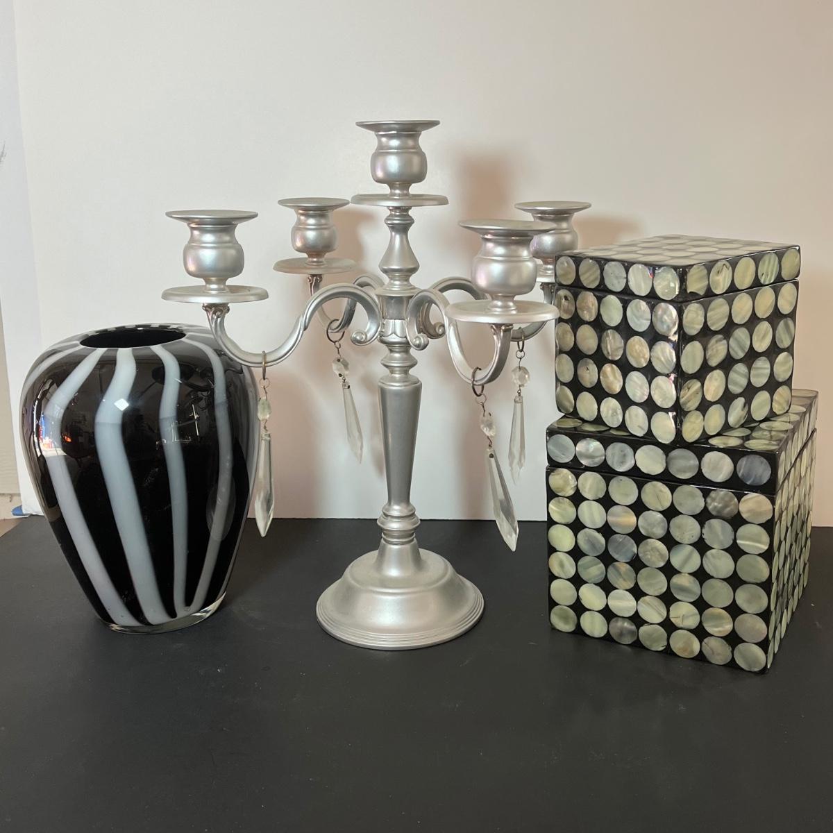 LOT 116G: Decorative Boxes, Candelabra & Vase