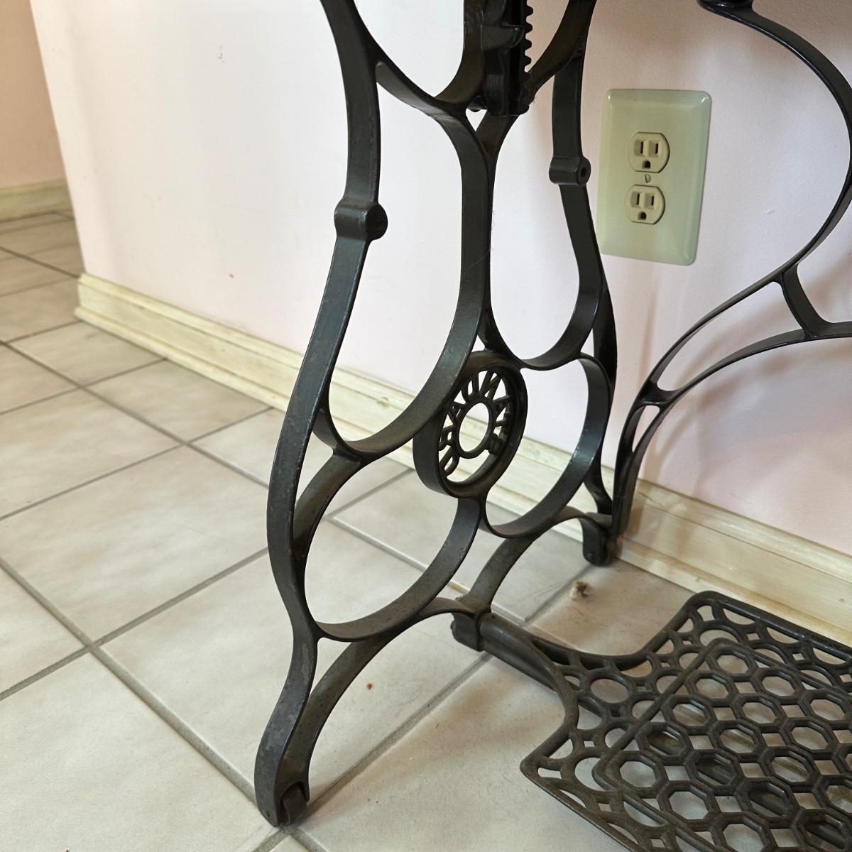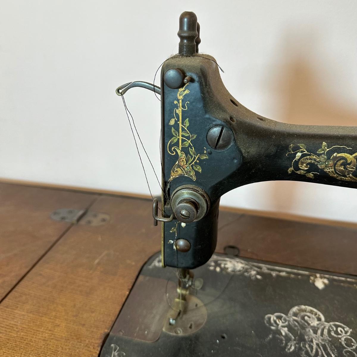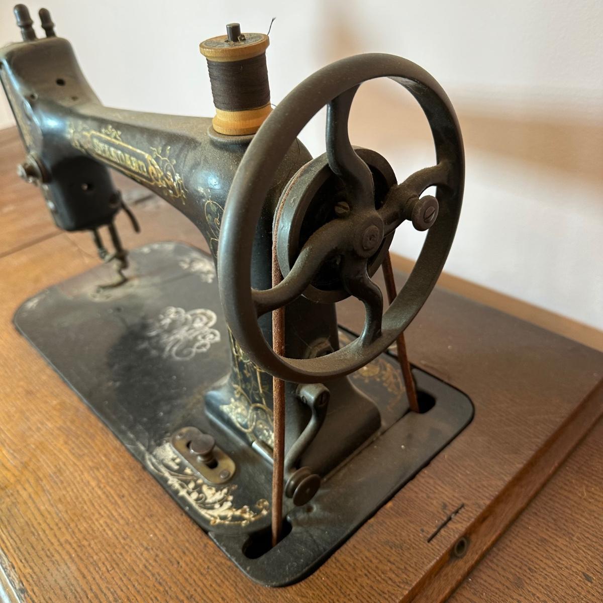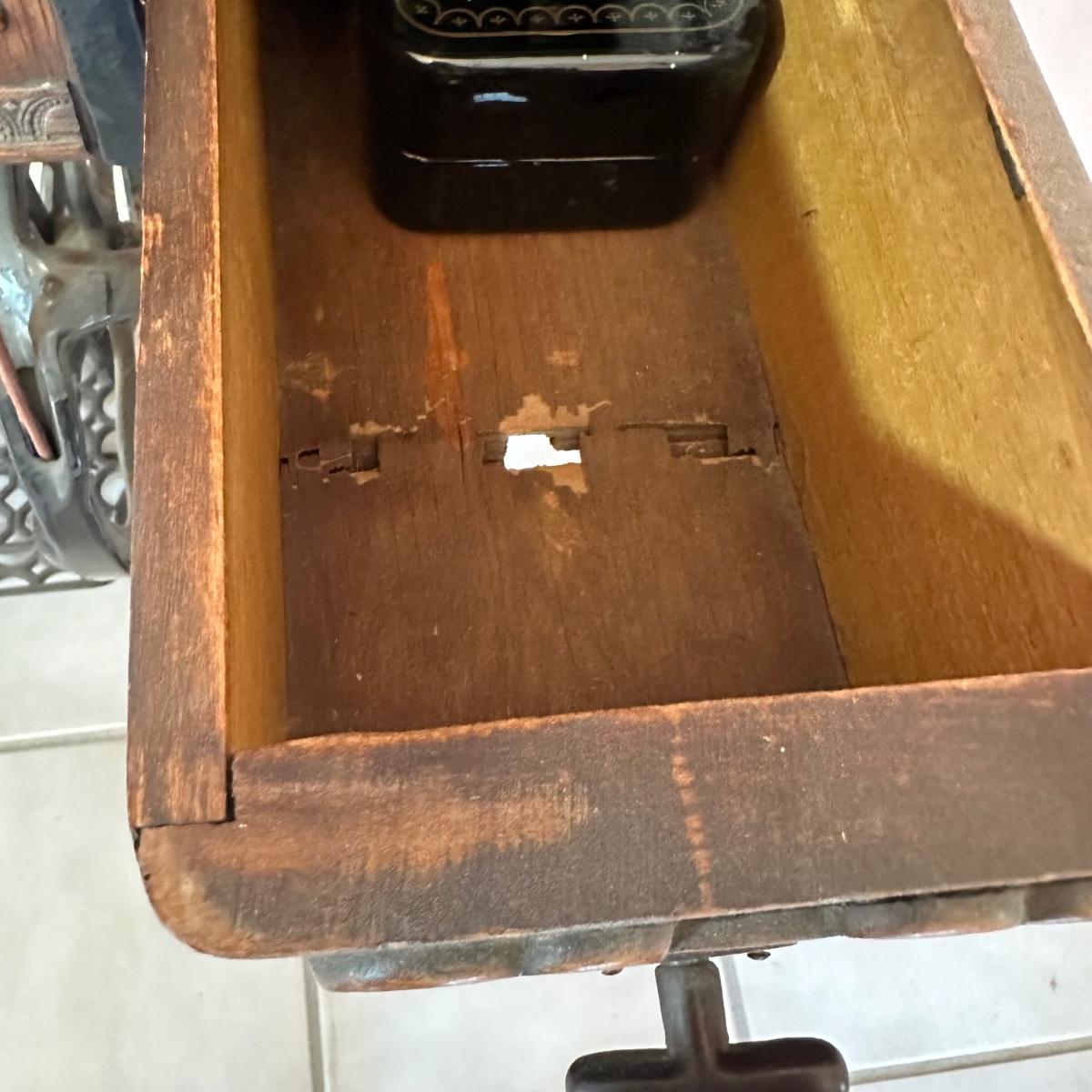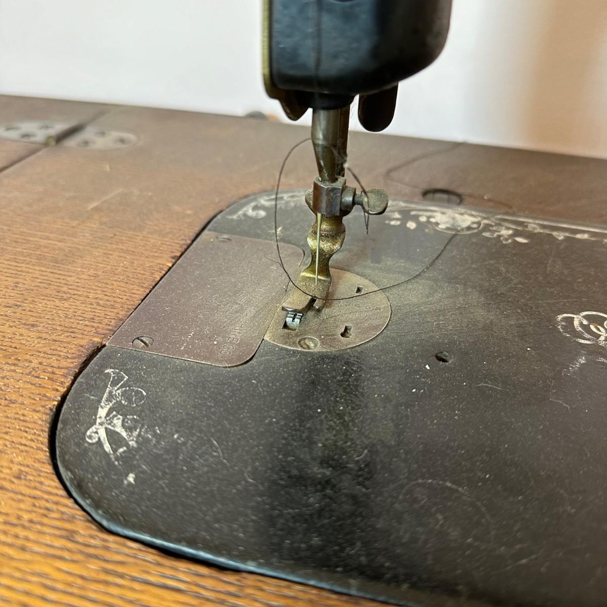 LOT 124S: Antique Standard Treadle Sewing Machine w/ key & Accessories