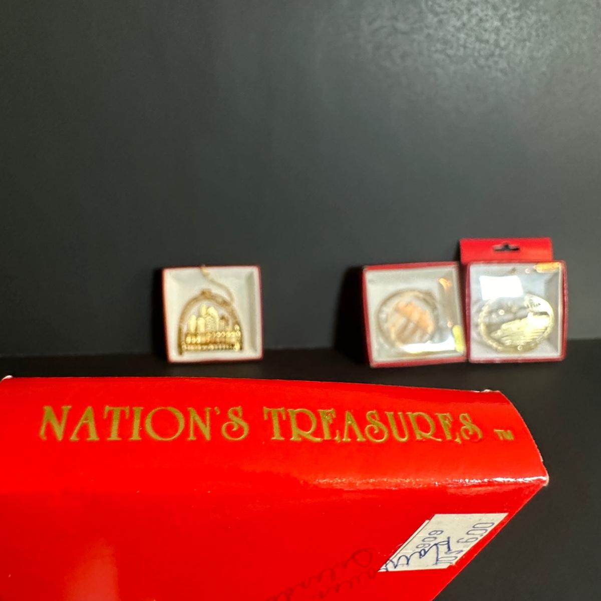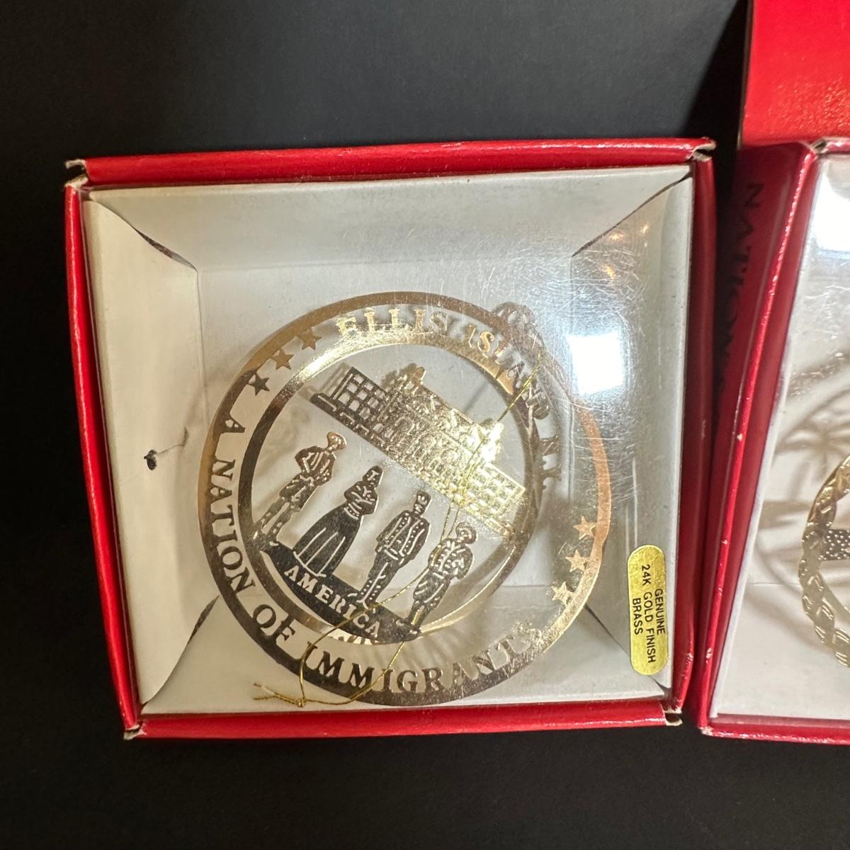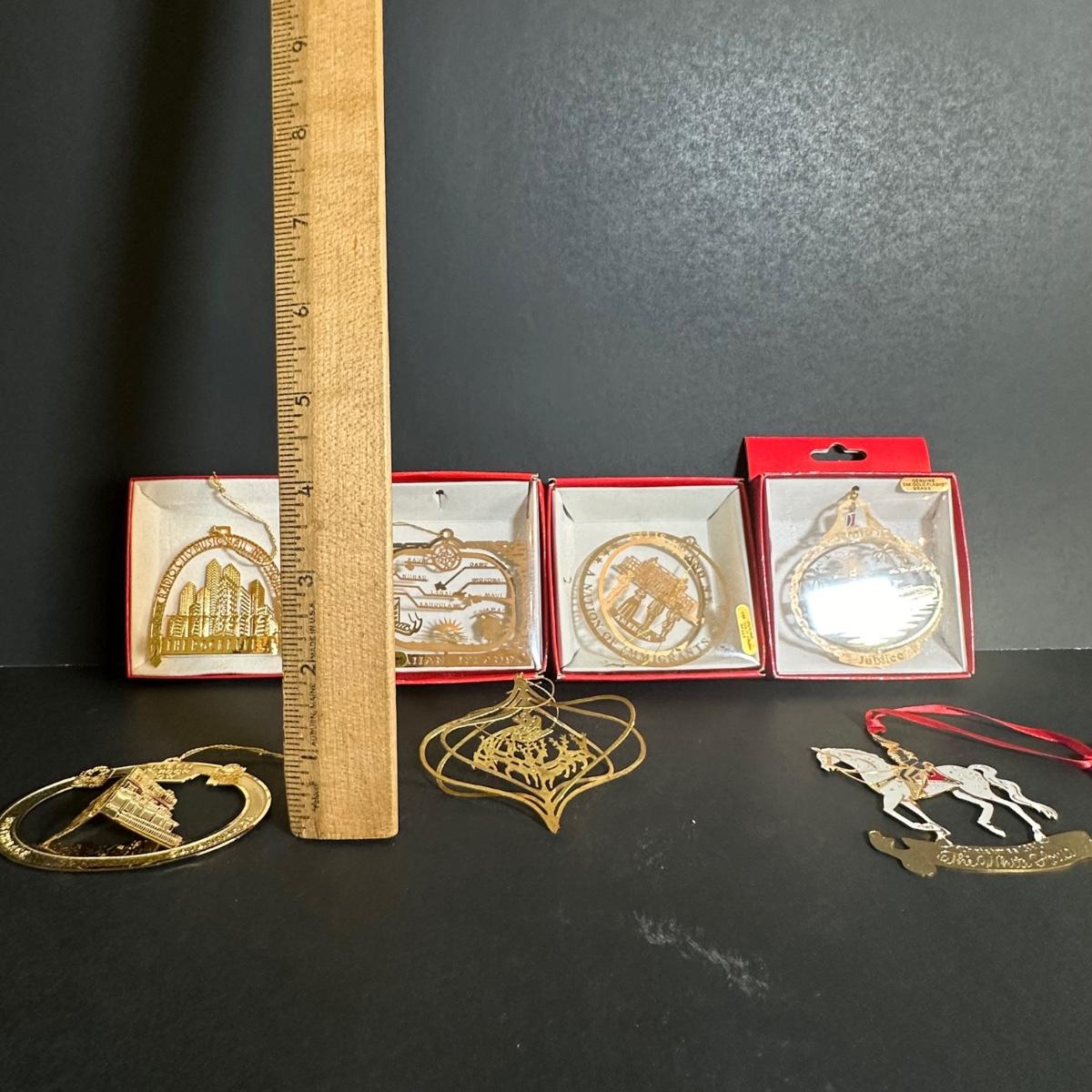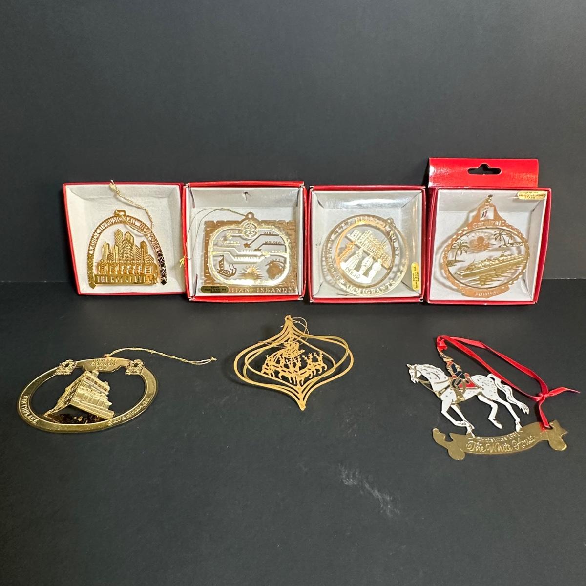LOT 128S: Vintage Gold Plated Brass Christmas Ornaments - Nations Treasures, The White House Historic Association & More