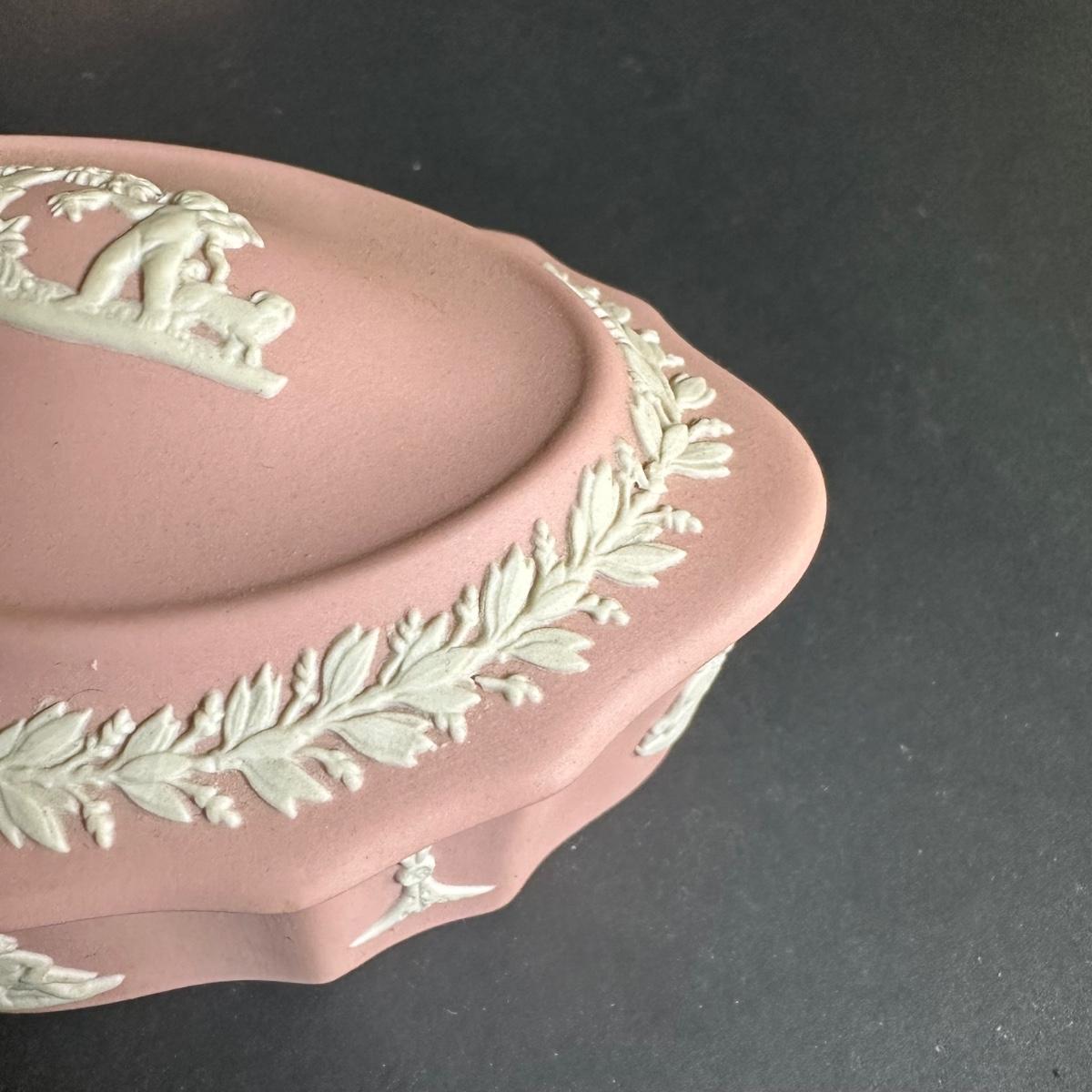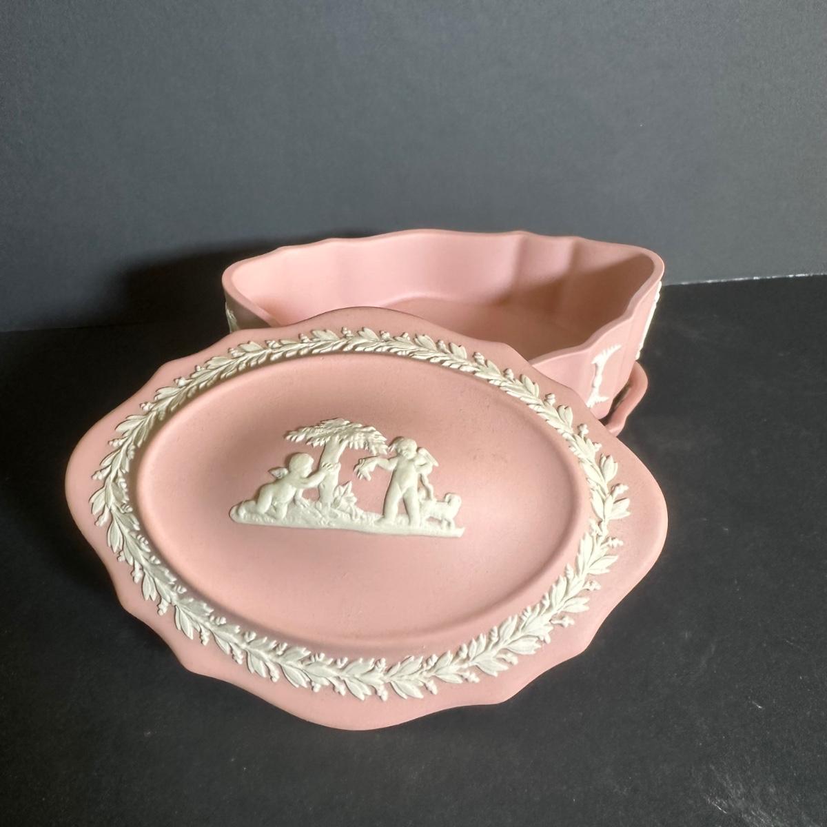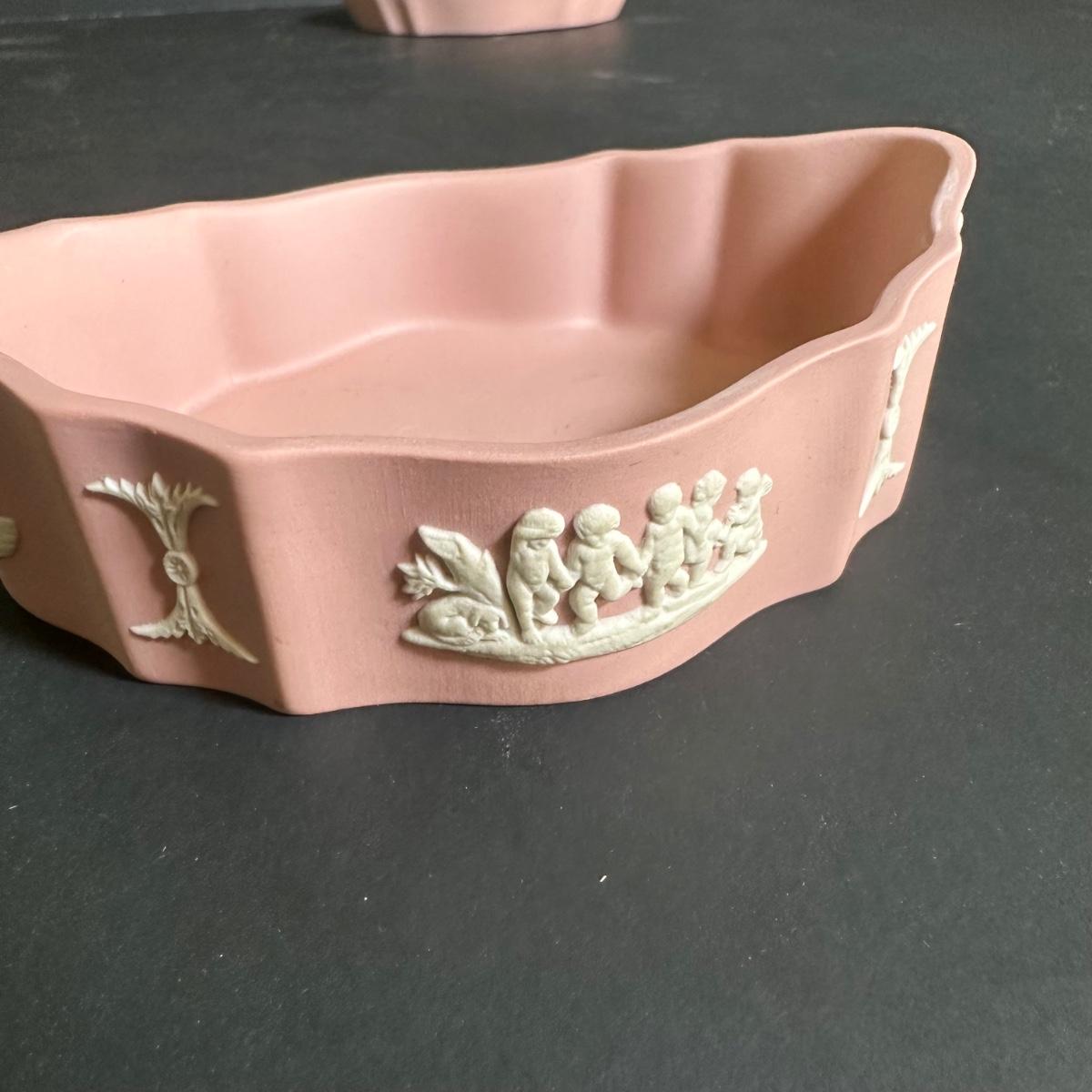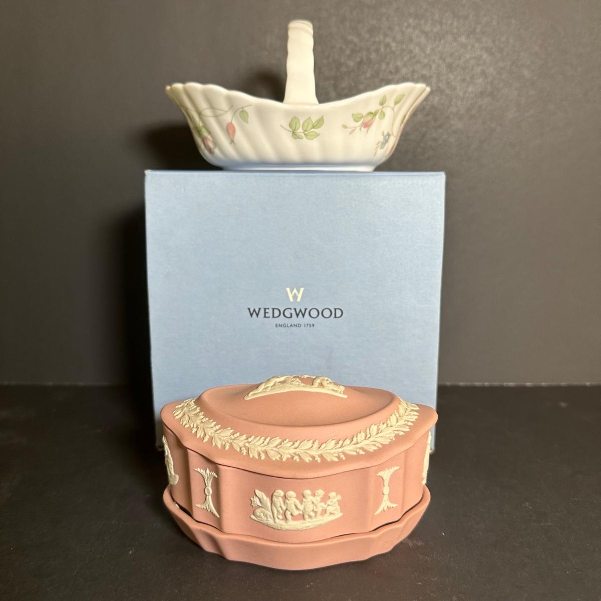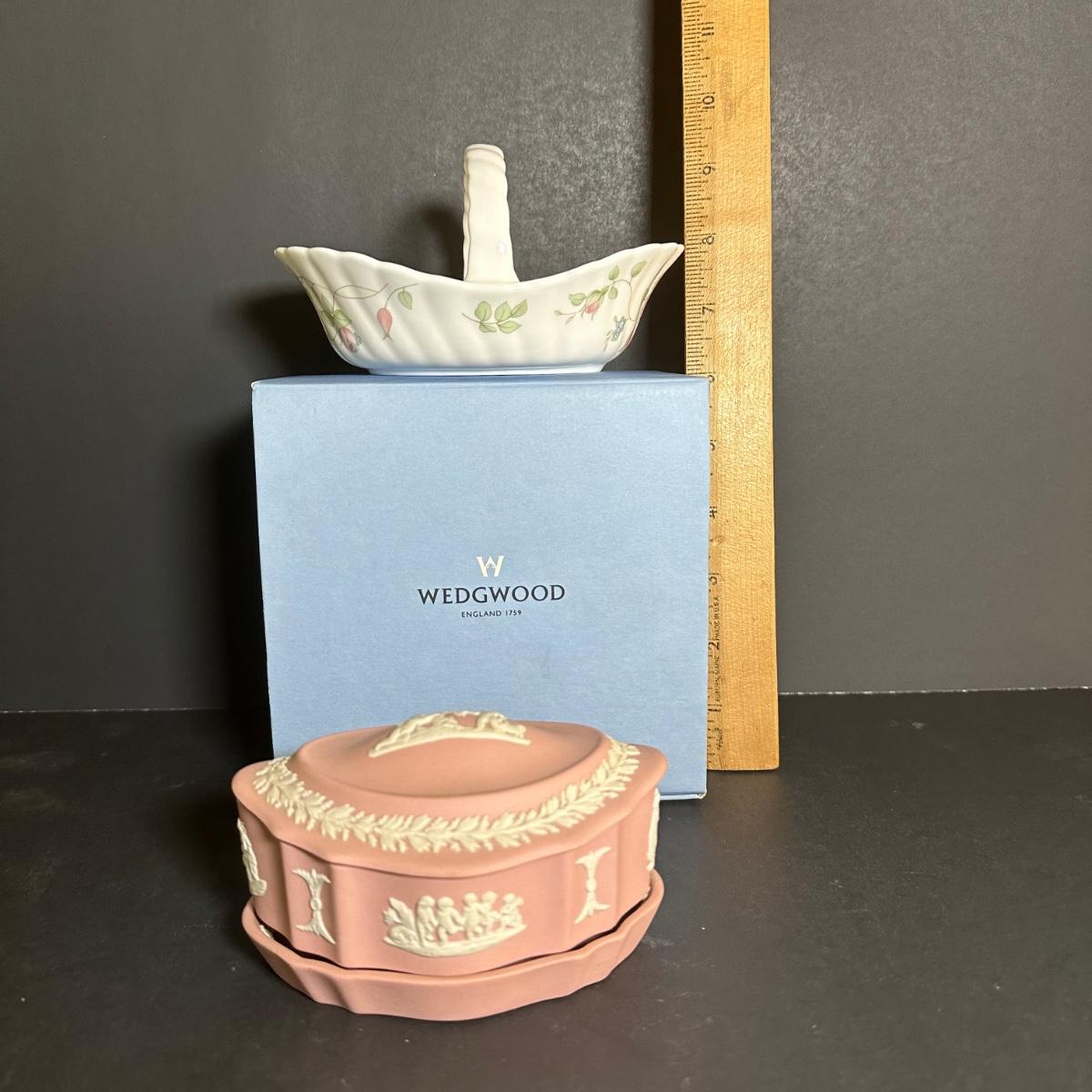 LOT 131S: Wedgwood Rosehip Bone China Canterbury Basket w/ Pink Jasperware Oval Trinket Box